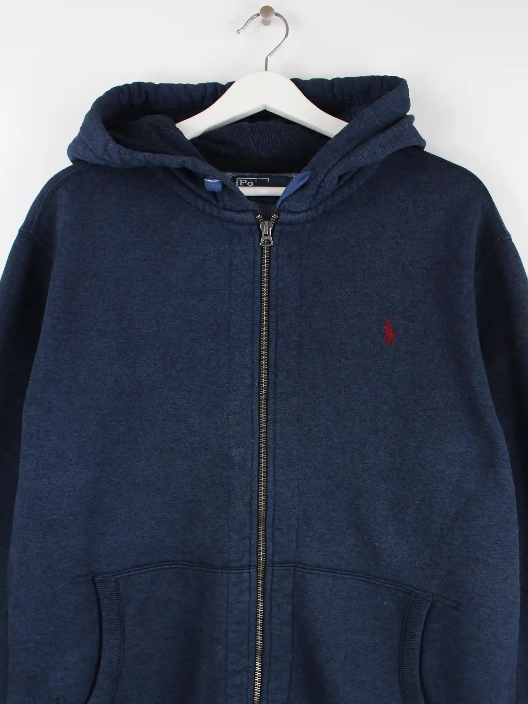 Blauer Hoodie mit Zip vom Brand Ralph Lauren in Größe L. Er ist aus einer Baumwollmischung . Den Zustand würden wir als 'In Ordnung' bezeichnen (vergl. Bilder).