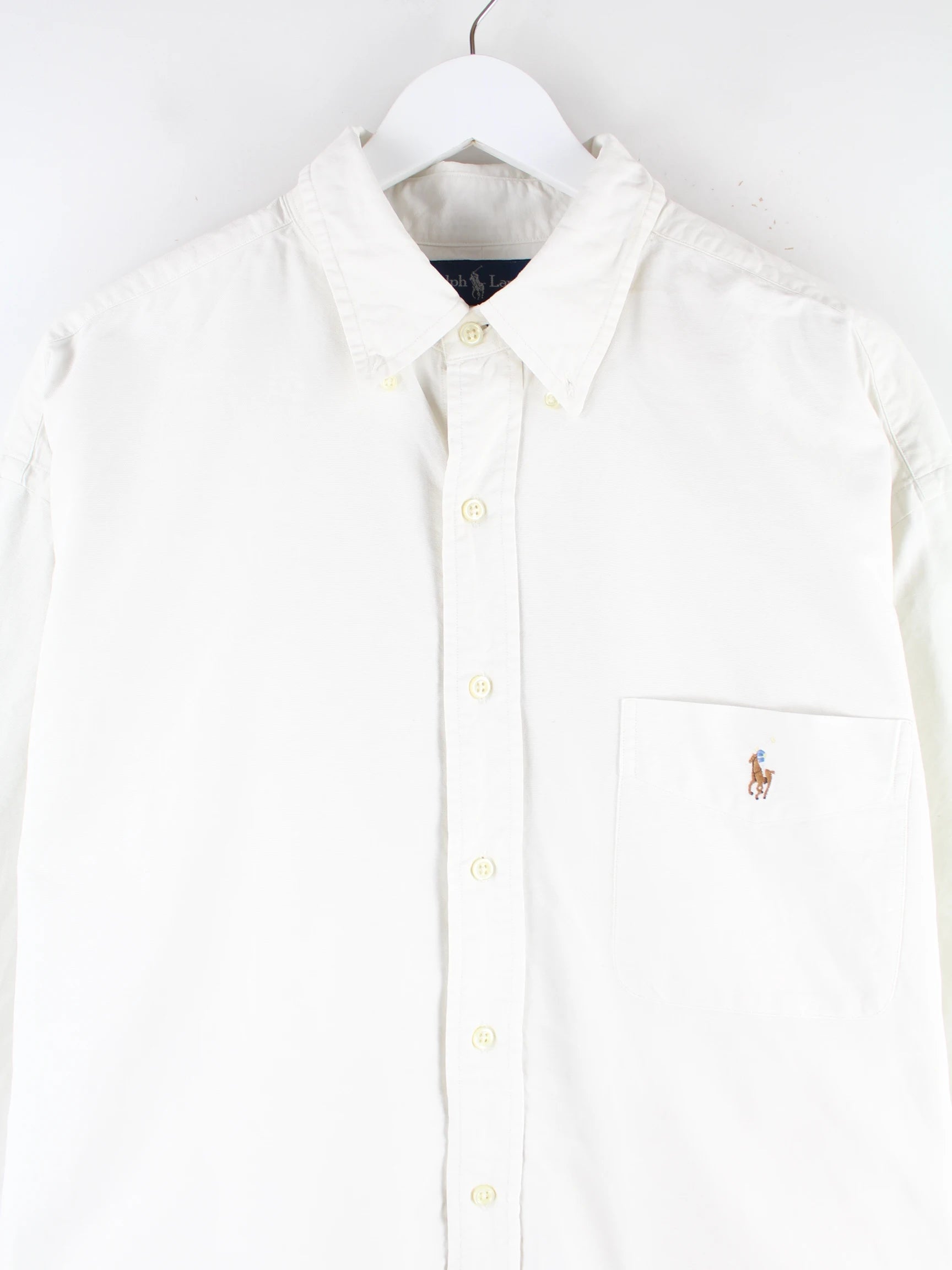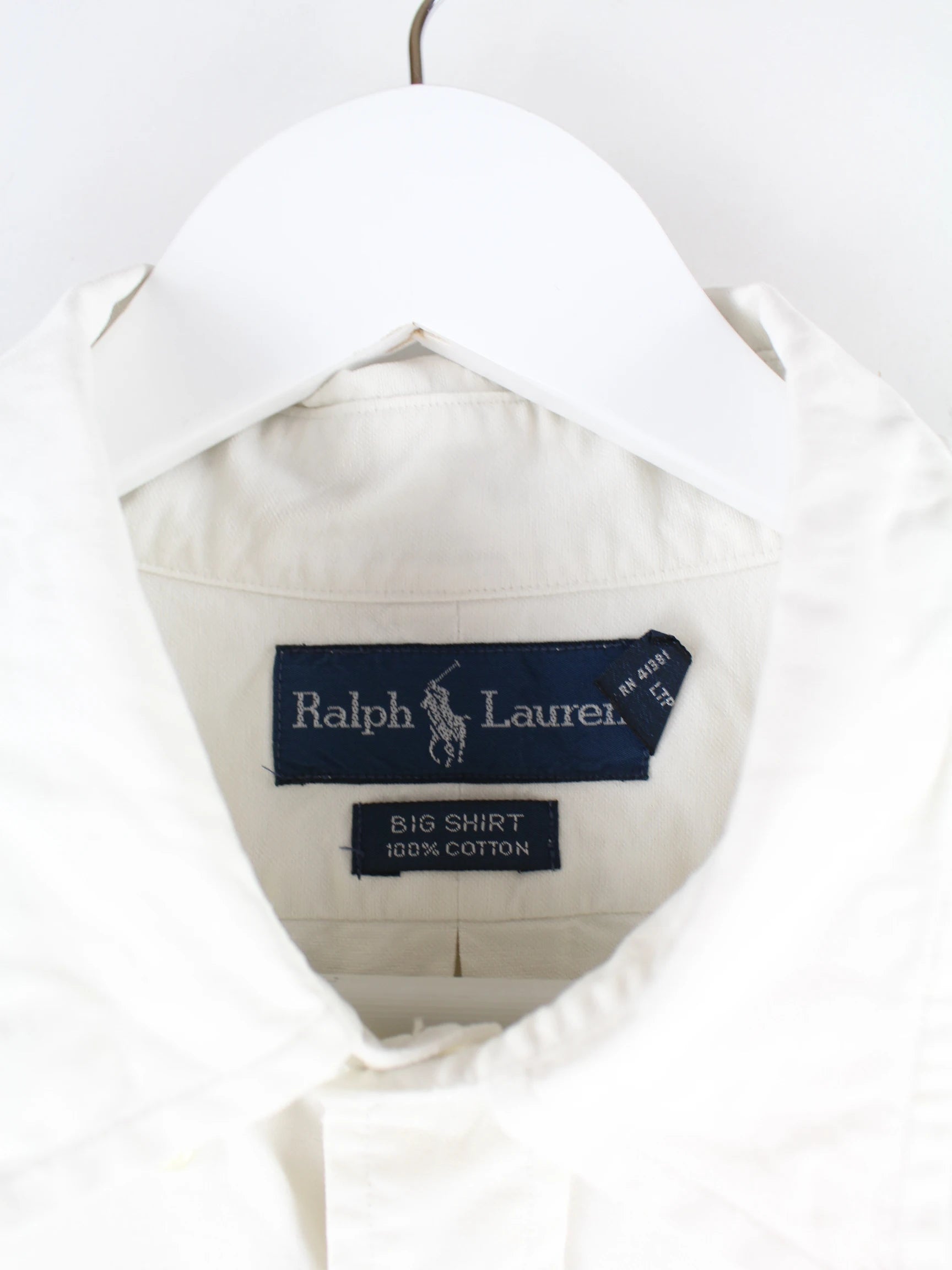 Hemd der Brand Ralph Lauren in Größe XL aus den 90'ern. Es ist aus Baumwolle produziert und in Weiß zu bekommen.