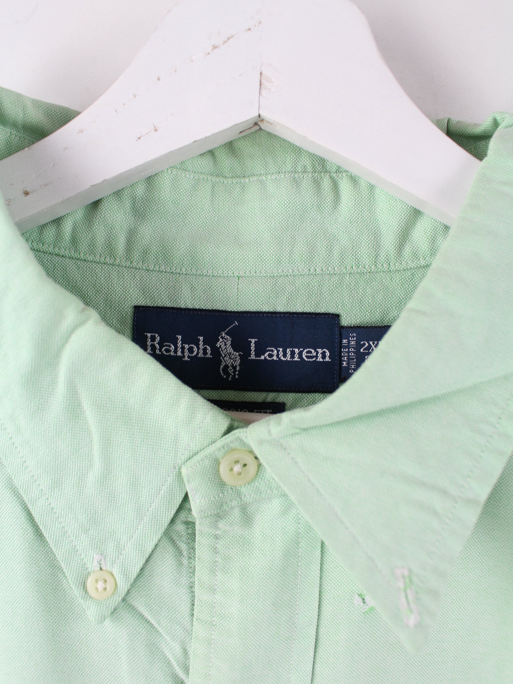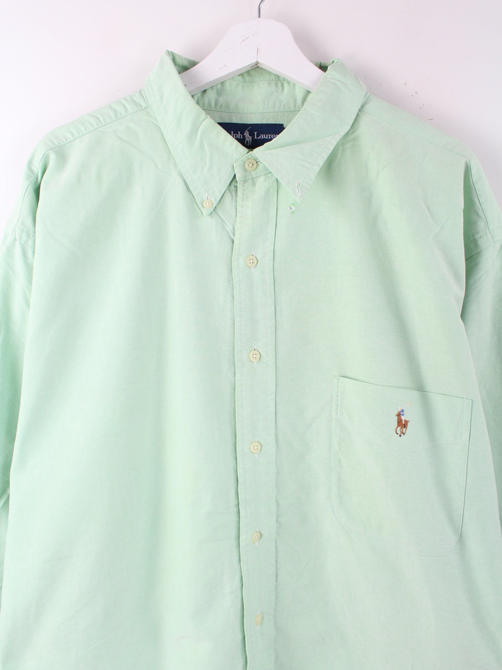 Grünes Freizeit Hemd vom Brand Ralph Lauren aus den 90'ern in Größe XXL. Es ist aus einer Baumwollmischung gemacht und in gutem Zustand bei uns vorrätig.