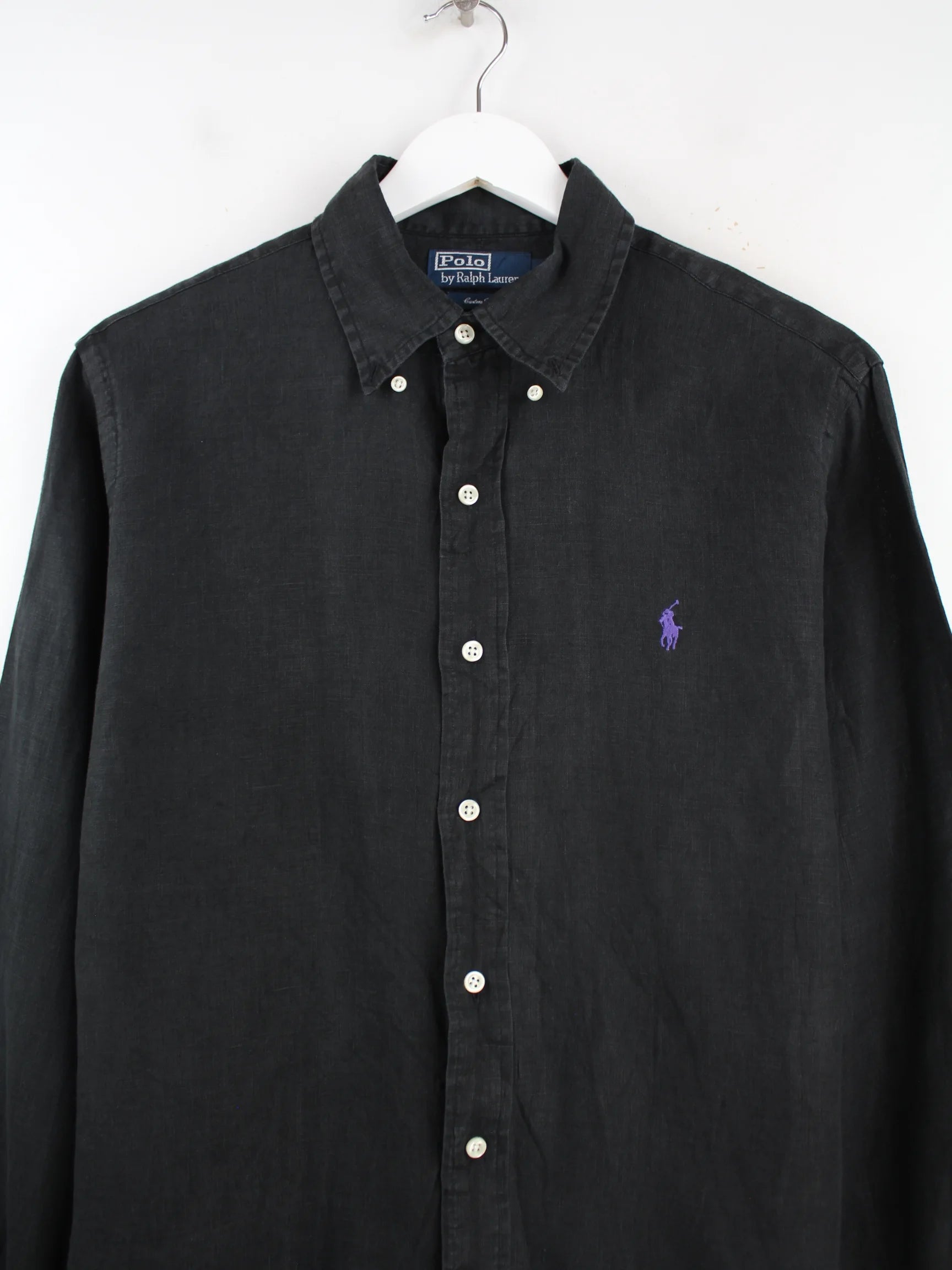 Ralph Lauren 90s Vintage Custom Fit Leinen Hemd Schwarz M