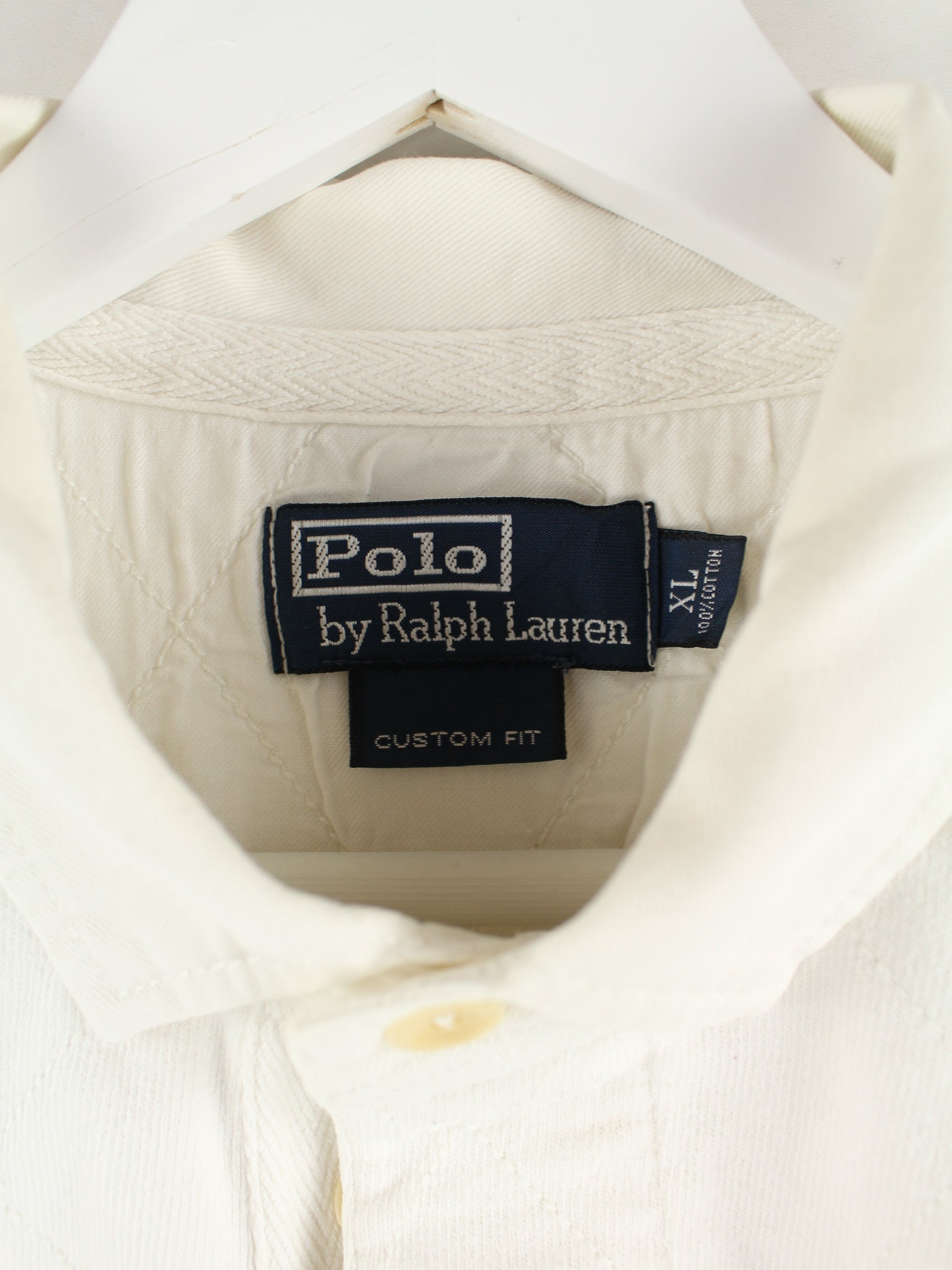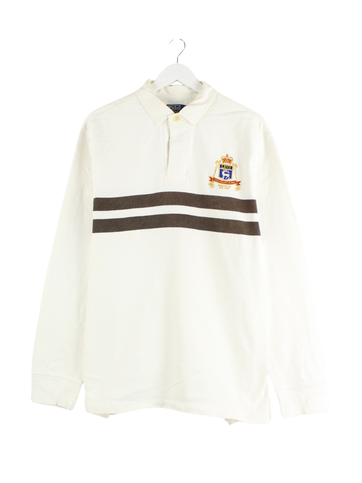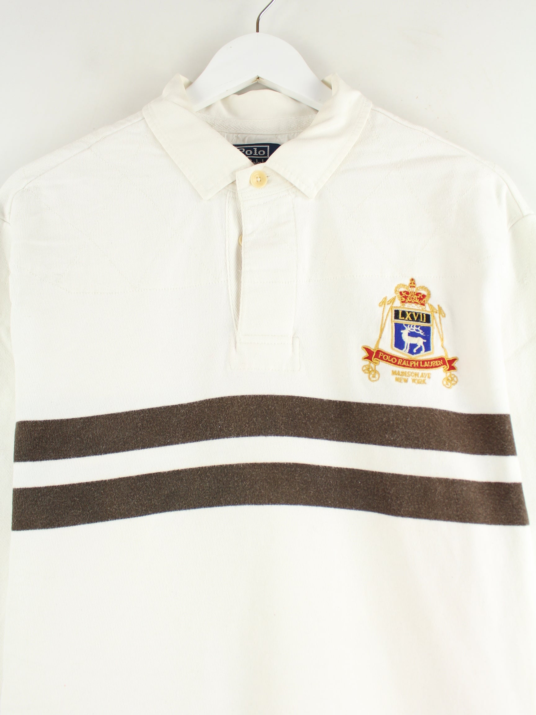 Ralph Lauren 90s Vintage Embroidered Rugby Langaram Polo White XL