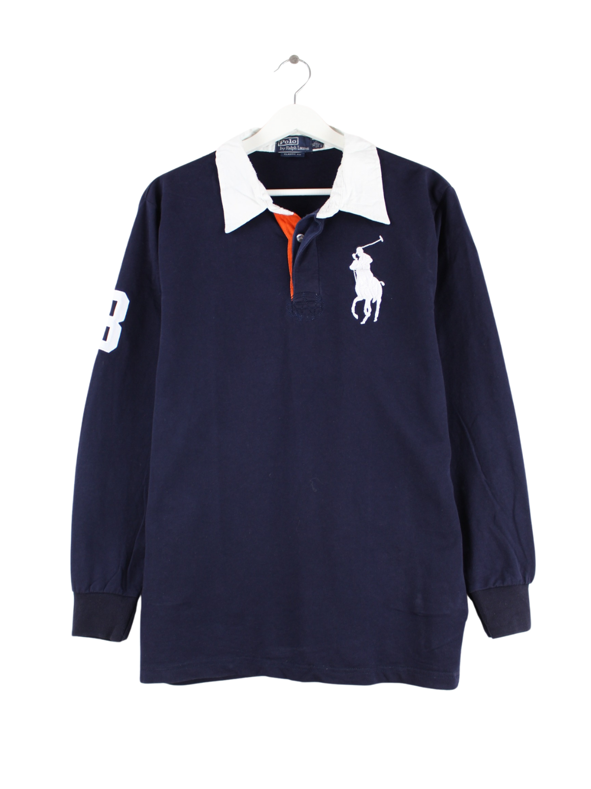 Ralph Lauren 90s Vintage Embroidered Long Sleeve Polo Blue M