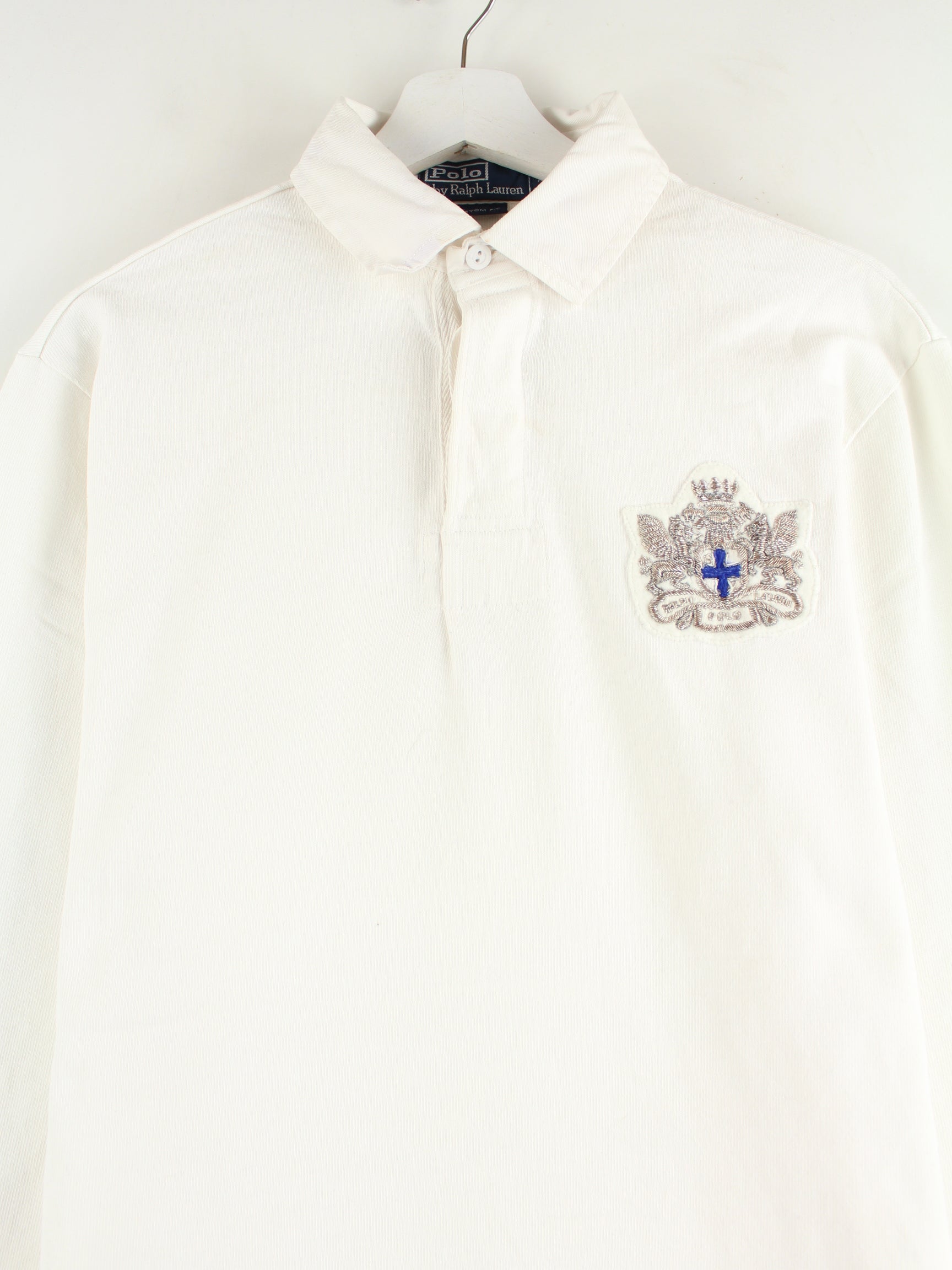 Ralph Lauren 90s Vintage Embroidered Rugby Long Sleeve Polo White M
