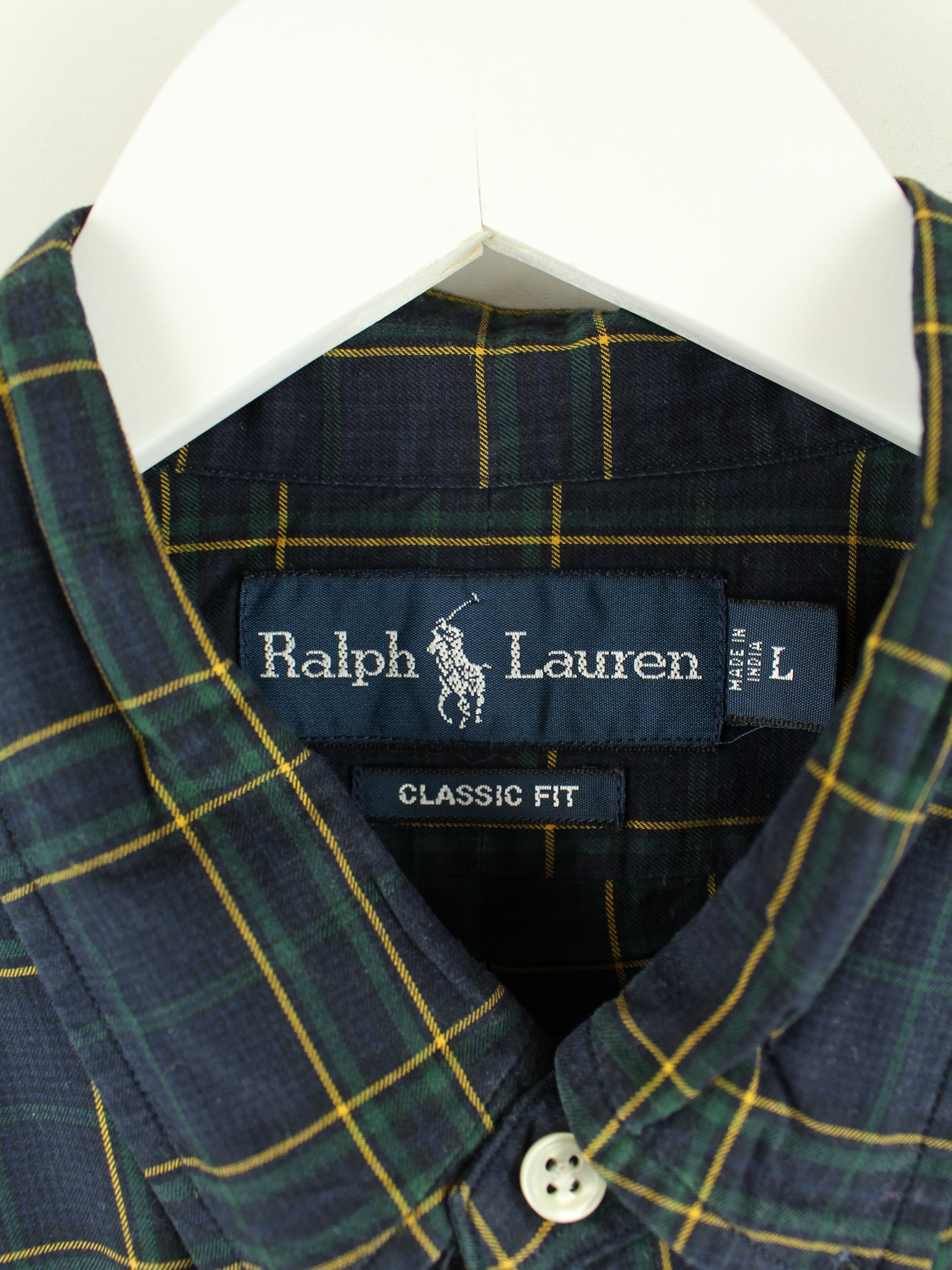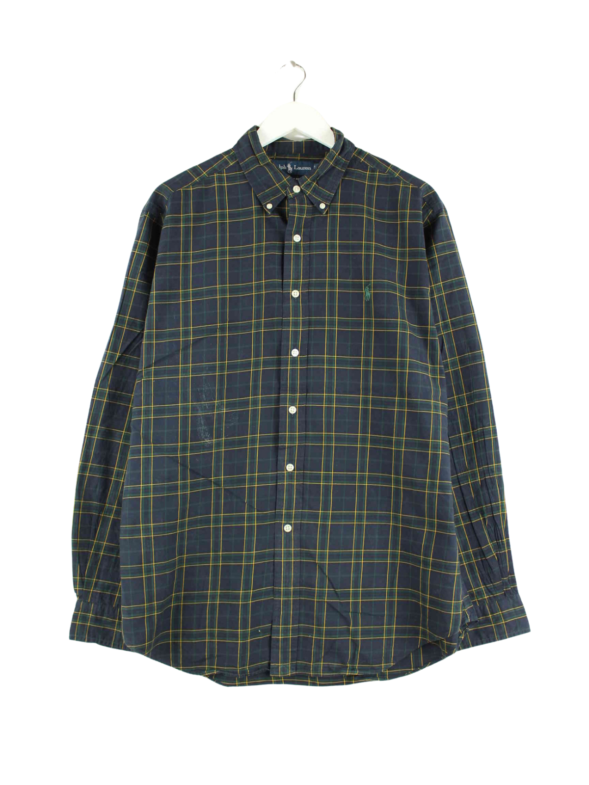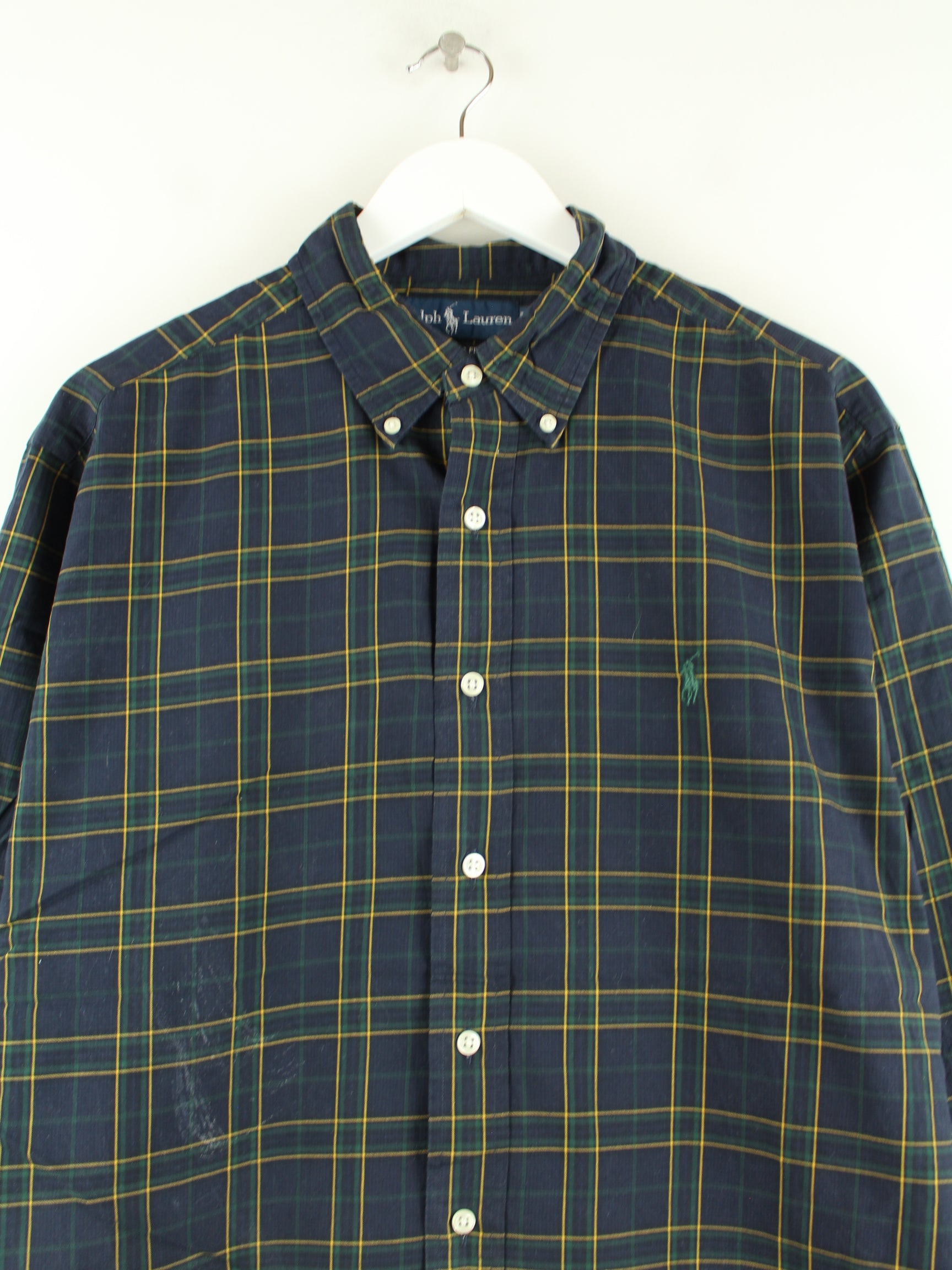 Casual shirt from Ralph Lauren in size L from the 90's. It is made of cotton and is available from us in blue.