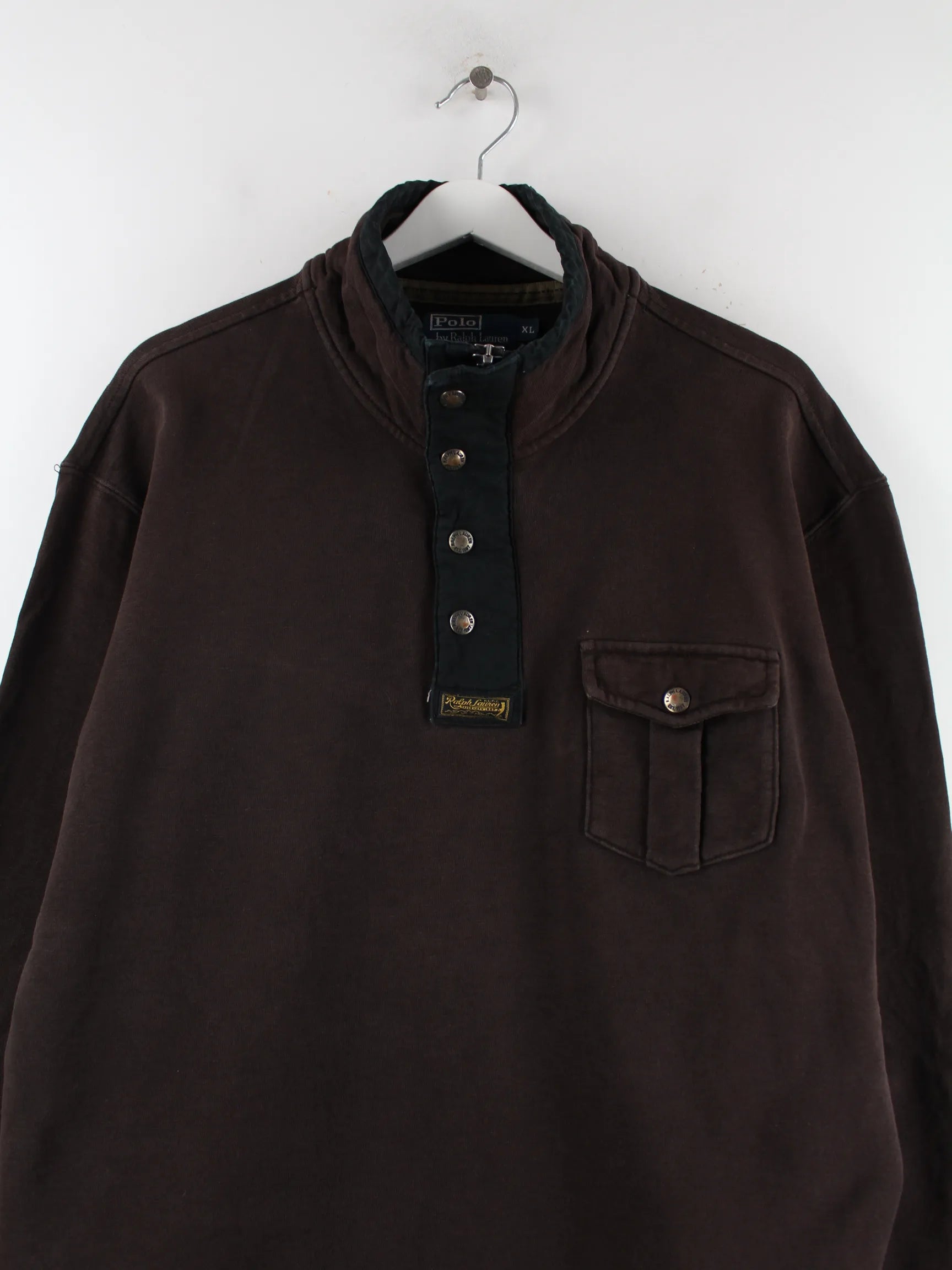 Sweater der Brand Ralph Lauren mit half Zip in Größe XL aus den 90'ern. Er ist aus einer Baumwollmischung angefertigt und in Braun lieferbar.