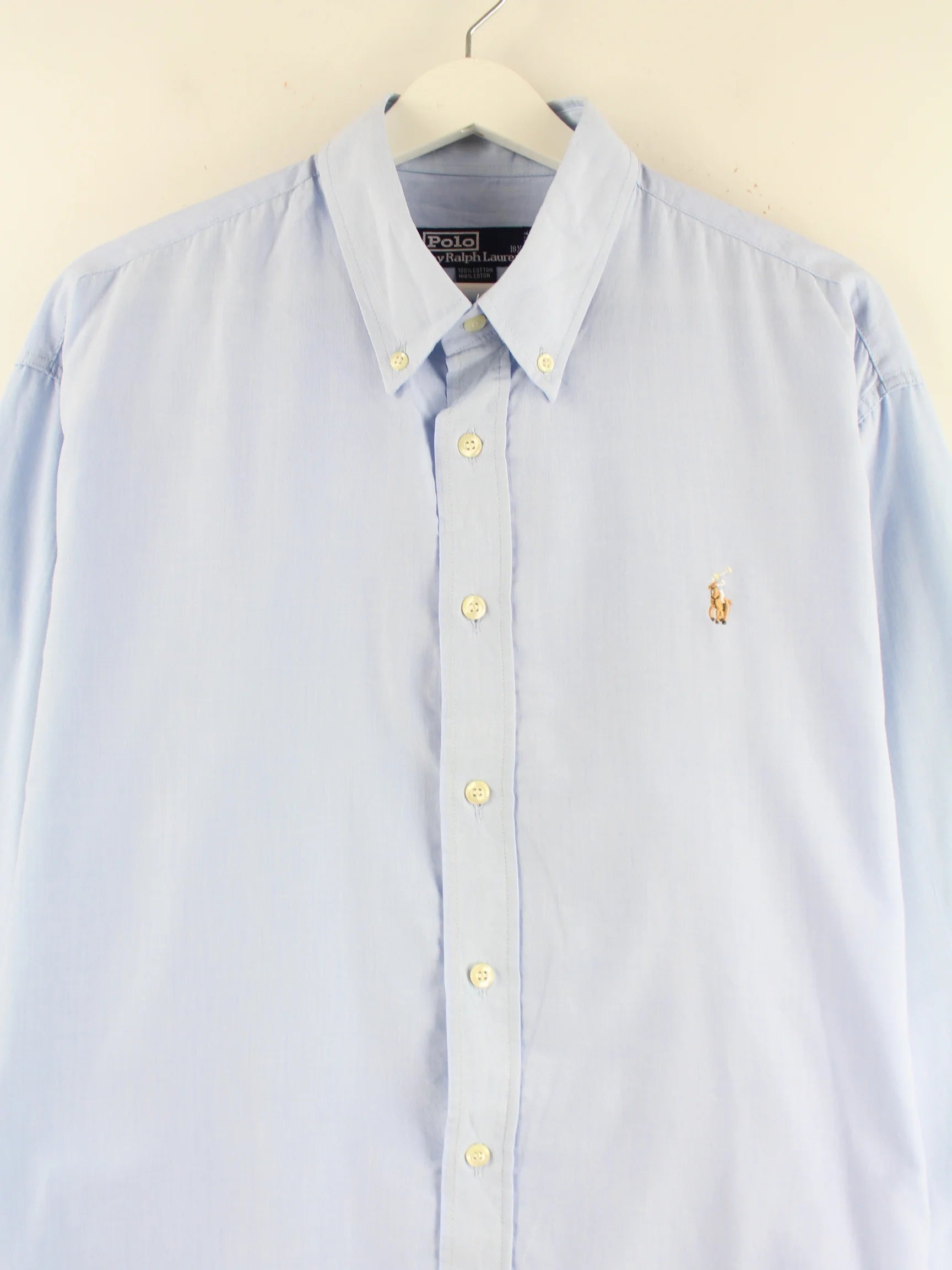 Hemd aus dem Hause Ralph Lauren in Größe XXL aus den 90'ern. Es ist aus Baumwolle und in Blau im Bestand.