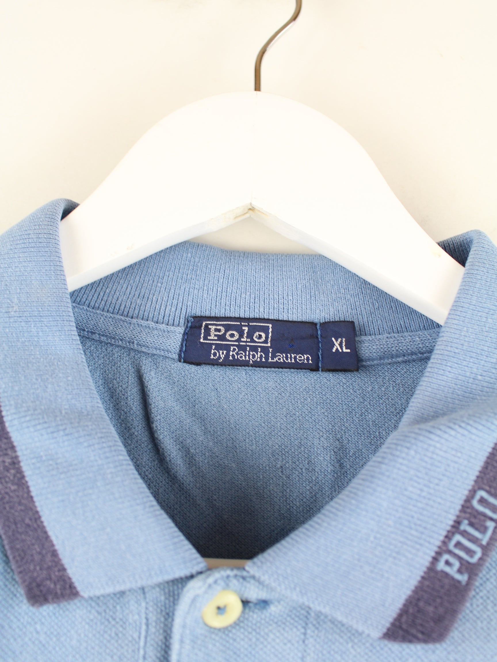 Blue polo shirt from the Ralph Lauren label from the 90's in size XL. It is made of cotton and in very good condition.