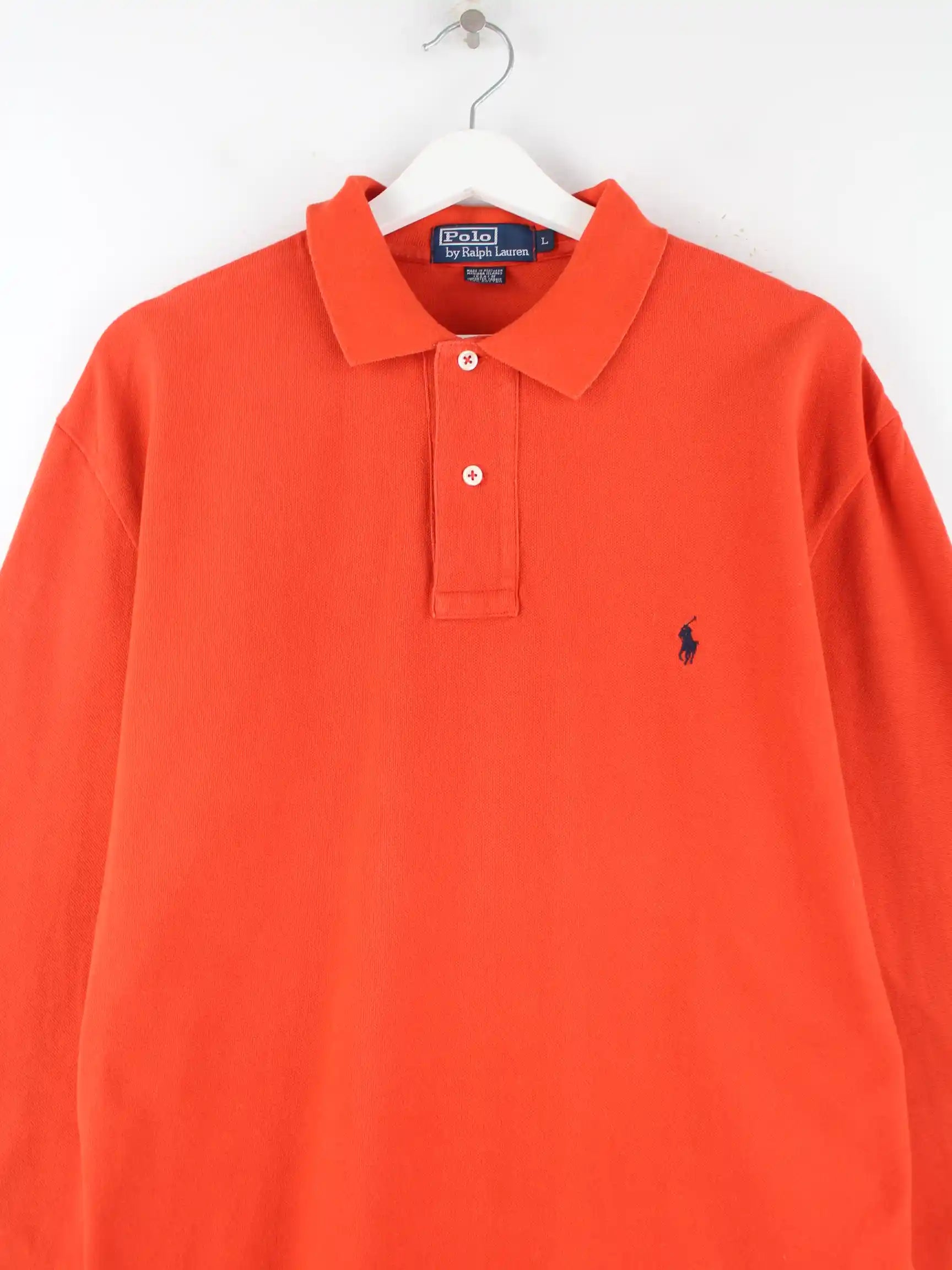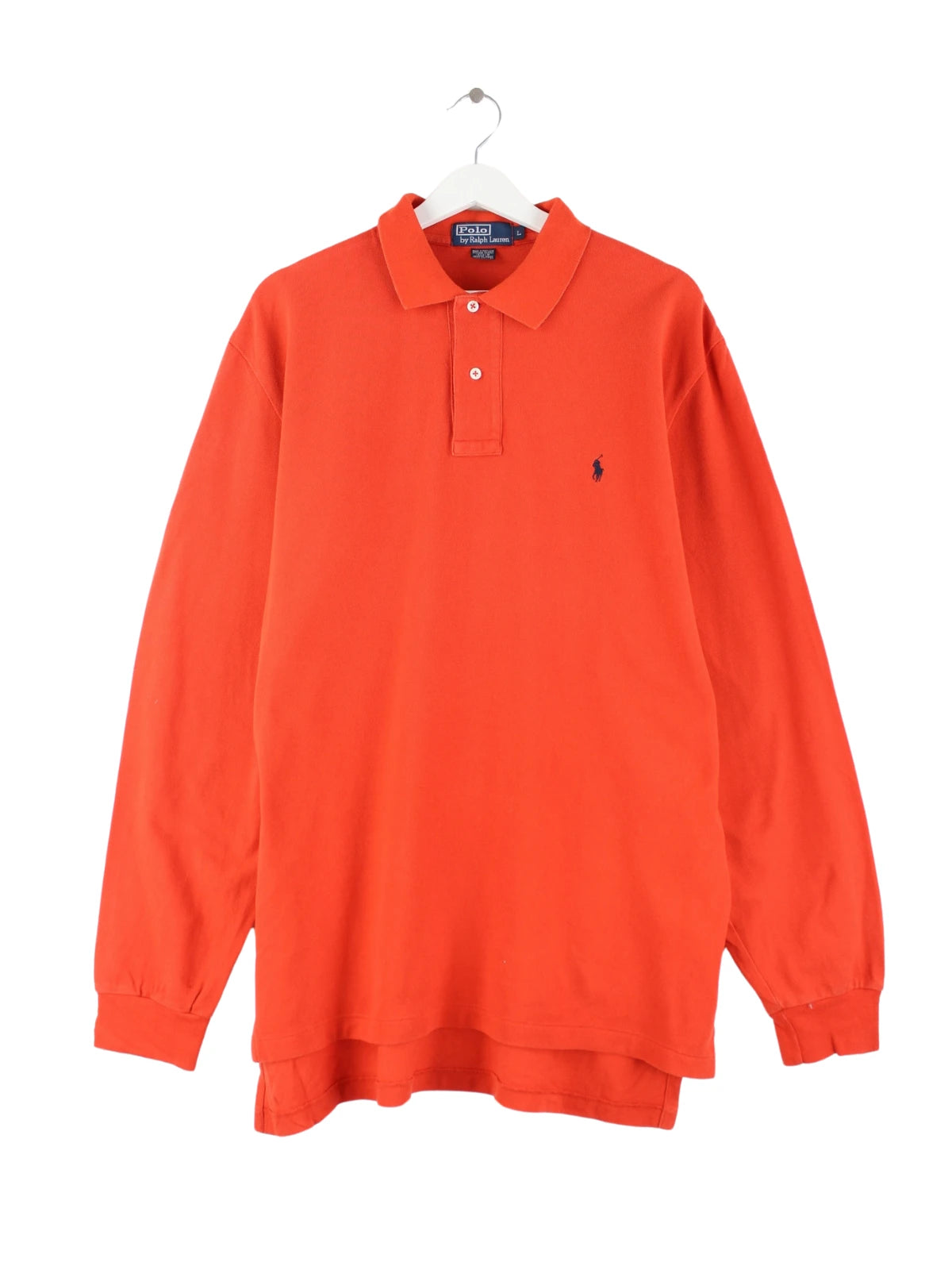 Ralph Lauren 90s Vintage Langarm Polo Orange XXL