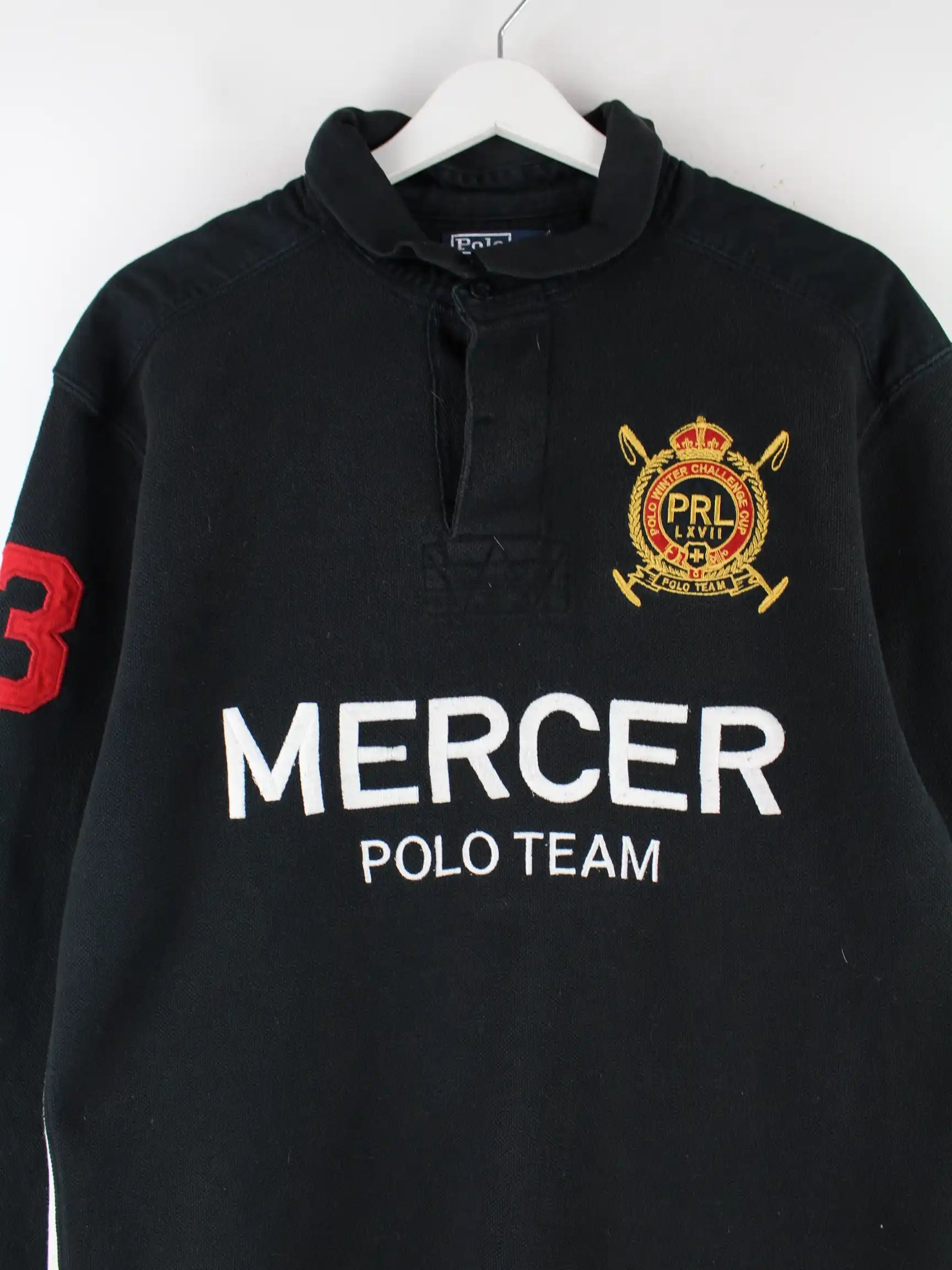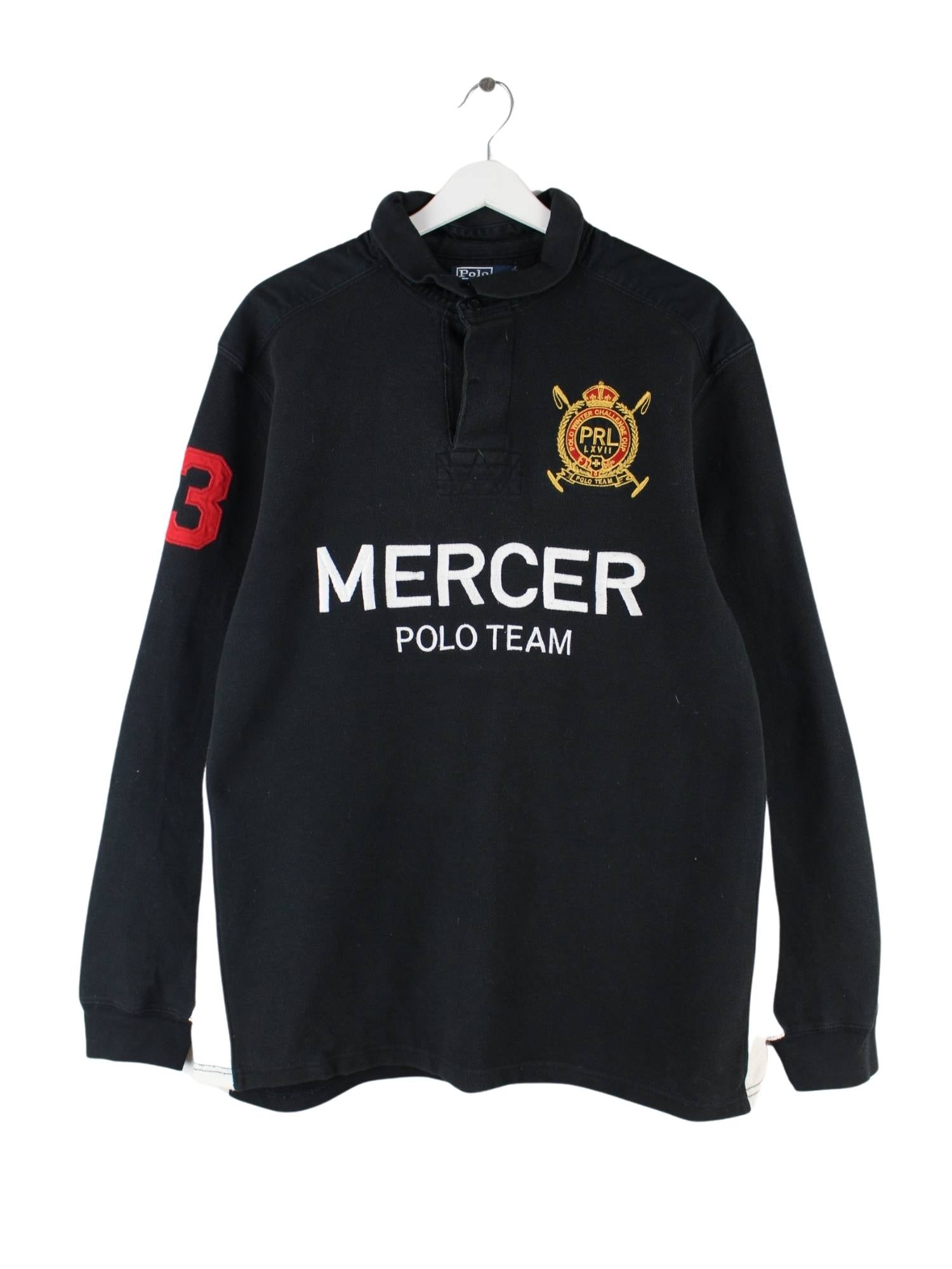 Ralph Lauren 90s Vintage Mercer Rugby Langarm Polo Schwarz XL