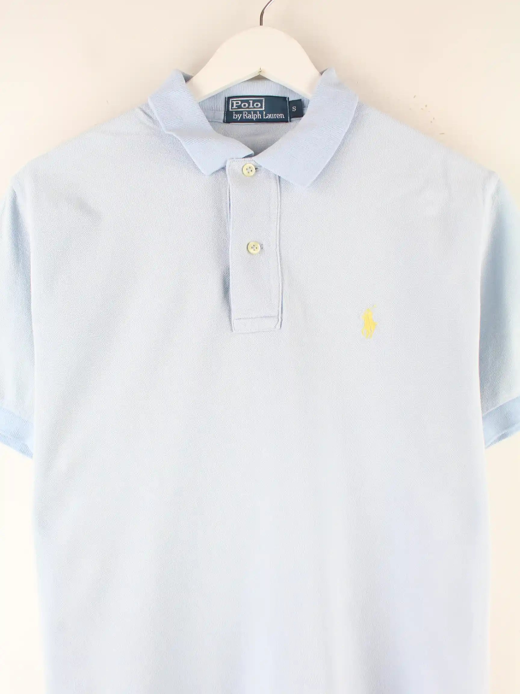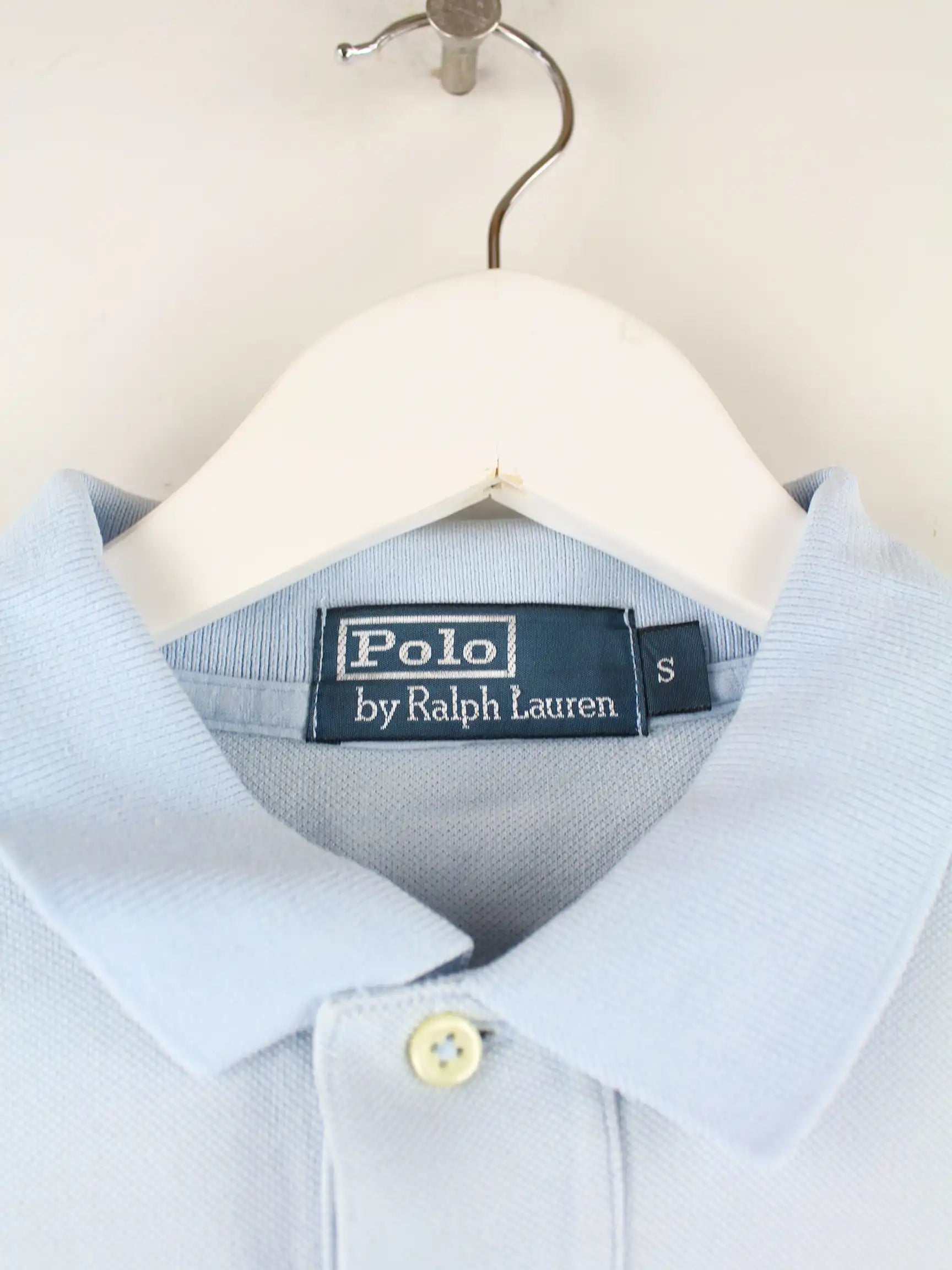 Blaues Poloshirt der Brand Ralph Lauren aus den 90'ern in Größe S. Es ist aus Baumwolle produziert und in gutem Zustand auf Lager.