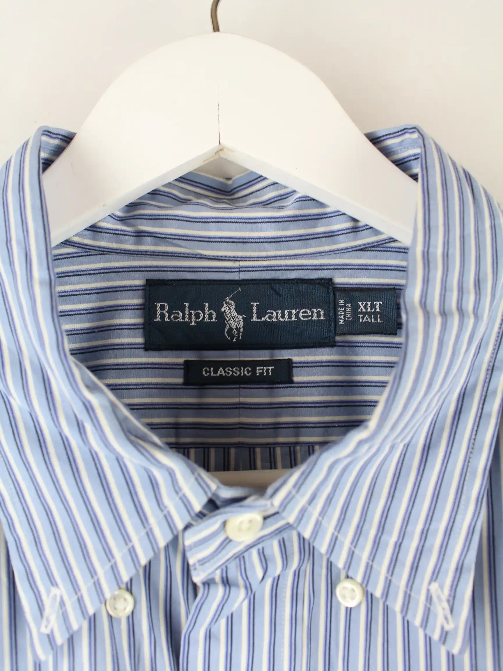 Ralph Lauren 90s Vintage Striped Classic Fit Hemd Blau XXL