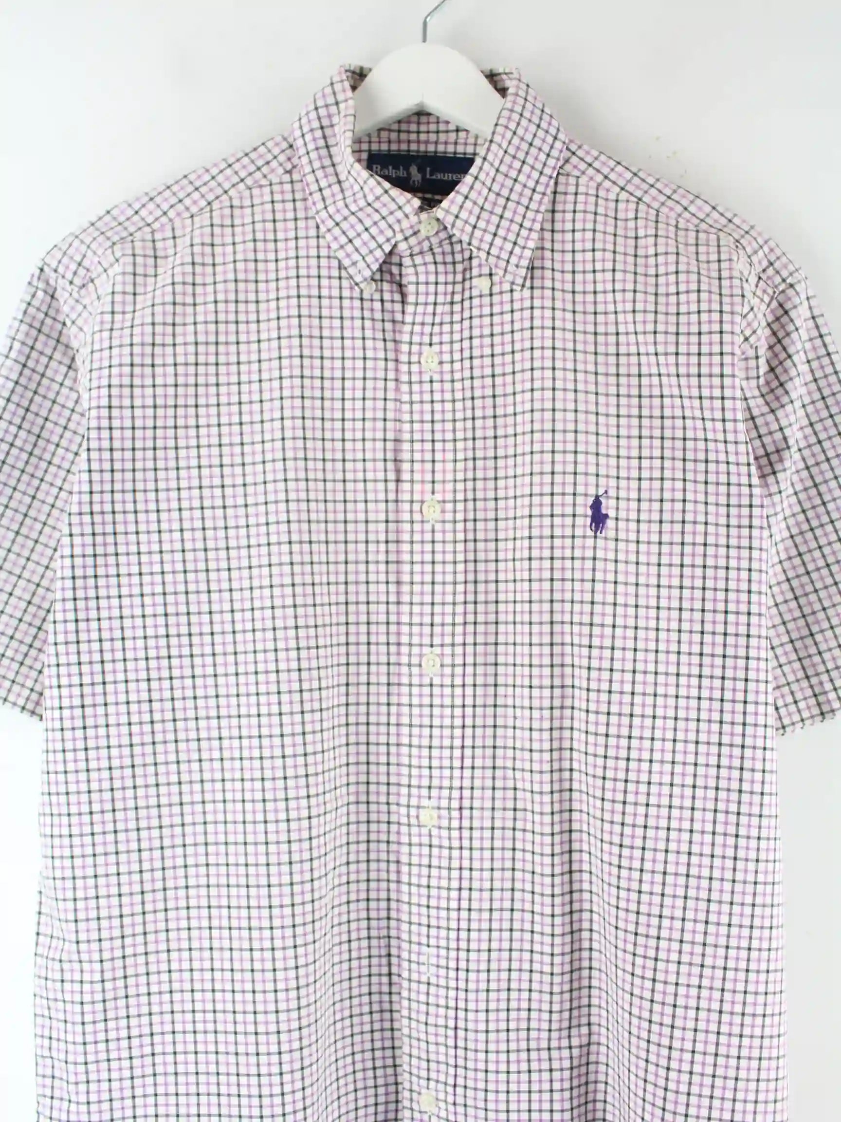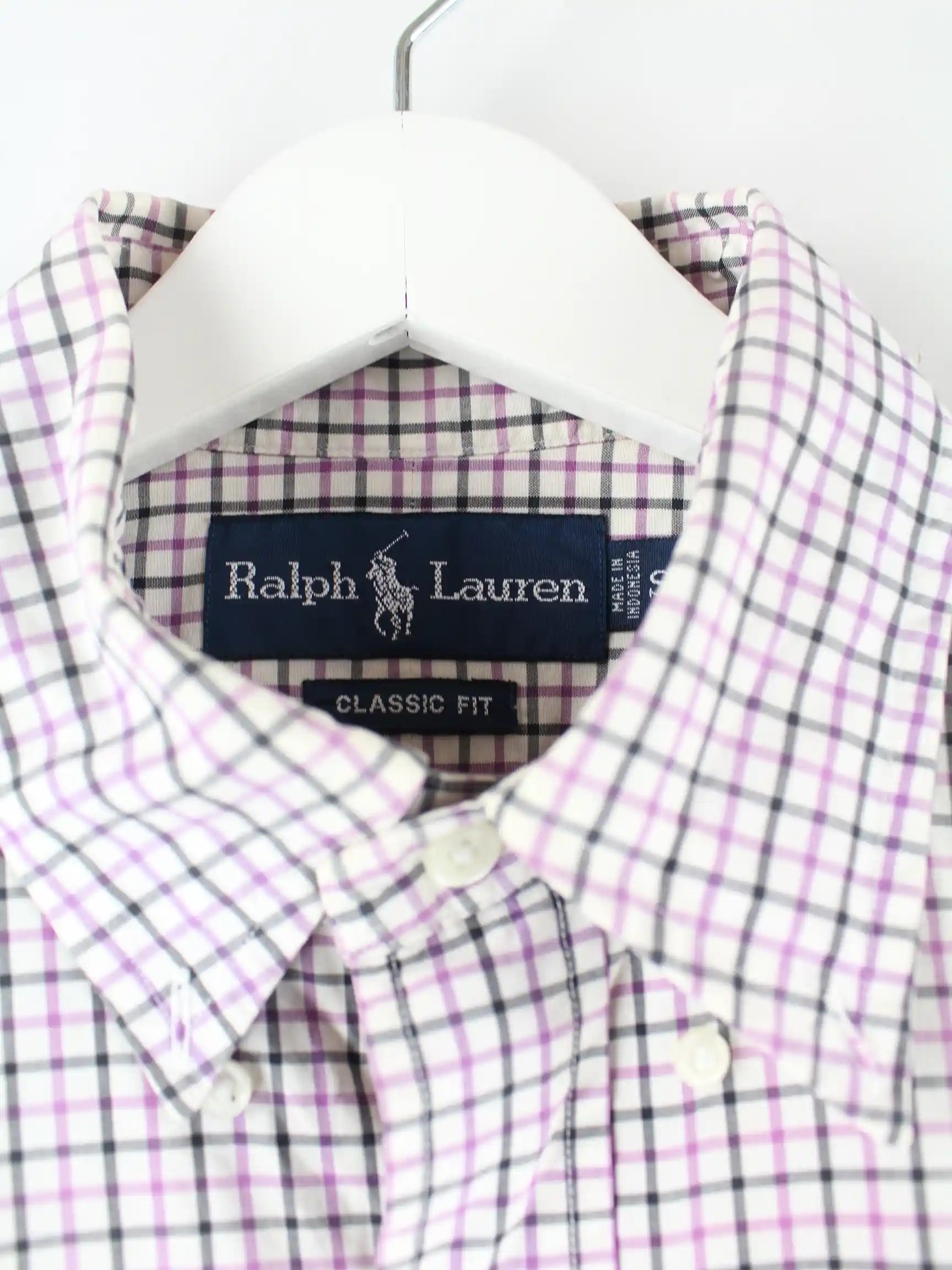 Lilafarbenes Hemd der Marke Ralph Lauren aus den 90'ern in Größe S. Es ist aus Baumwolle angefertigt und in sehr gutem Zustand bei uns vorrätig.