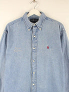 Freizeit Hemd aus dem Hause Ralph Lauren in Größe M aus den 90'ern. Es ist aus Baumwolle hergestellt und in Blau in Stock.