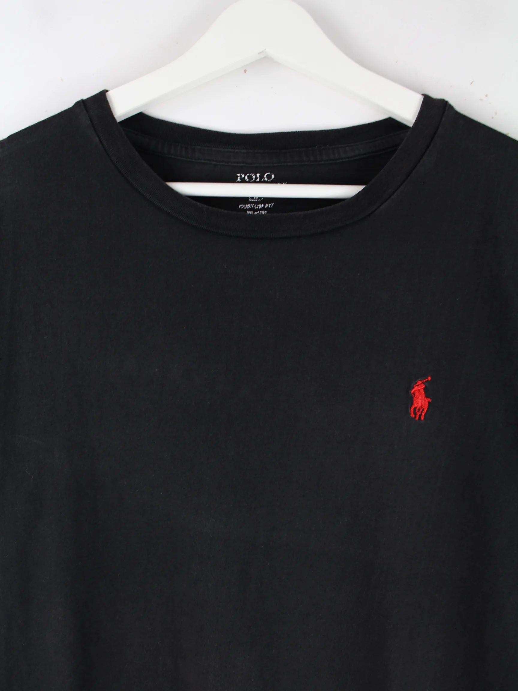 T-Shirt der Marke Ralph Lauren in Größe L. Es ist aus Baumwolle gefertigt und in Schwarz lieferbar.