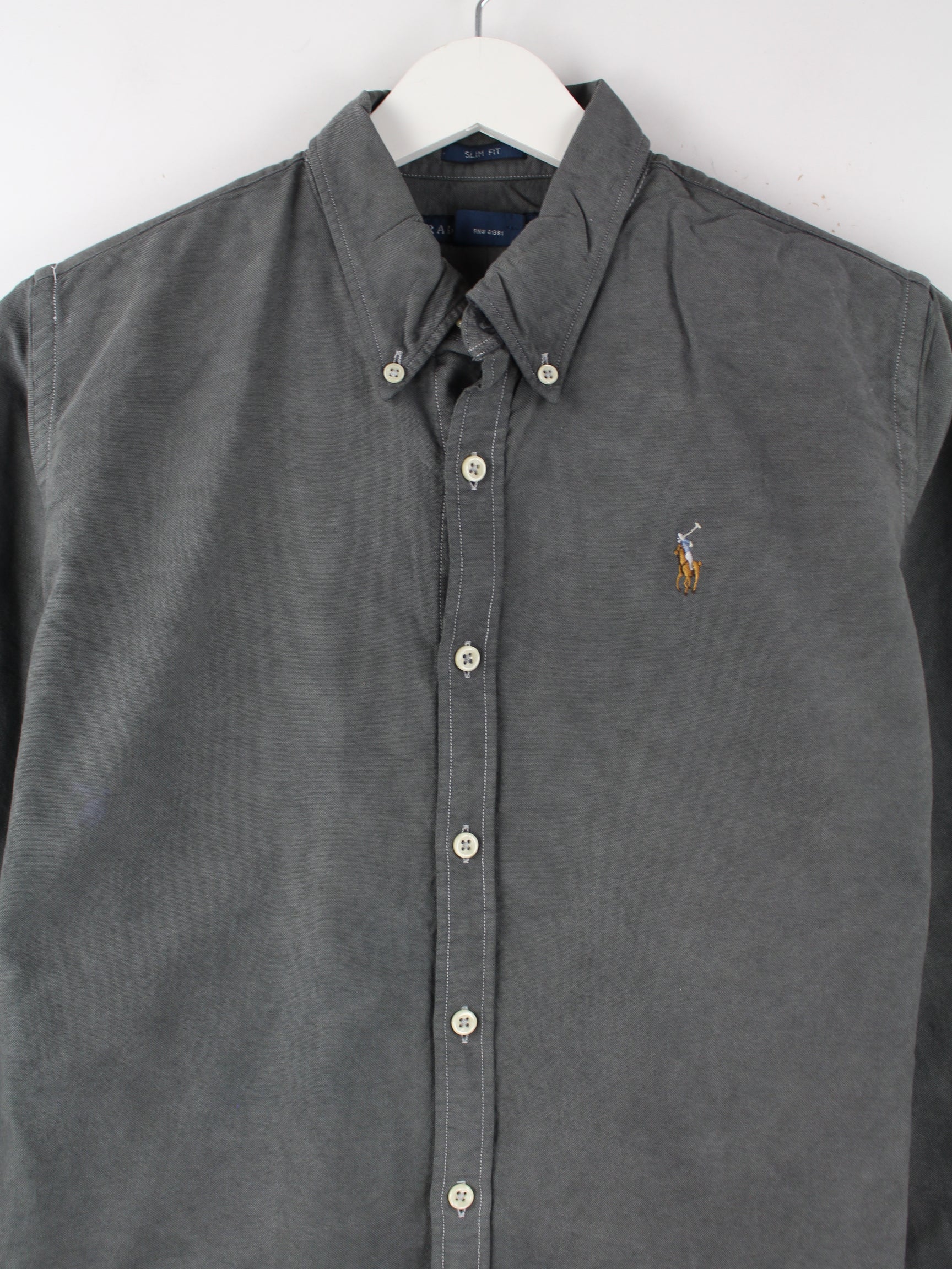 Freizeit Hemd der Marke Ralph Lauren in Größe M aus den 90'ern. Es ist aus Baumwolle produziert und in Grau auf Lager.