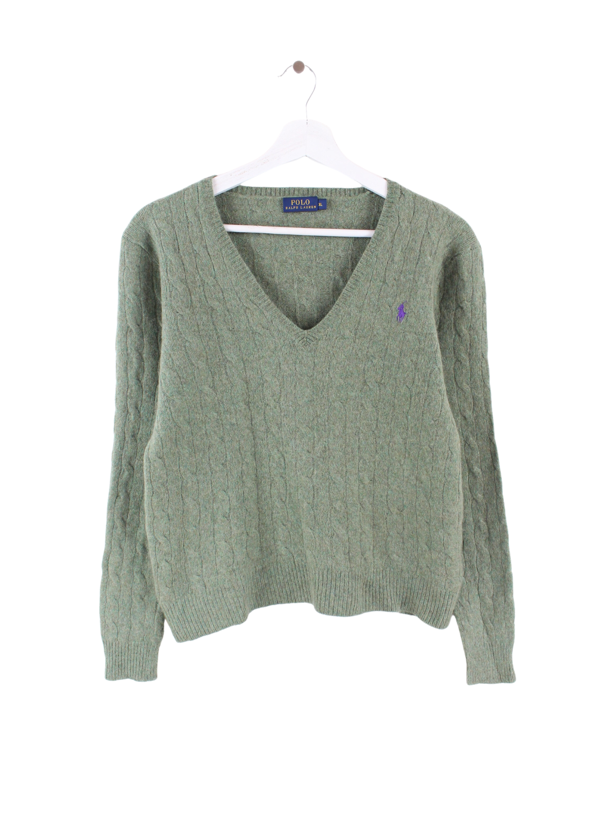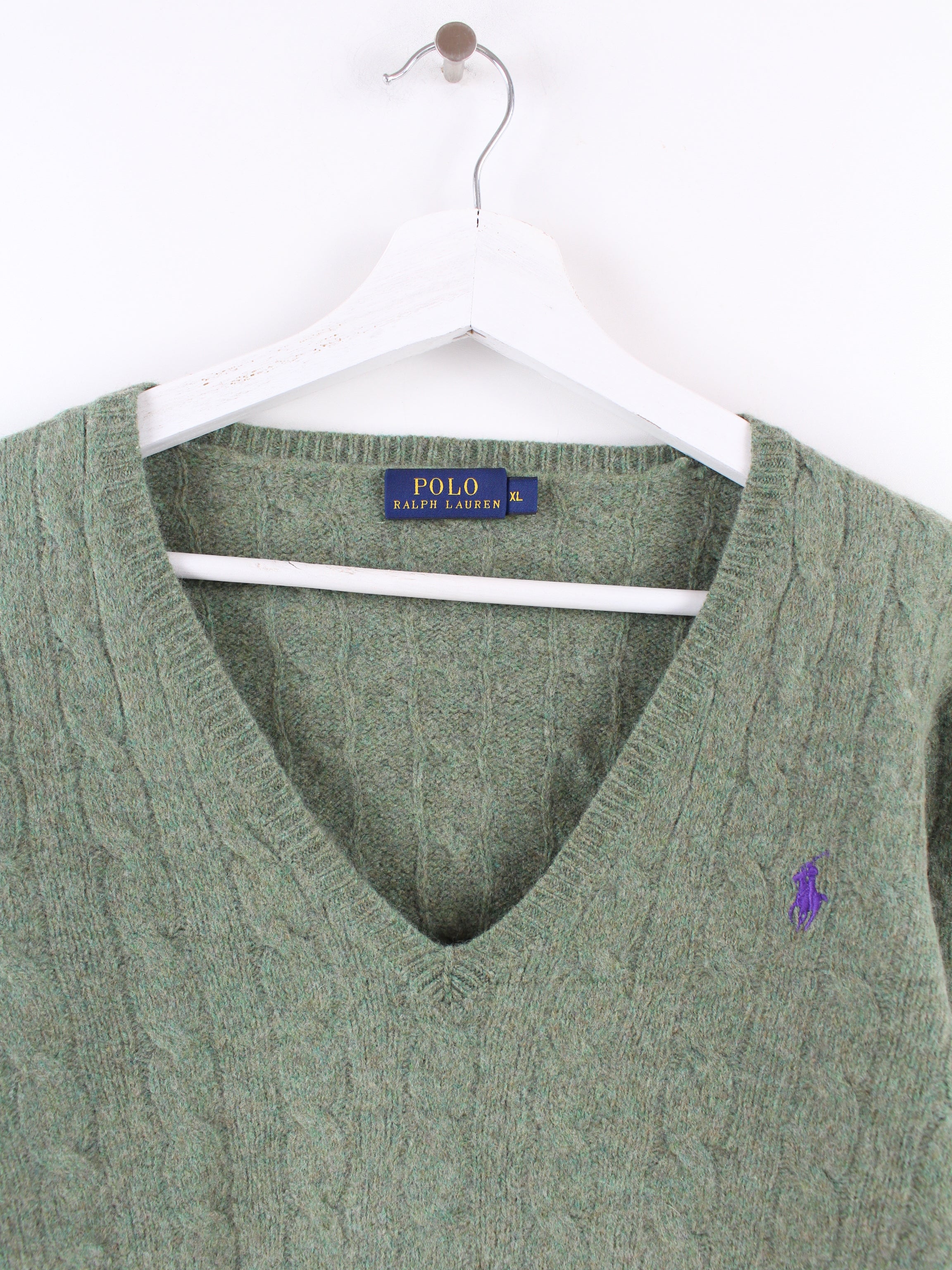 Ralph Lauren Ladies V-Neck Wool Sweater Green XL