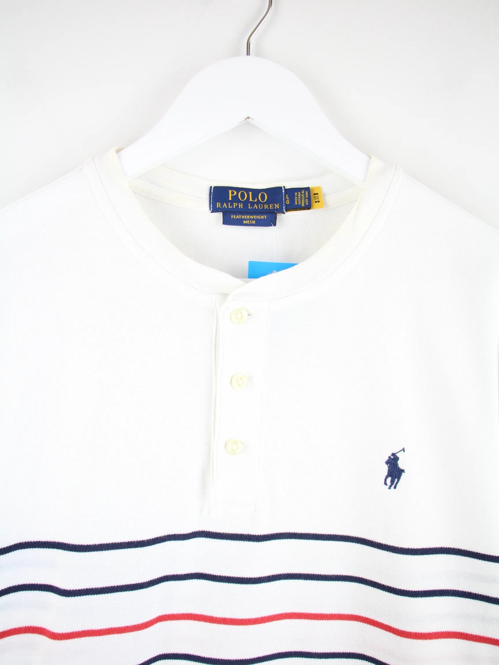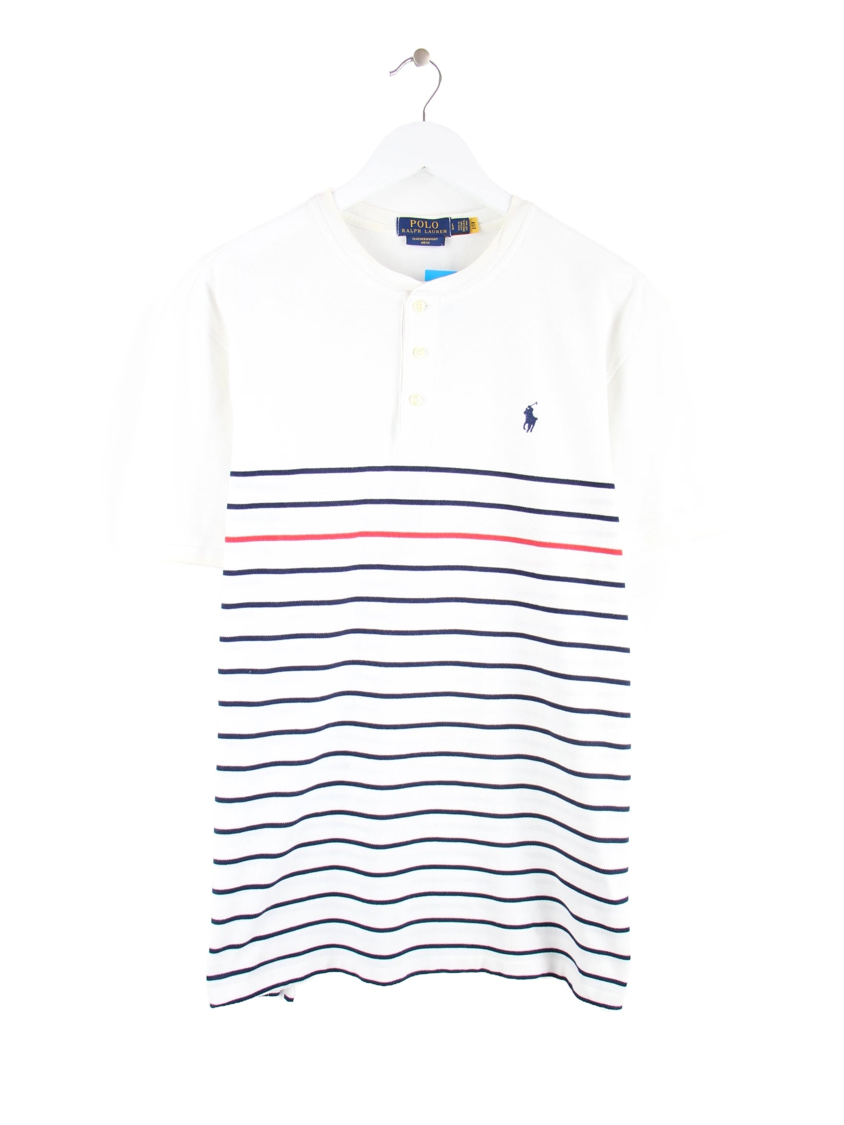 Ralph Lauren Featherweight Mesh Stripe Quarter Button T-Shirt Weiß L