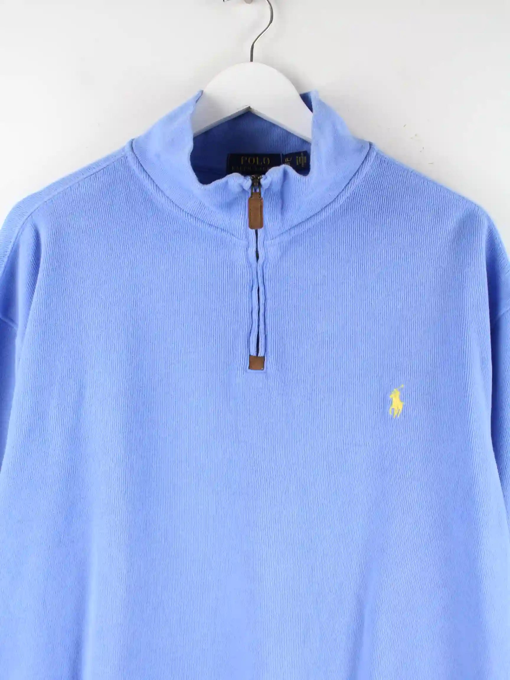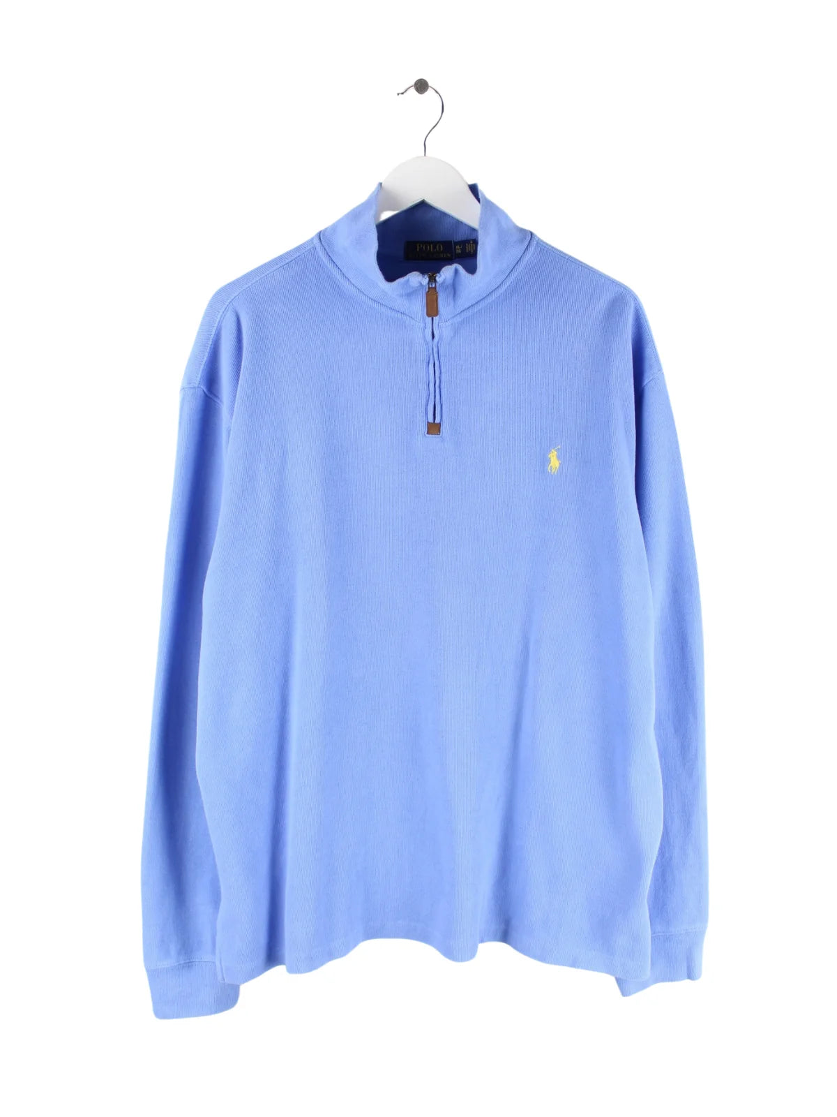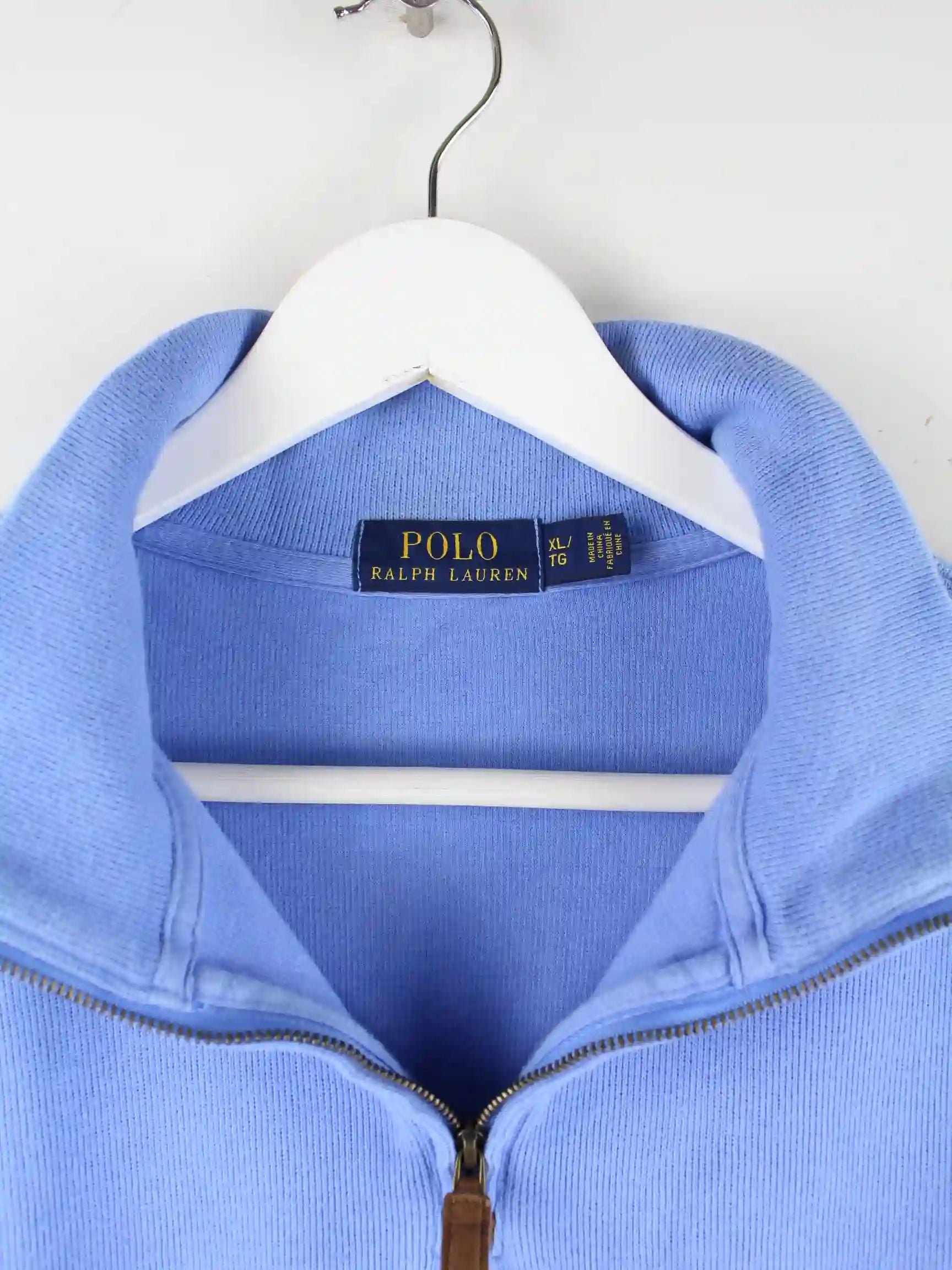 Pullover vom Brand Ralph Lauren mit kurzem Reißverschluß in Größe XL. Er ist aus Baumwolle gemacht und in Blau in Stock.