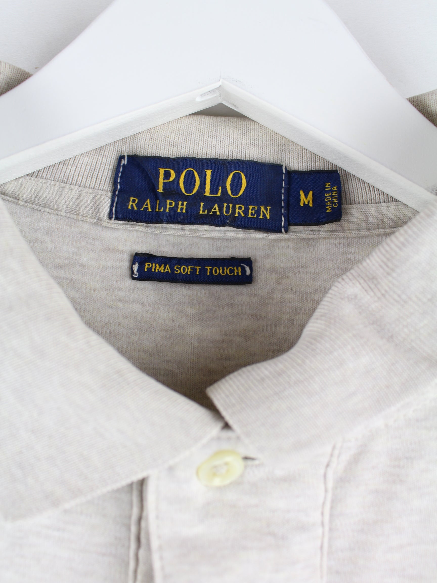 Graues Poloshirt aus dem Hause Ralph Lauren in Größe M. Es ist aus Baumwolle produziert und in sehr gutem Zustand vorrätig.