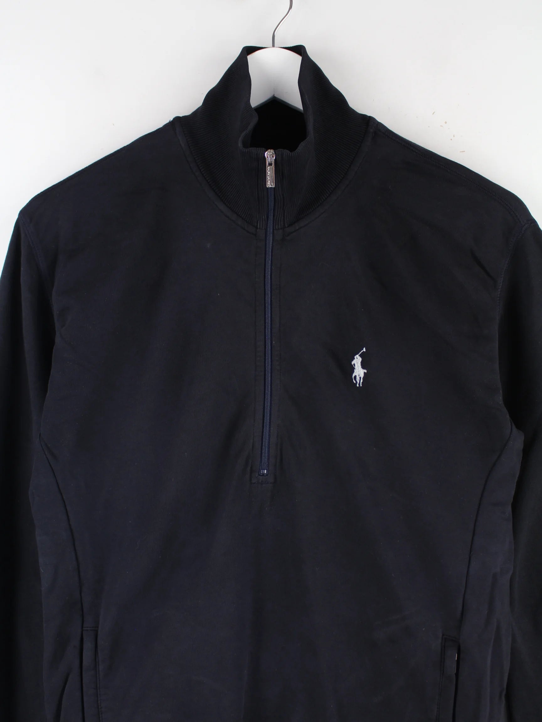 Sweater der Marke Ralph Lauren mit half Zip in Größe XS. Er ist aus Synthetik und in Schwarz vorrätig.