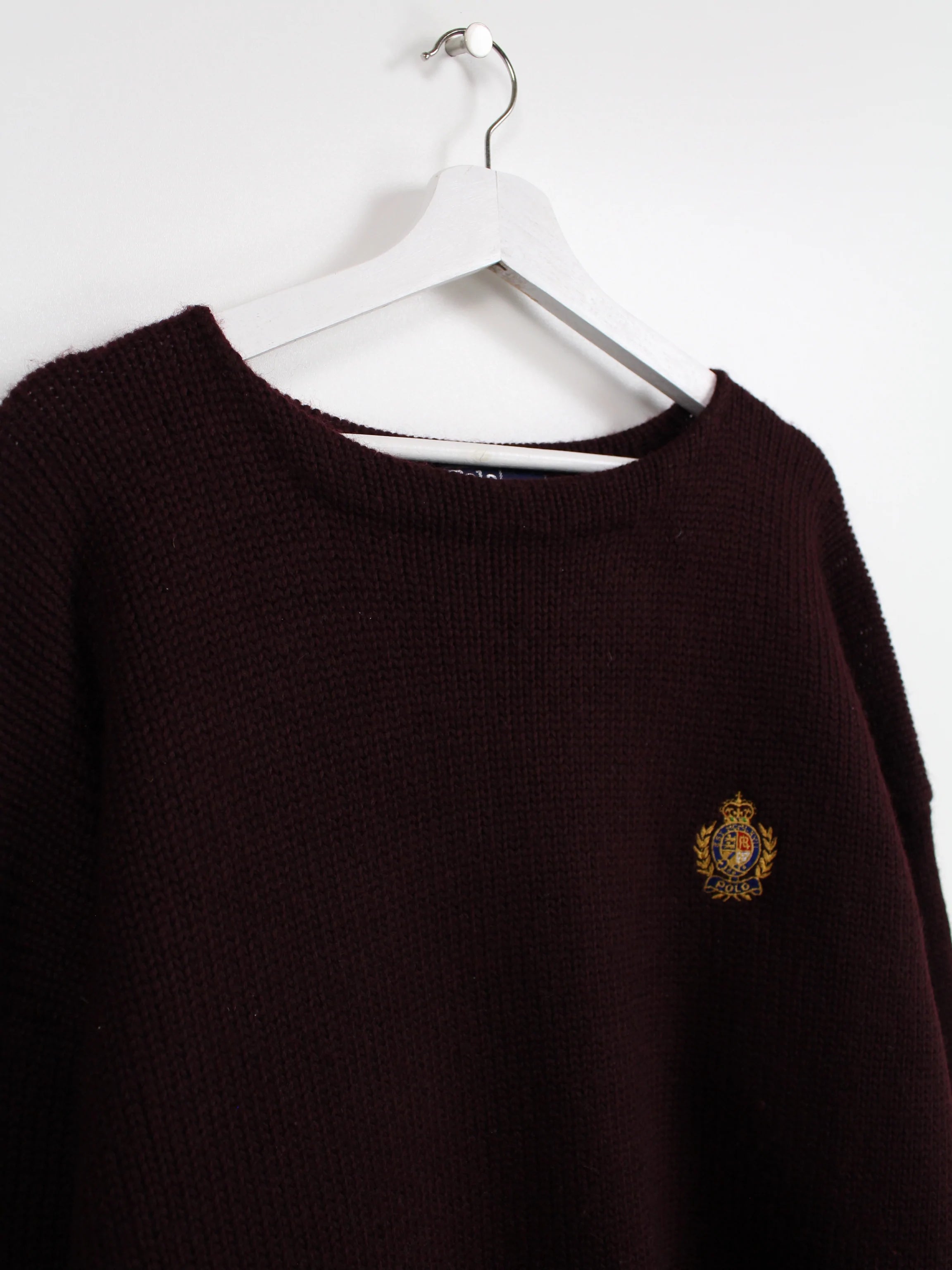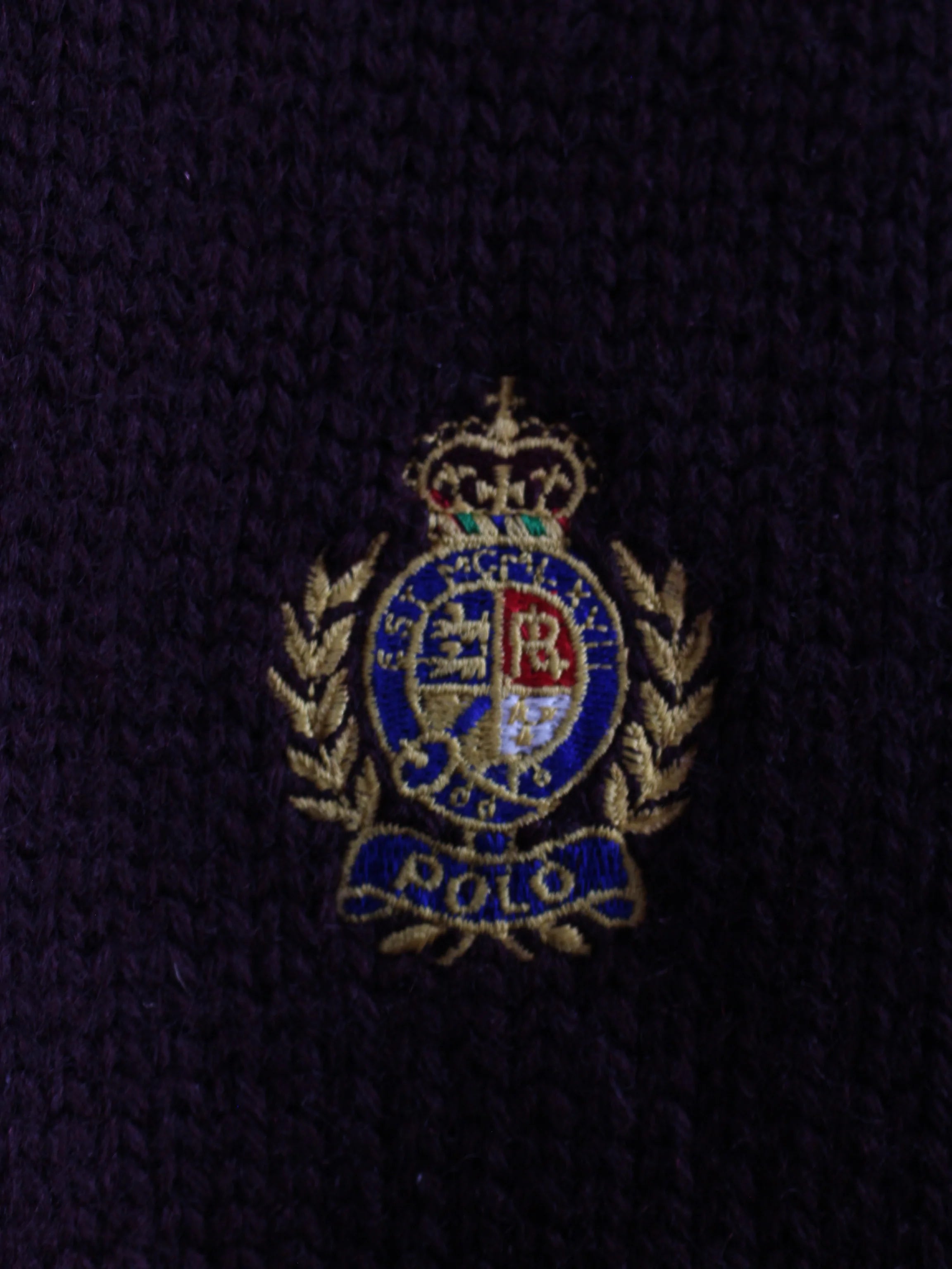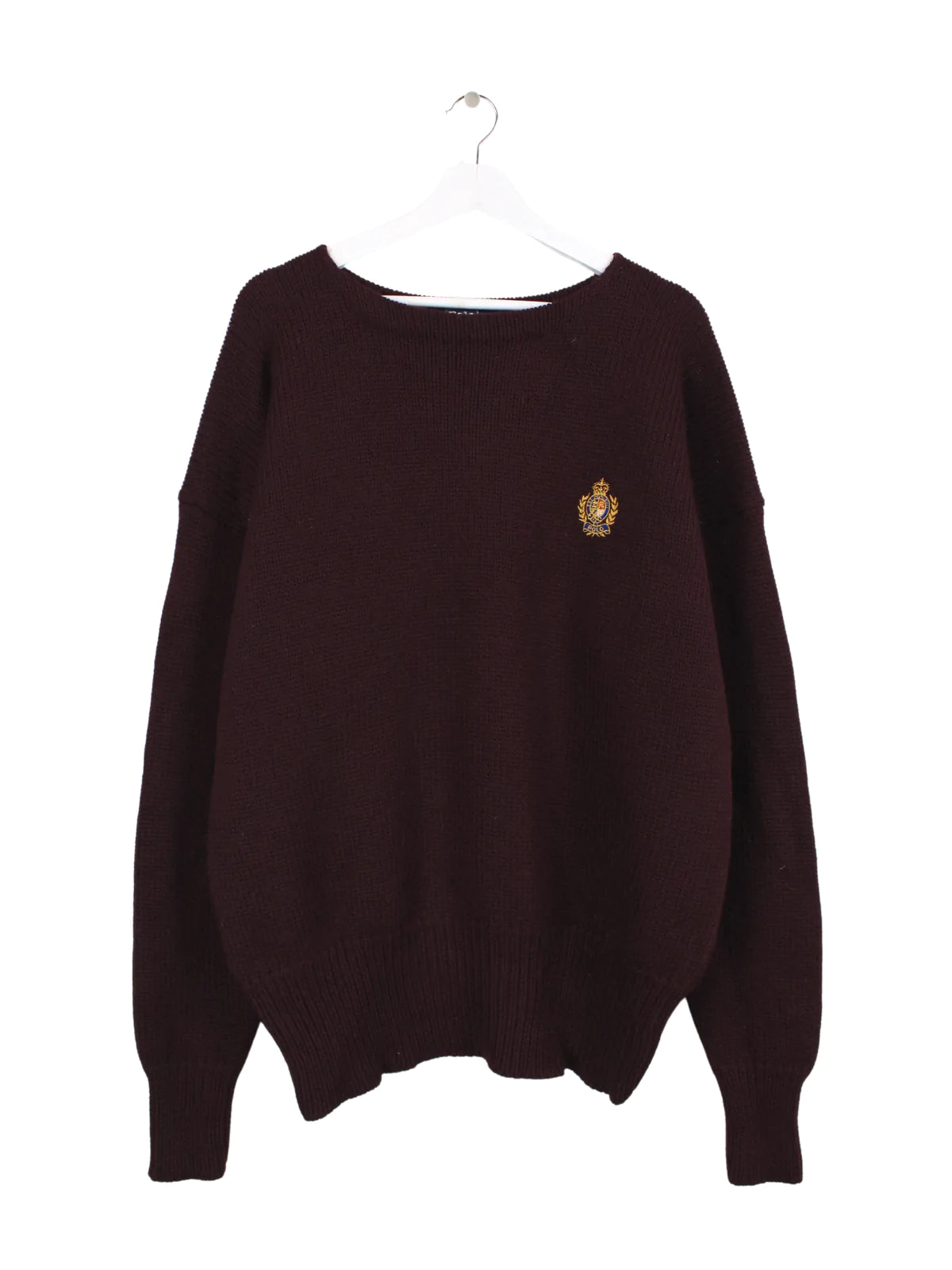 Red knit sweater from the Ralph Lauren brand, with a large embroidered logo.