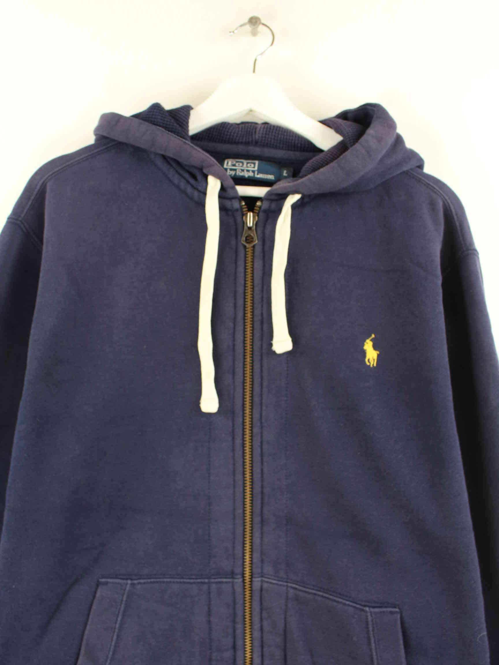 Hoodie from Ralph Lauren with a zipper in size L. It is made from a cotton blend and is available from us in blue.