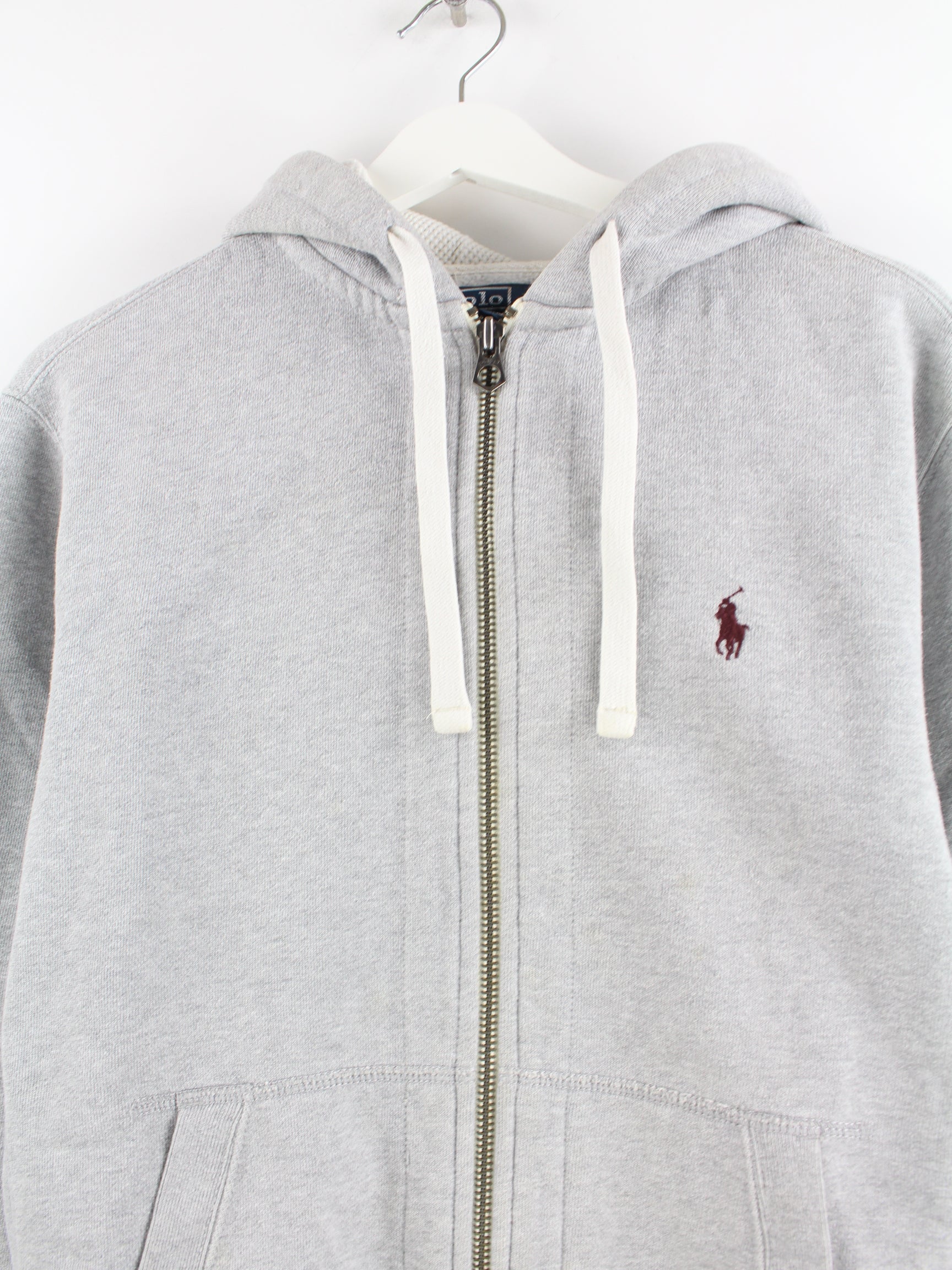 Ralph Lauren hoodie with full-length zip in size M. It is made of a cotton blend and is available in gray on stock.