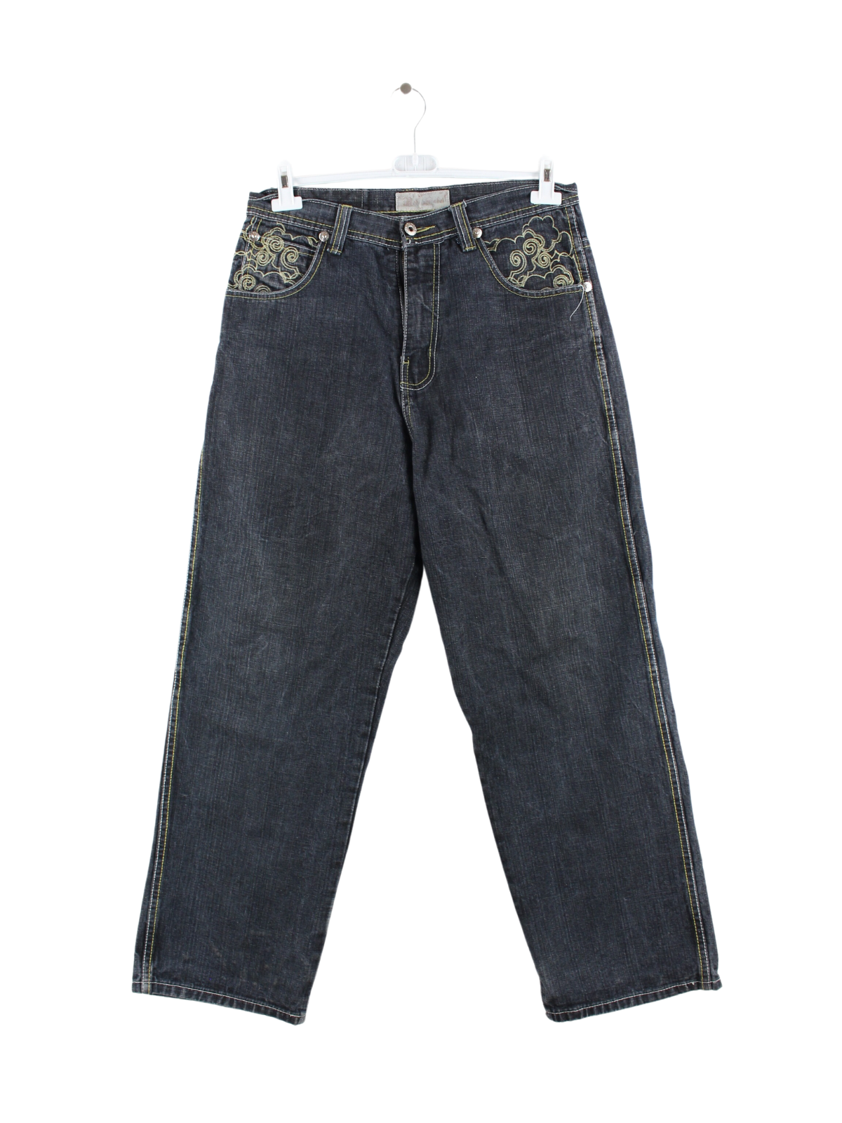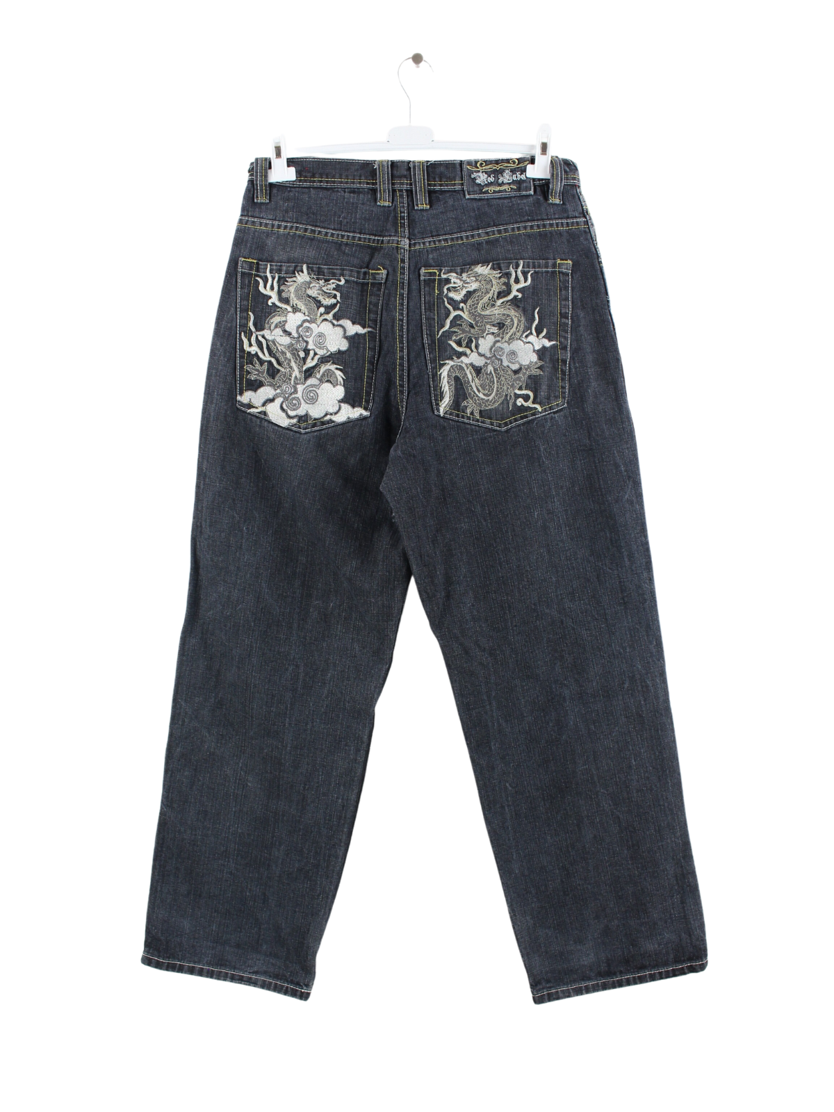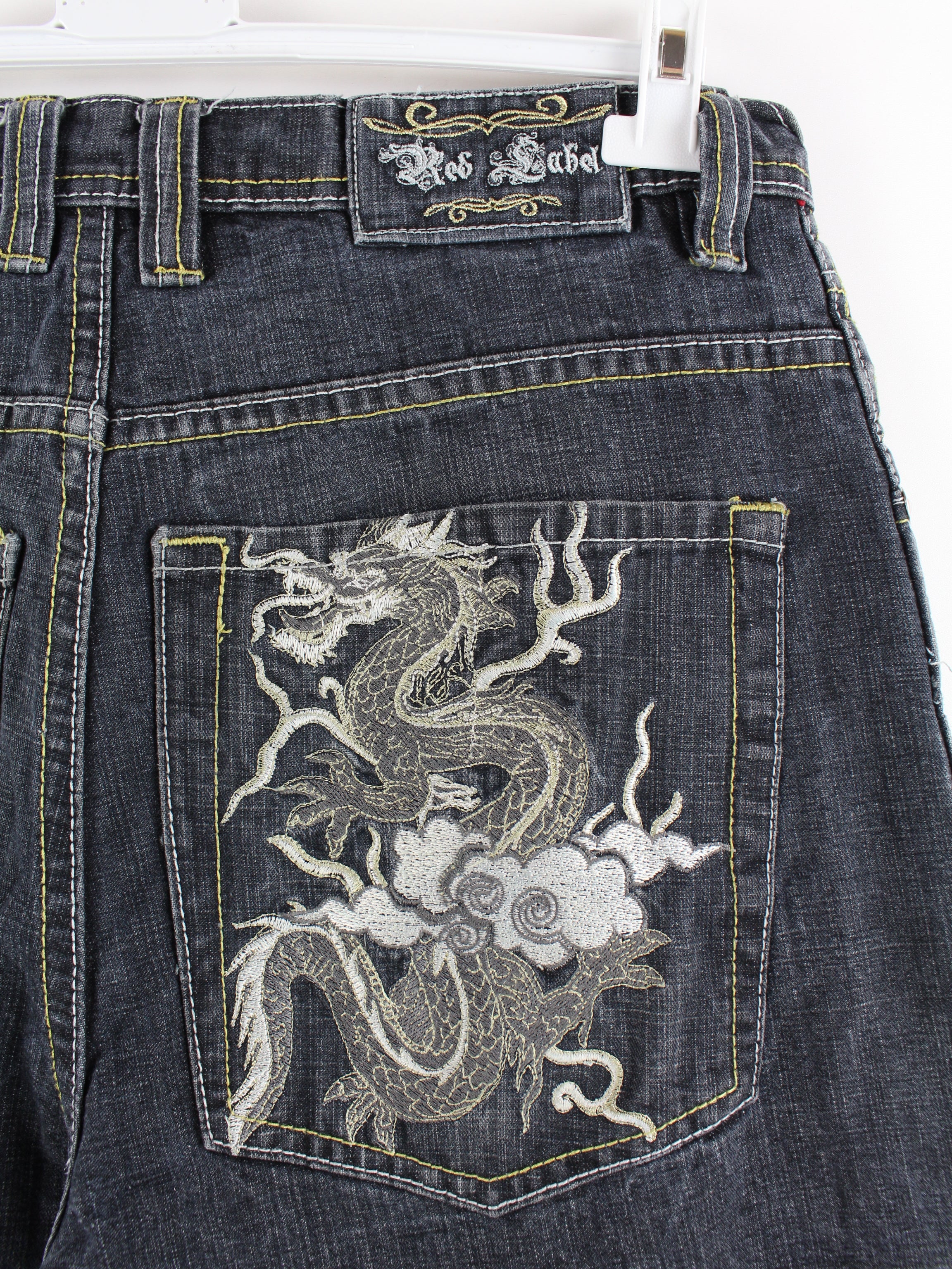 Vintage Red Label Dragon jeans with embroidered motifs.