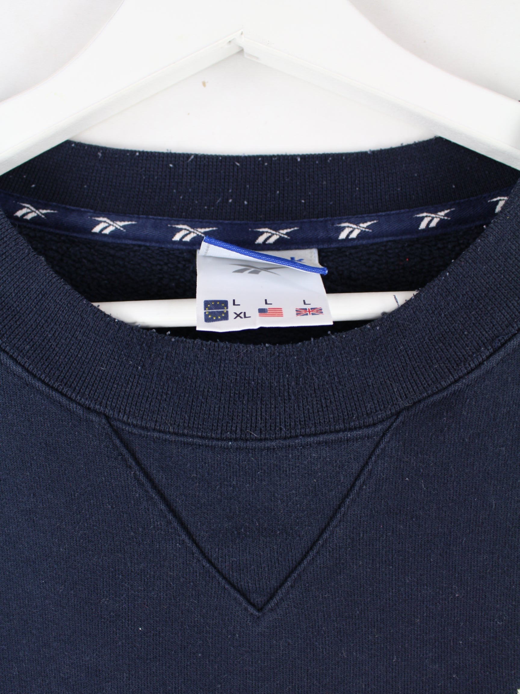 Sweater from the brand Reebok in size L. It is made from a cotton blend and is available in blue.