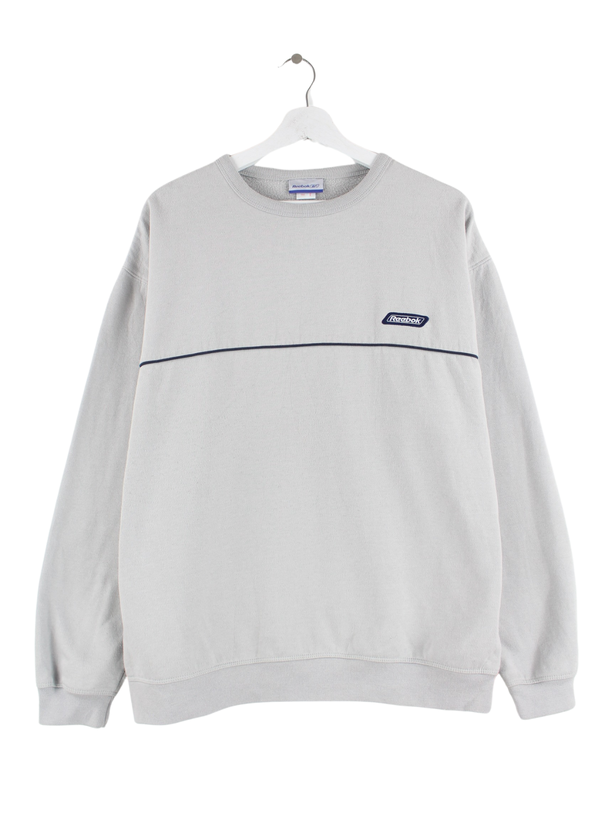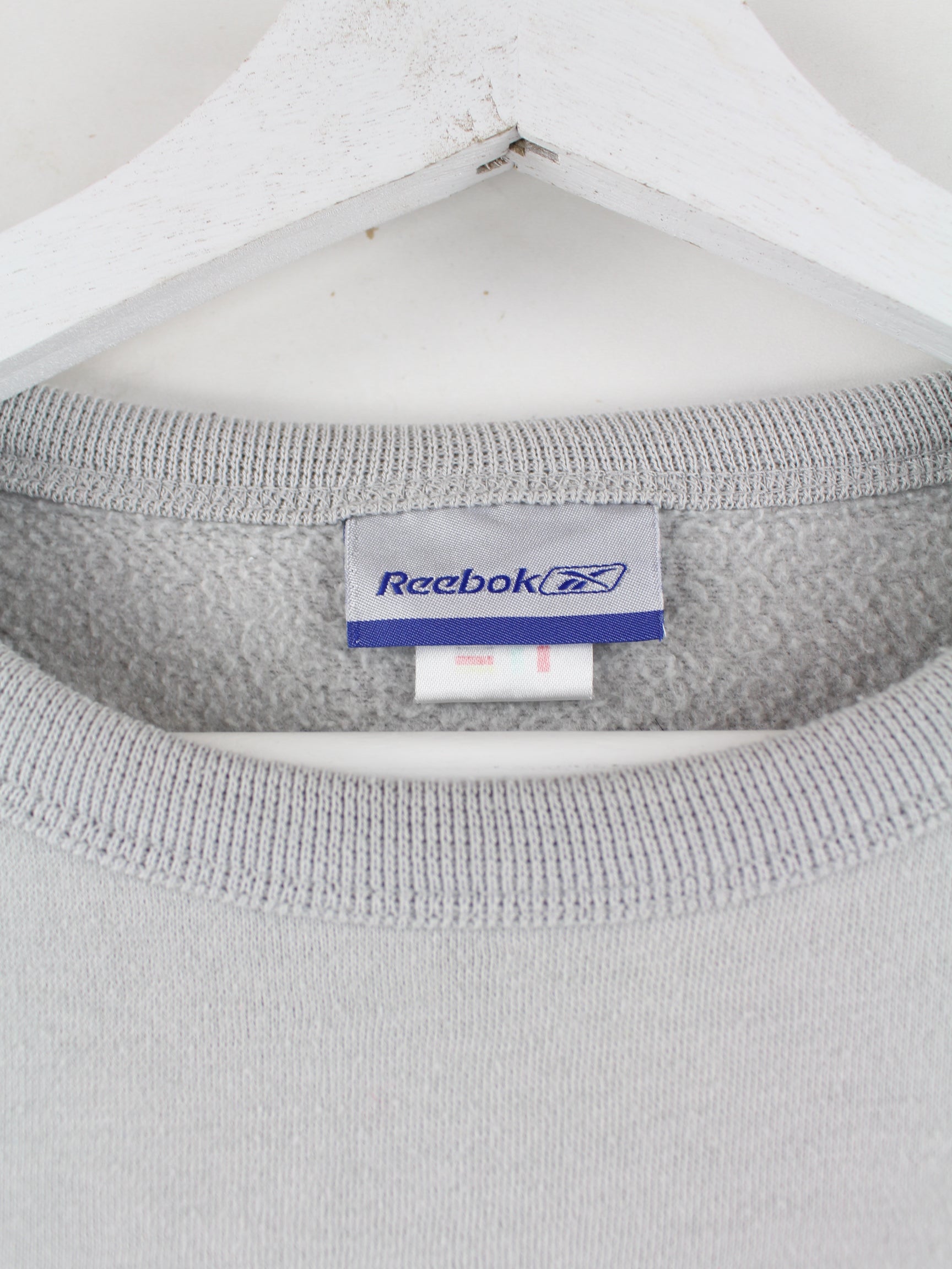 Grauer Sweater des Labels Reebok in Größe L. Er ist aus einer Baumwollmischung und in gutem Zustand zu haben.
