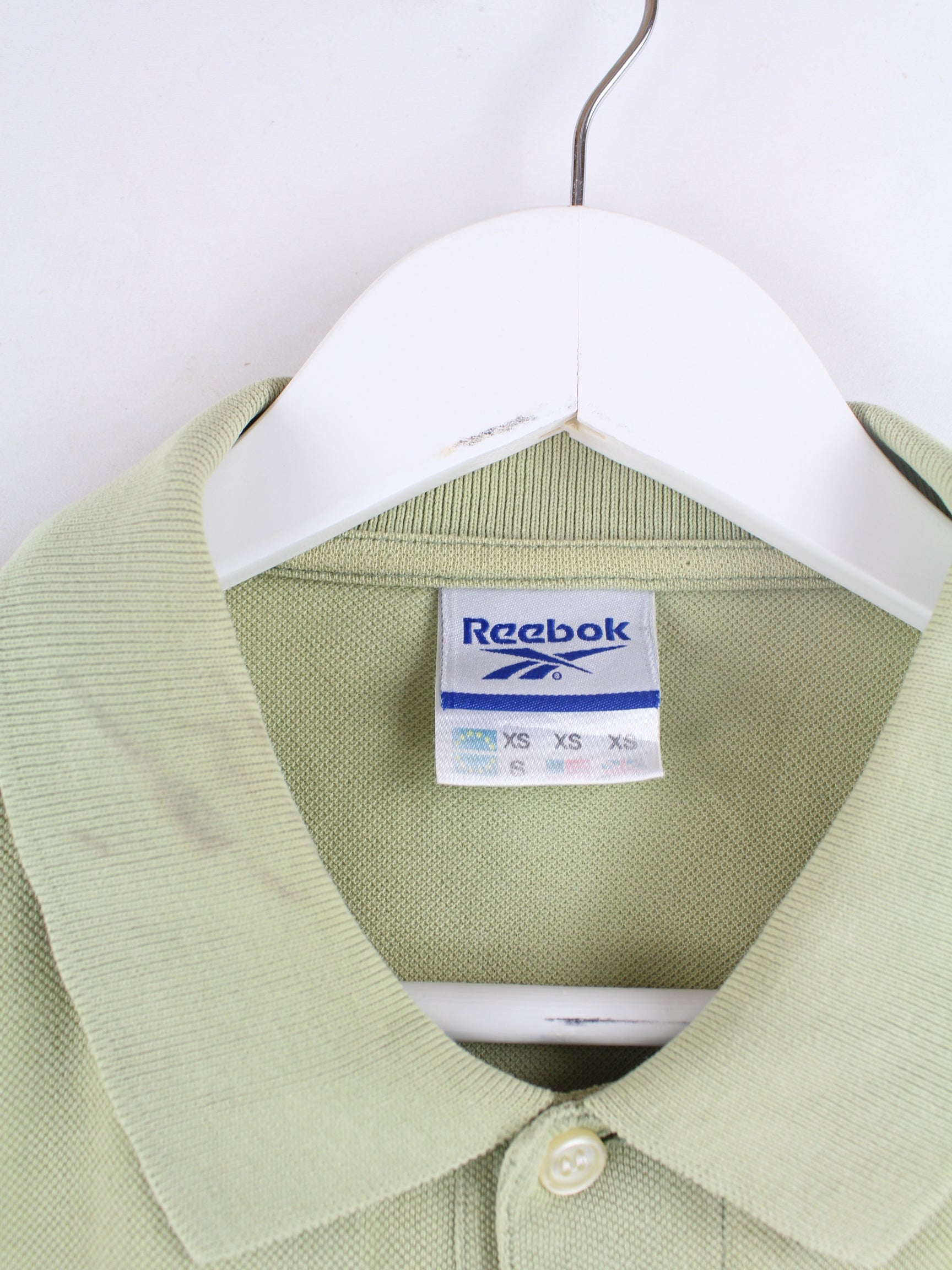 Poloshirt der Marke Reebok mit Stick in Größe S. Es ist aus Baumwolle gemacht und in Grün zu haben.