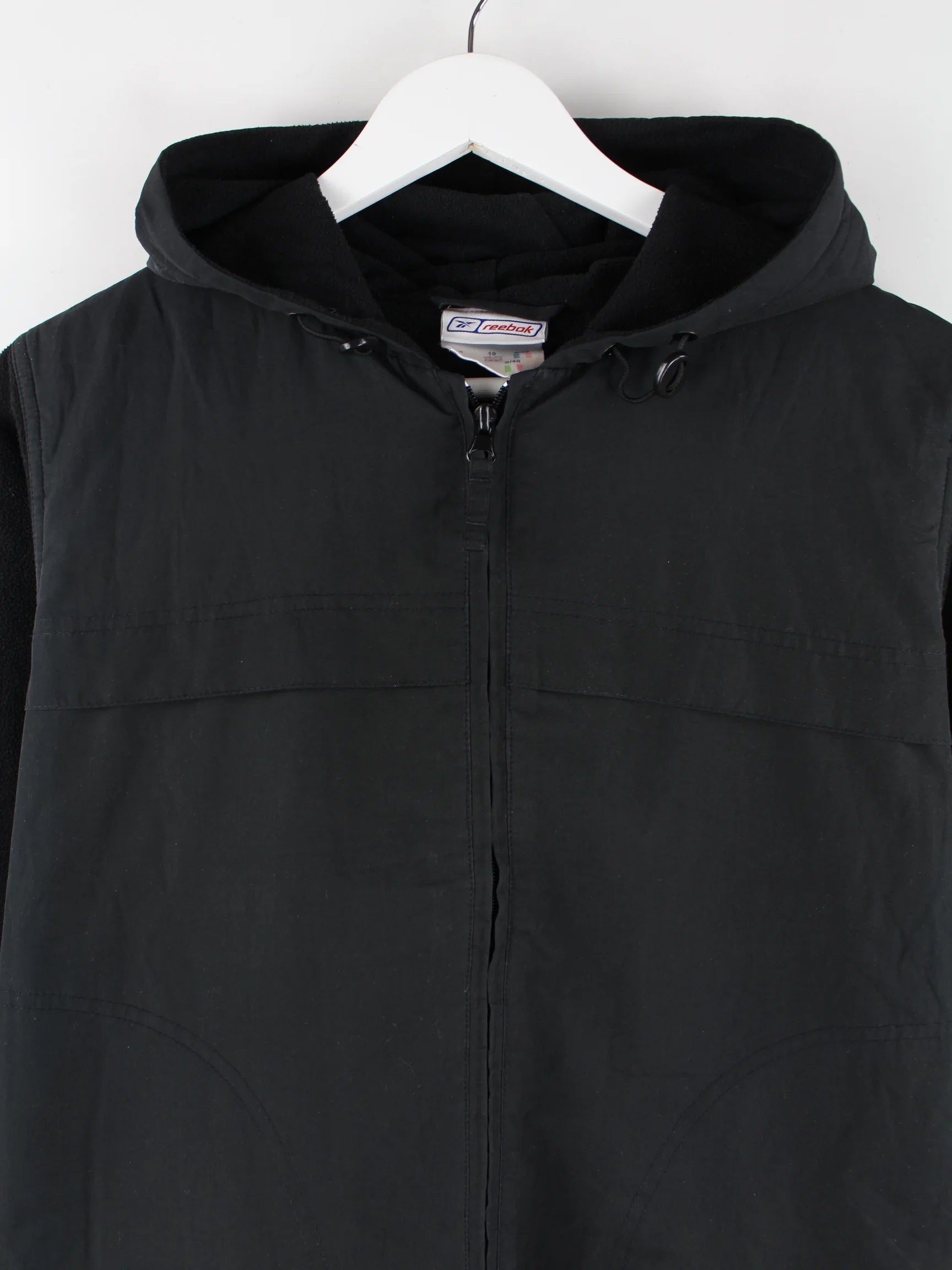 Leichte Jacke des Labels Reebok in Größe S. Sie ist aus kuscheligem Fleece produziert und in Schwarz in Stock.