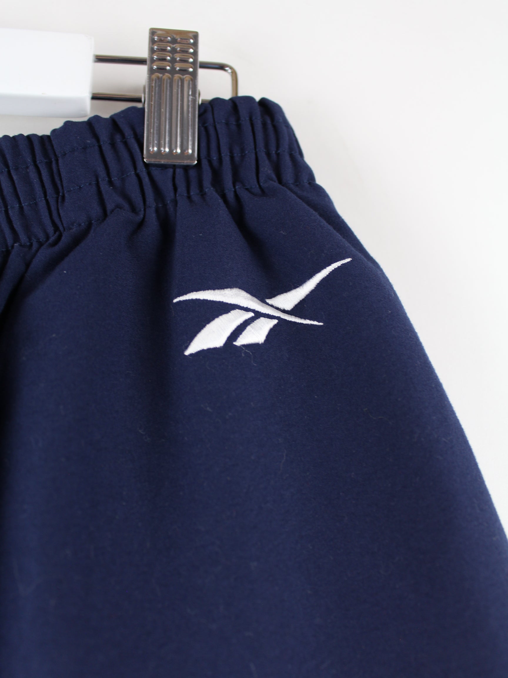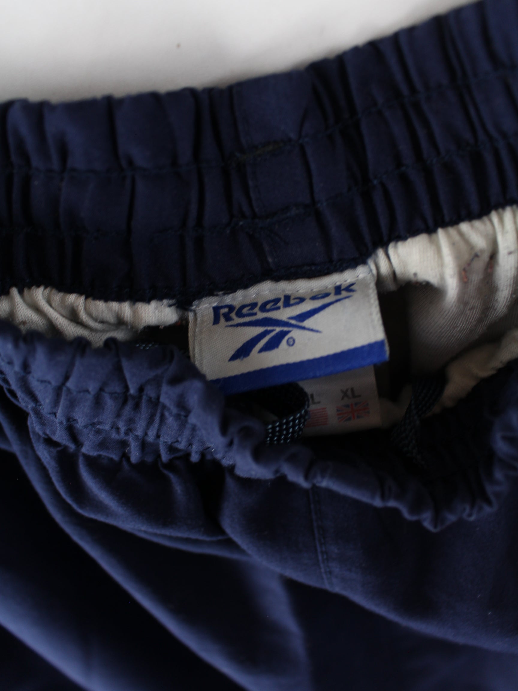 Track pants from the brand Reebok in size XL. They are made of synthetic material and come in blue.