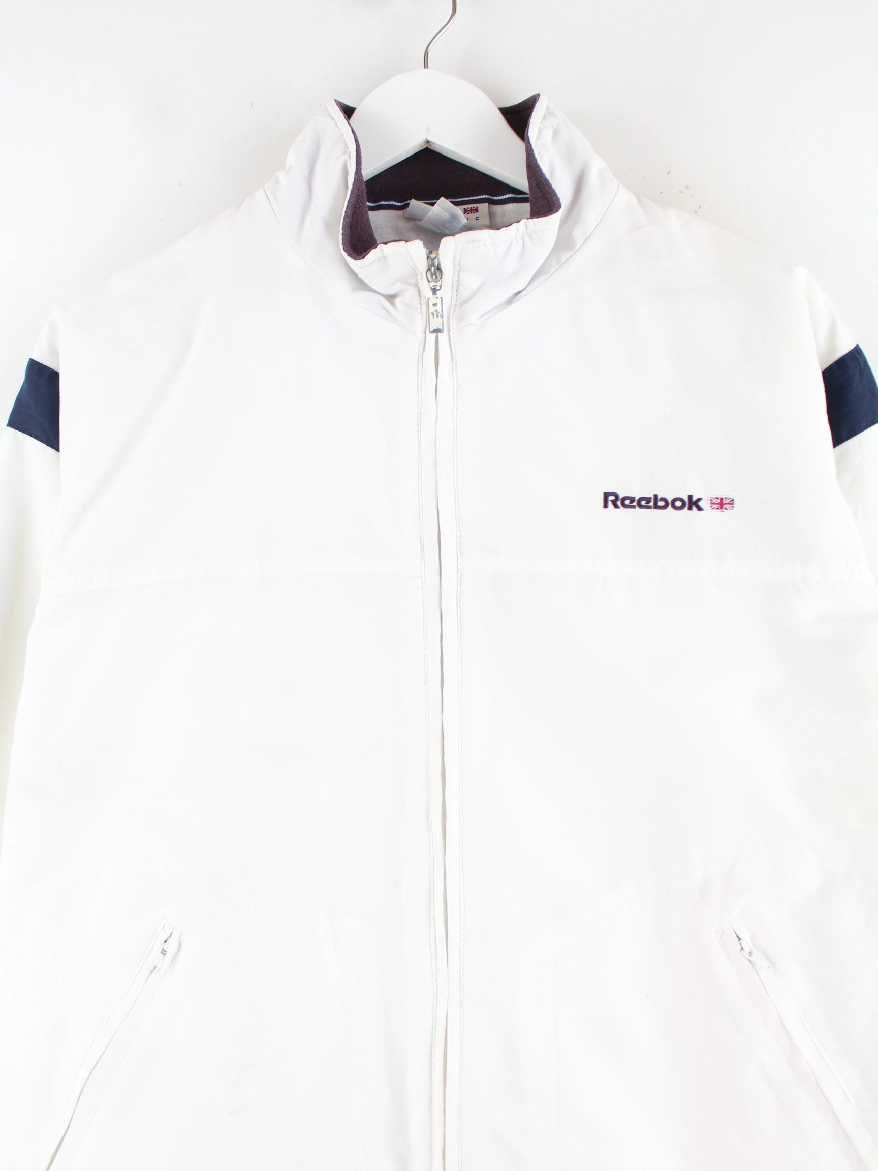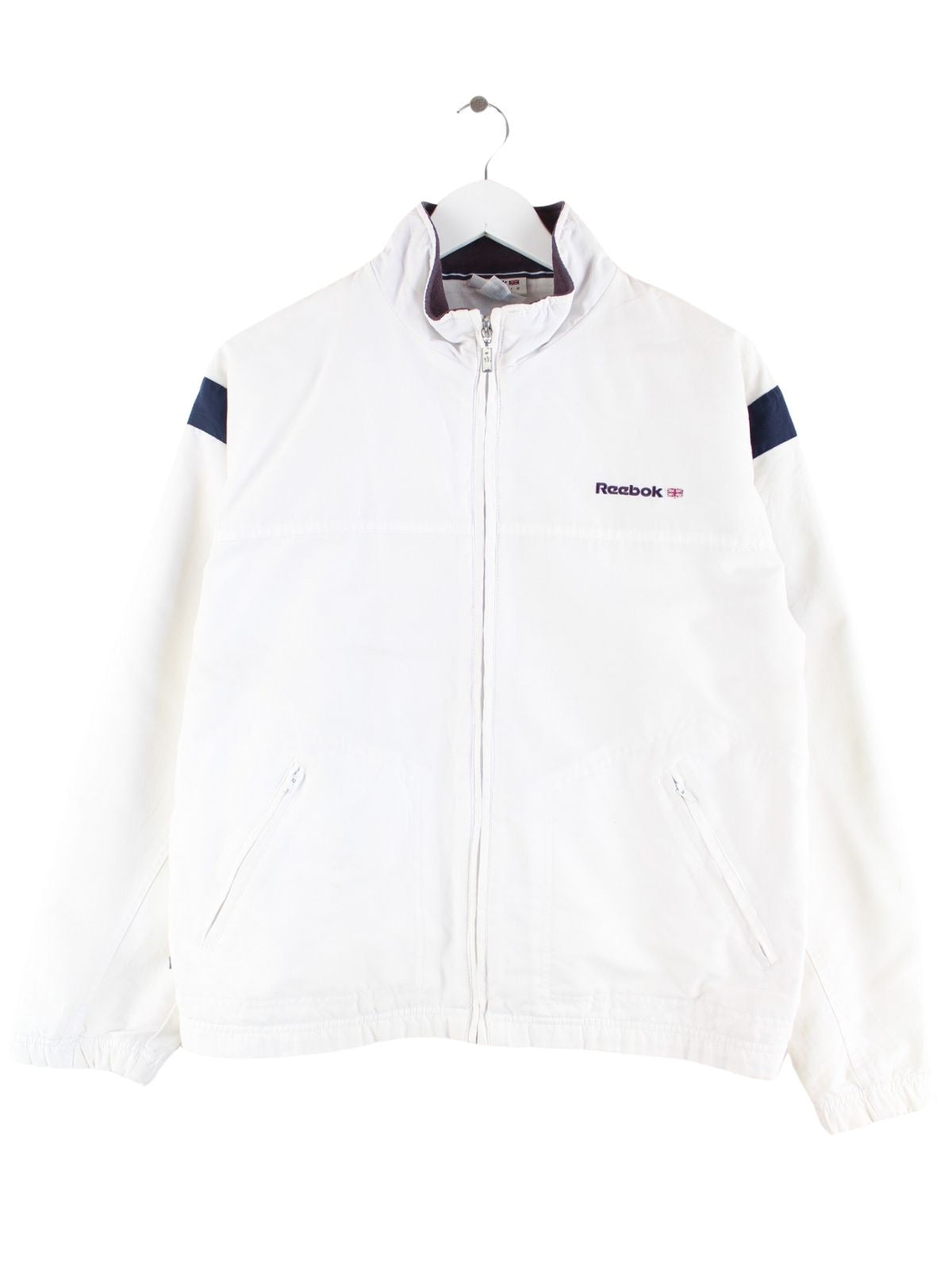 Trainingsjacke aus dem Hause Reebok in Größe M. Sie ist aus Synthetik produziert und in Weiß im Bestand.