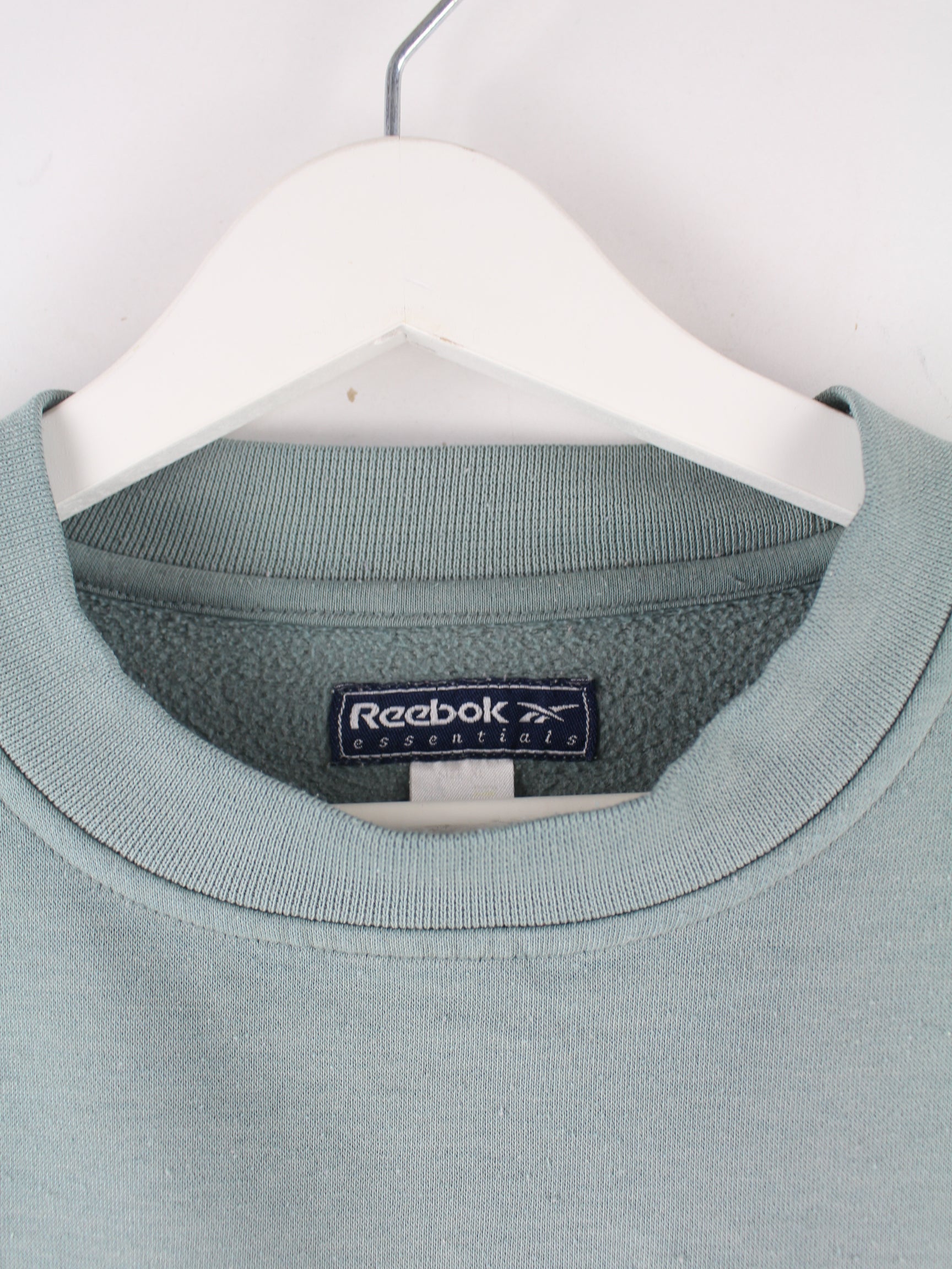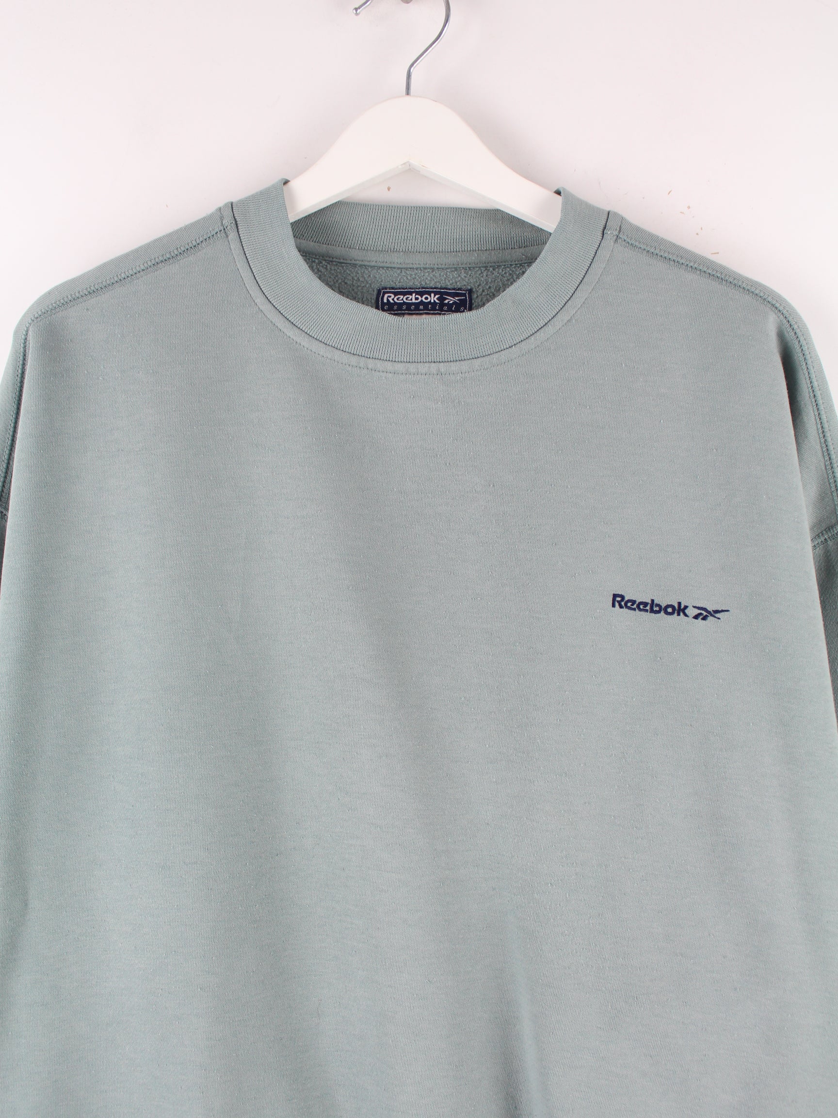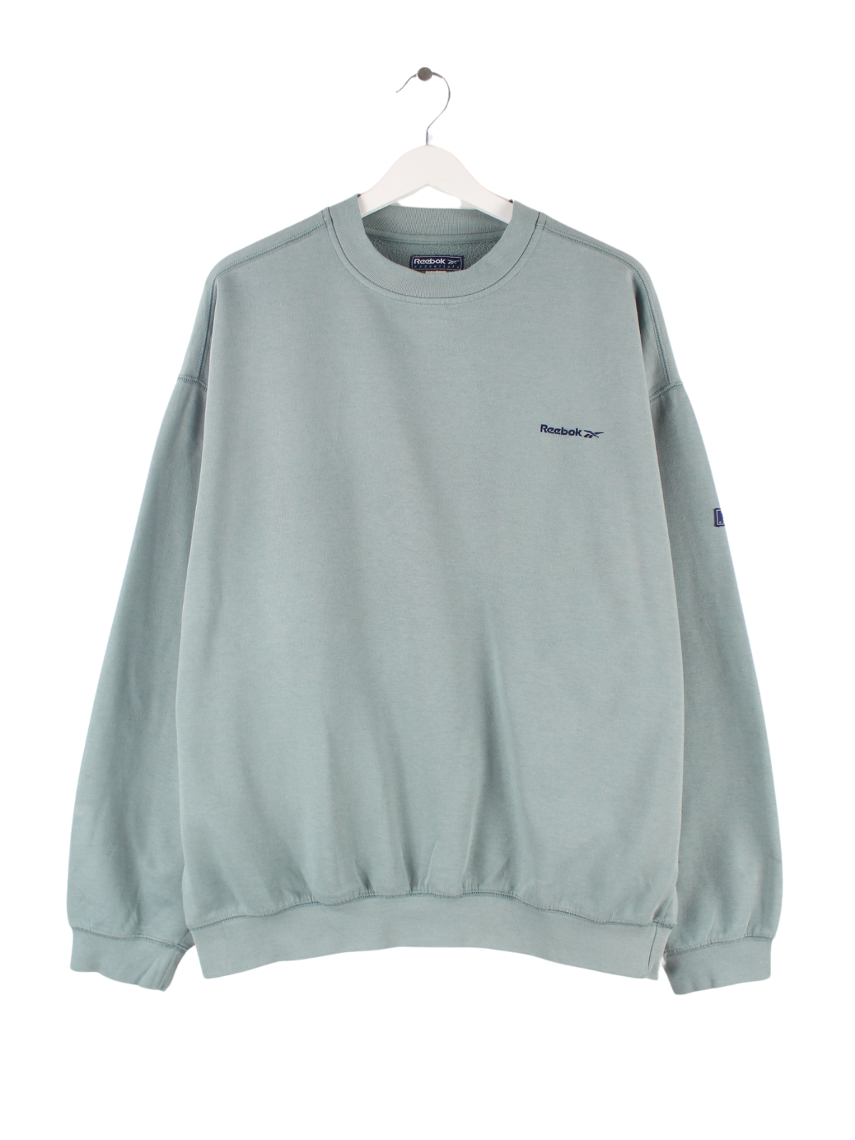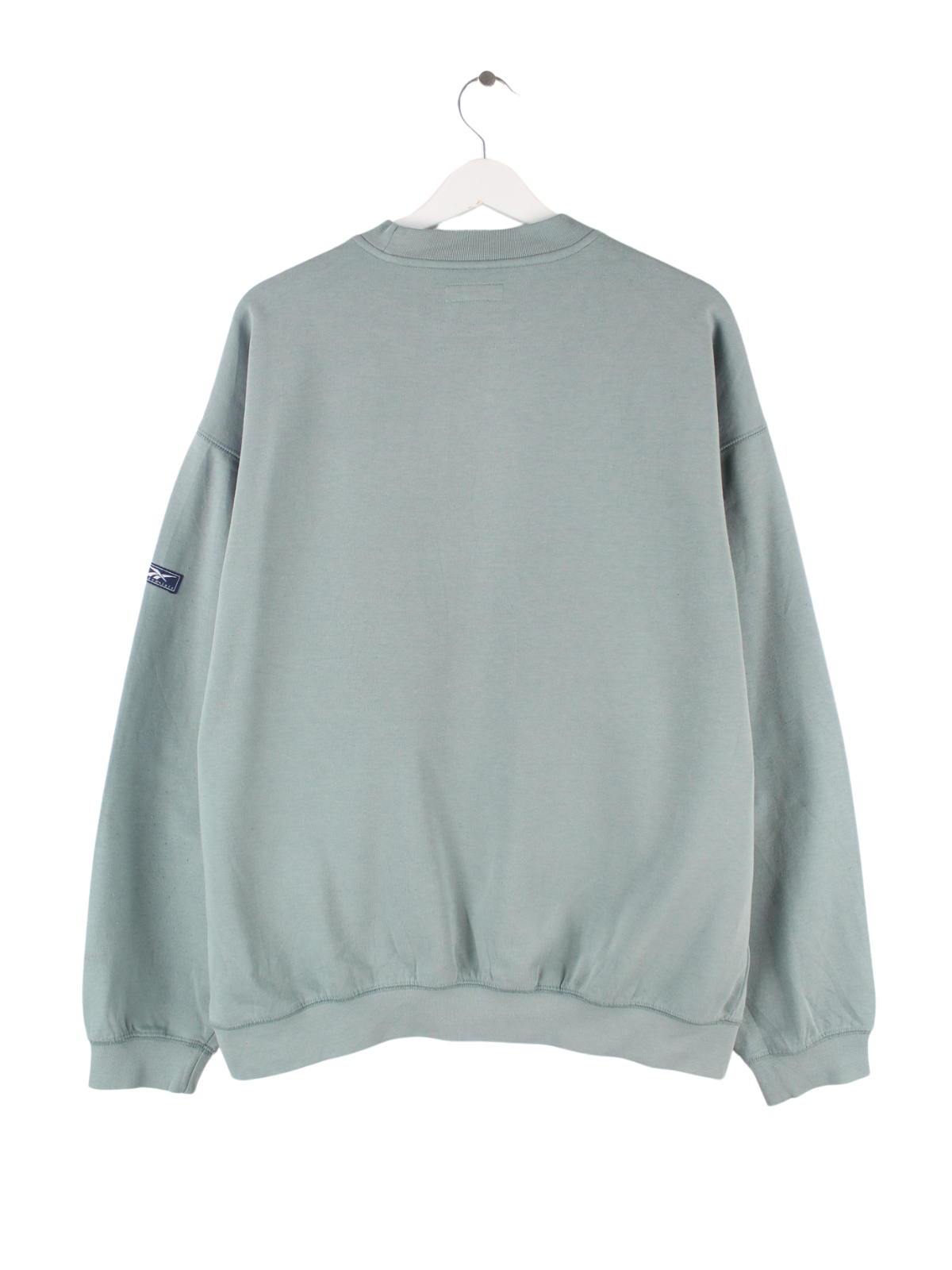 Sweater vom Brand Reebok in Größe XL aus den 90'ern. Er ist aus einer Baumwollmischung gefertigt und in Grün lieferbar.