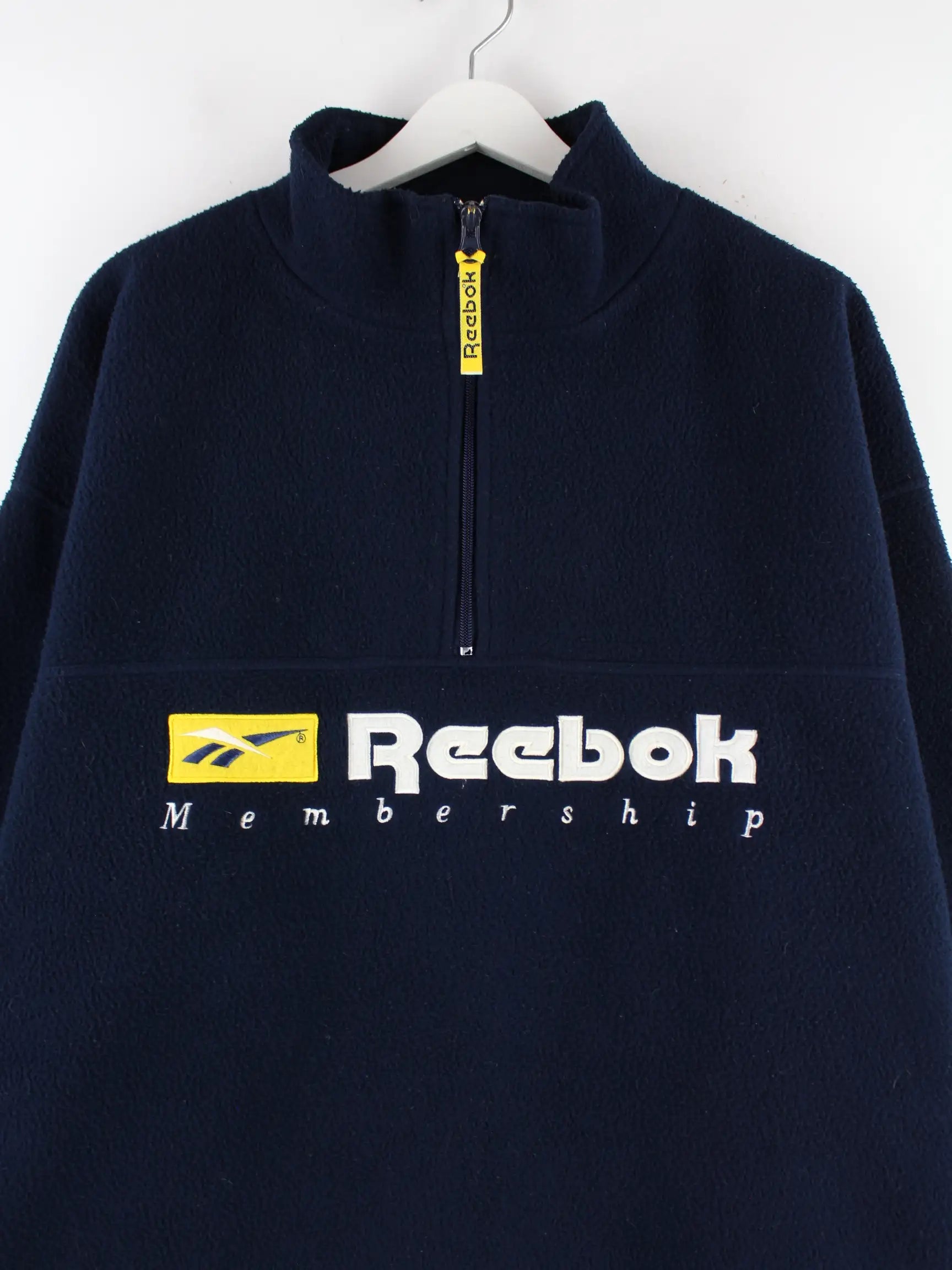 Reebok 90s Vintage Embroidered Half Zip Fleece Jacke Blau XL