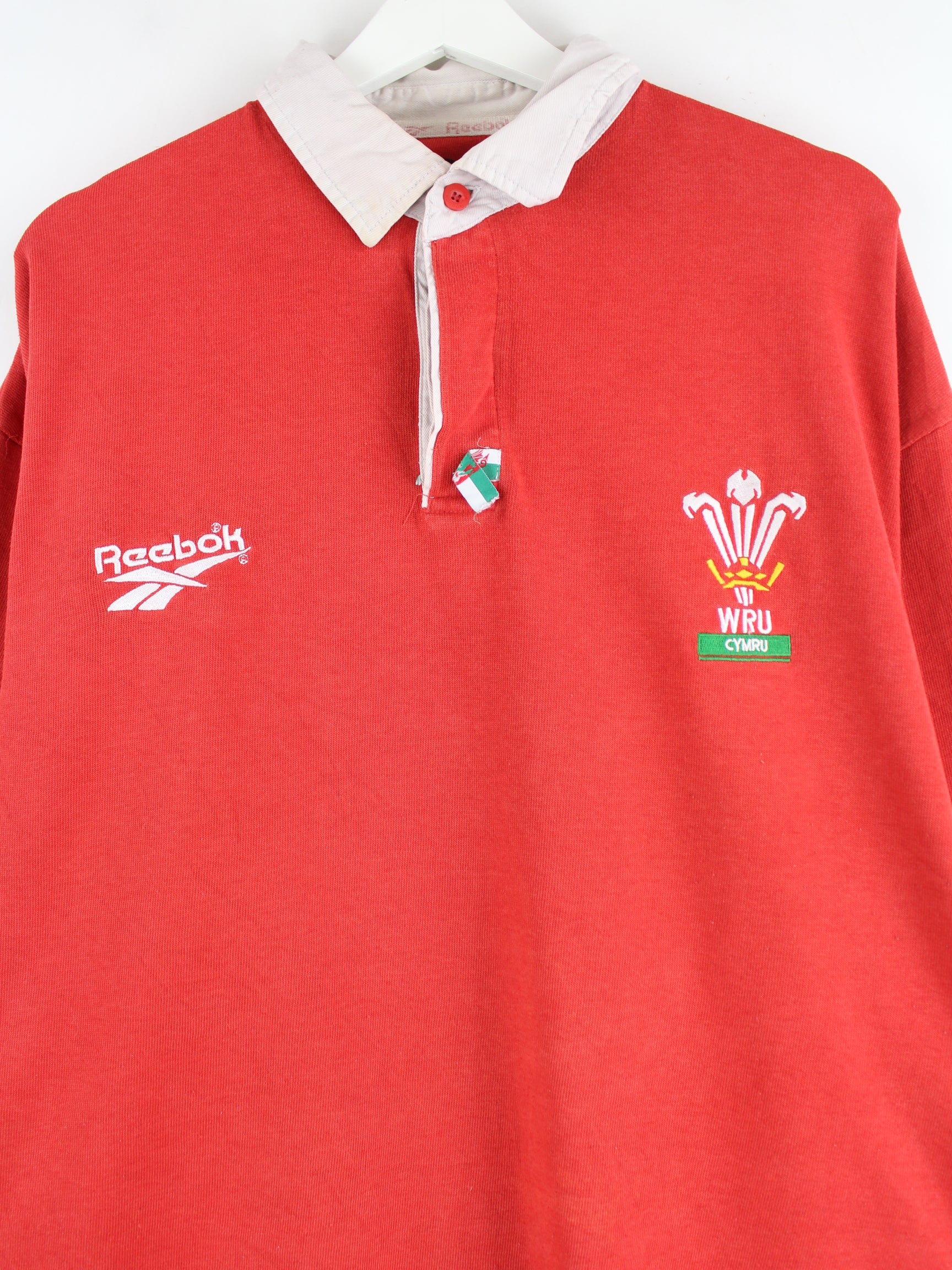 Reebok 90s Vintage Wales Embroidered Rugby Long Sleeve Polo Red 3XL