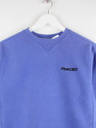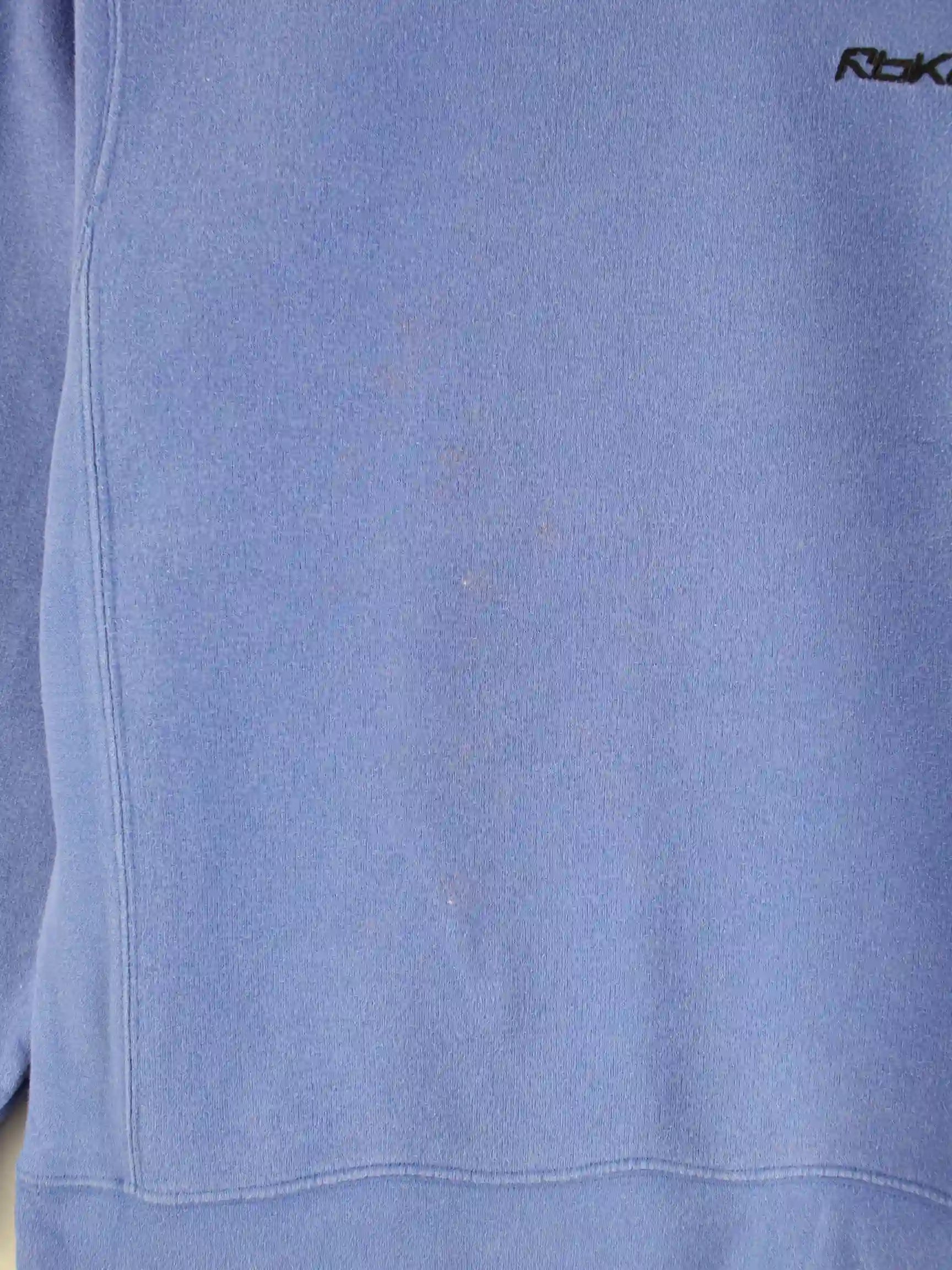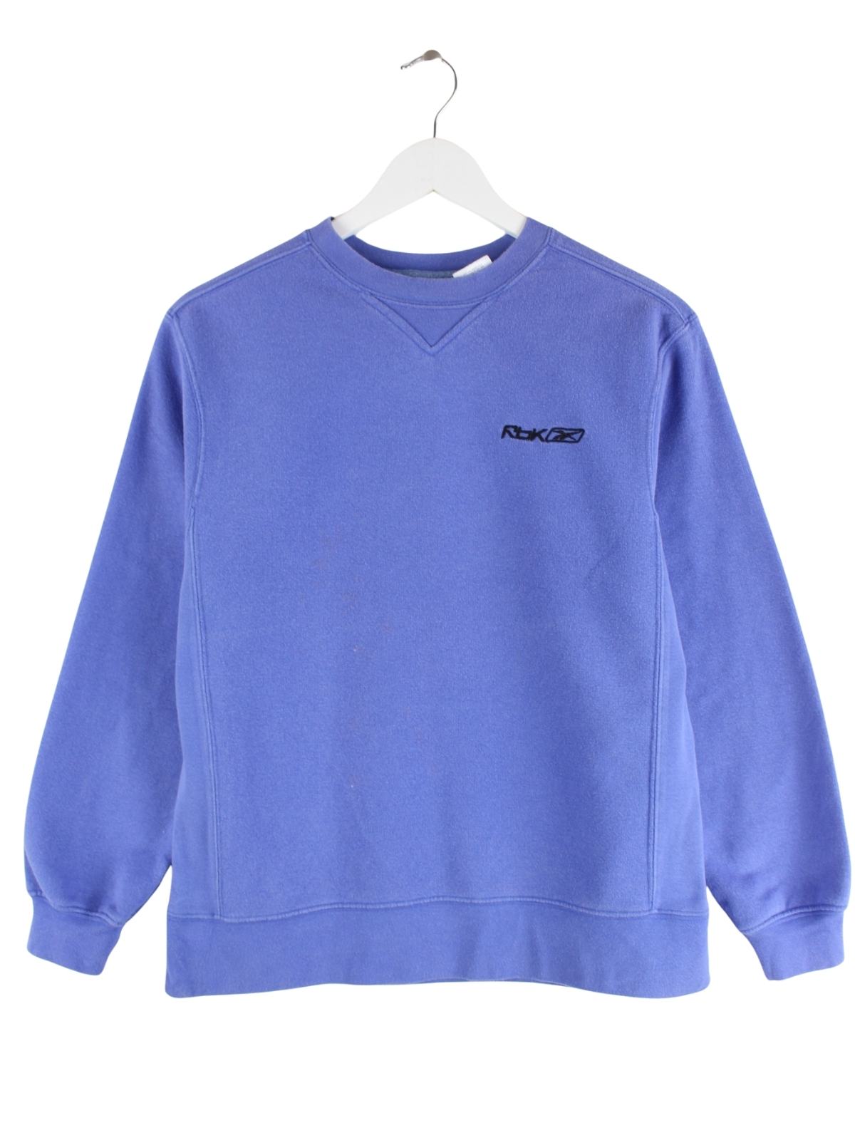 Blauer Sweater der Brand Reebok in Größe M. Er ist aus einer Baumwollmischung gemacht. Den Zustand würden wir als 'In Ordnung' bezeichnen (vergl. Bilder).