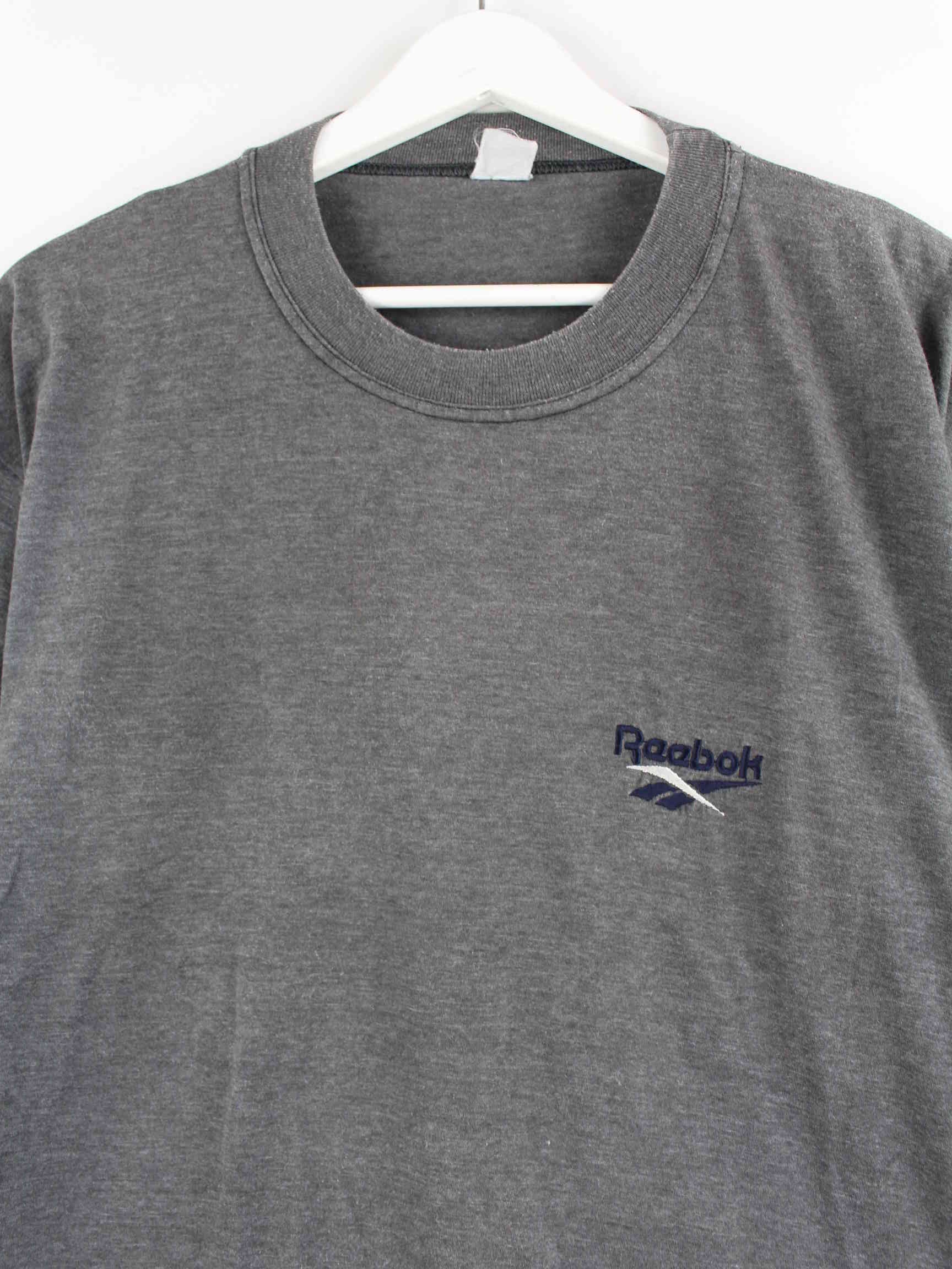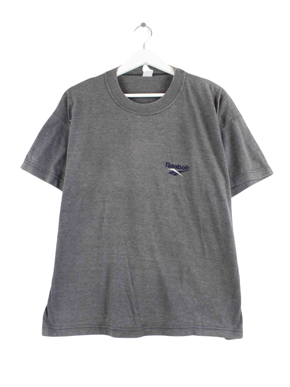 Gray T-shirt with embroidered Reebok logo from the early 2000s in size M. It is made of cotton and is in good condition.