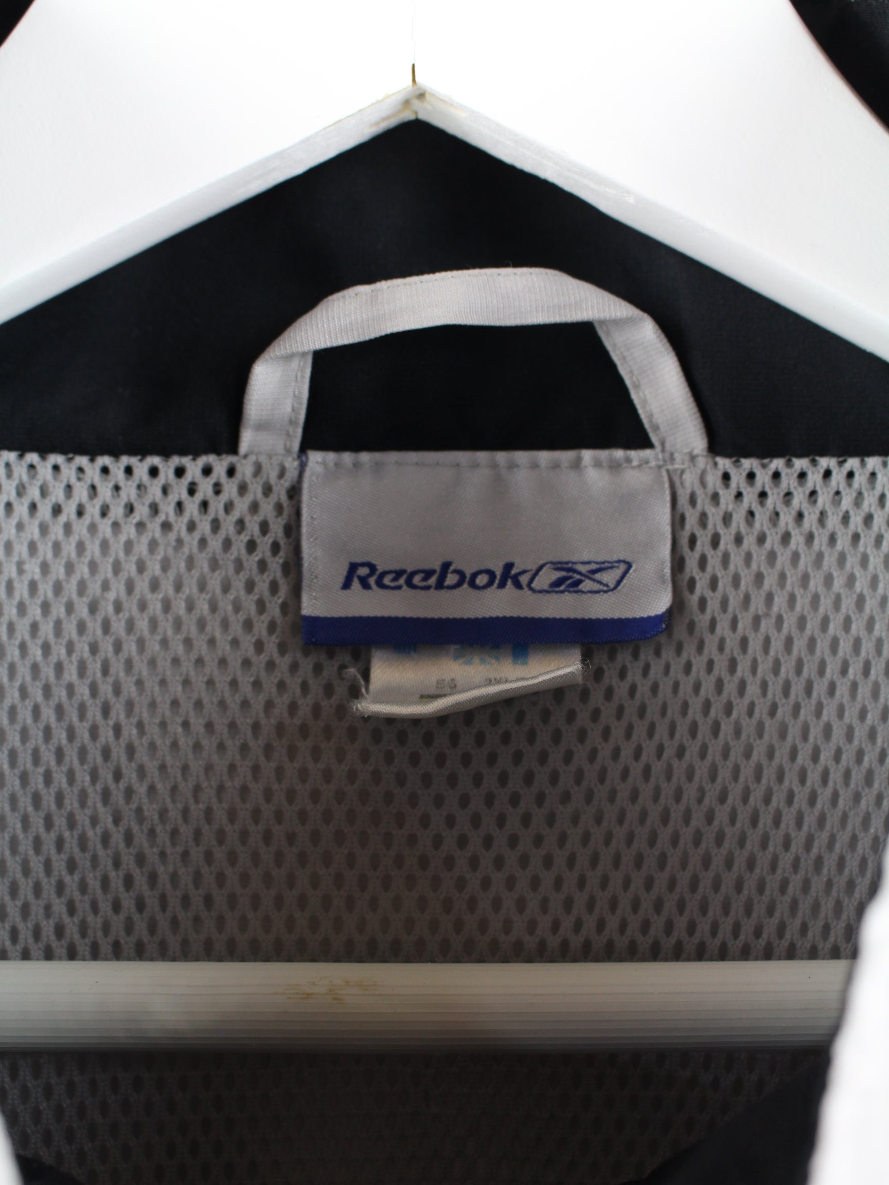 Gray training jacket from the Reebok label from the early 2000s in size XXL. It is made from synthetic. We would describe the condition as 'OK' (see pictures).