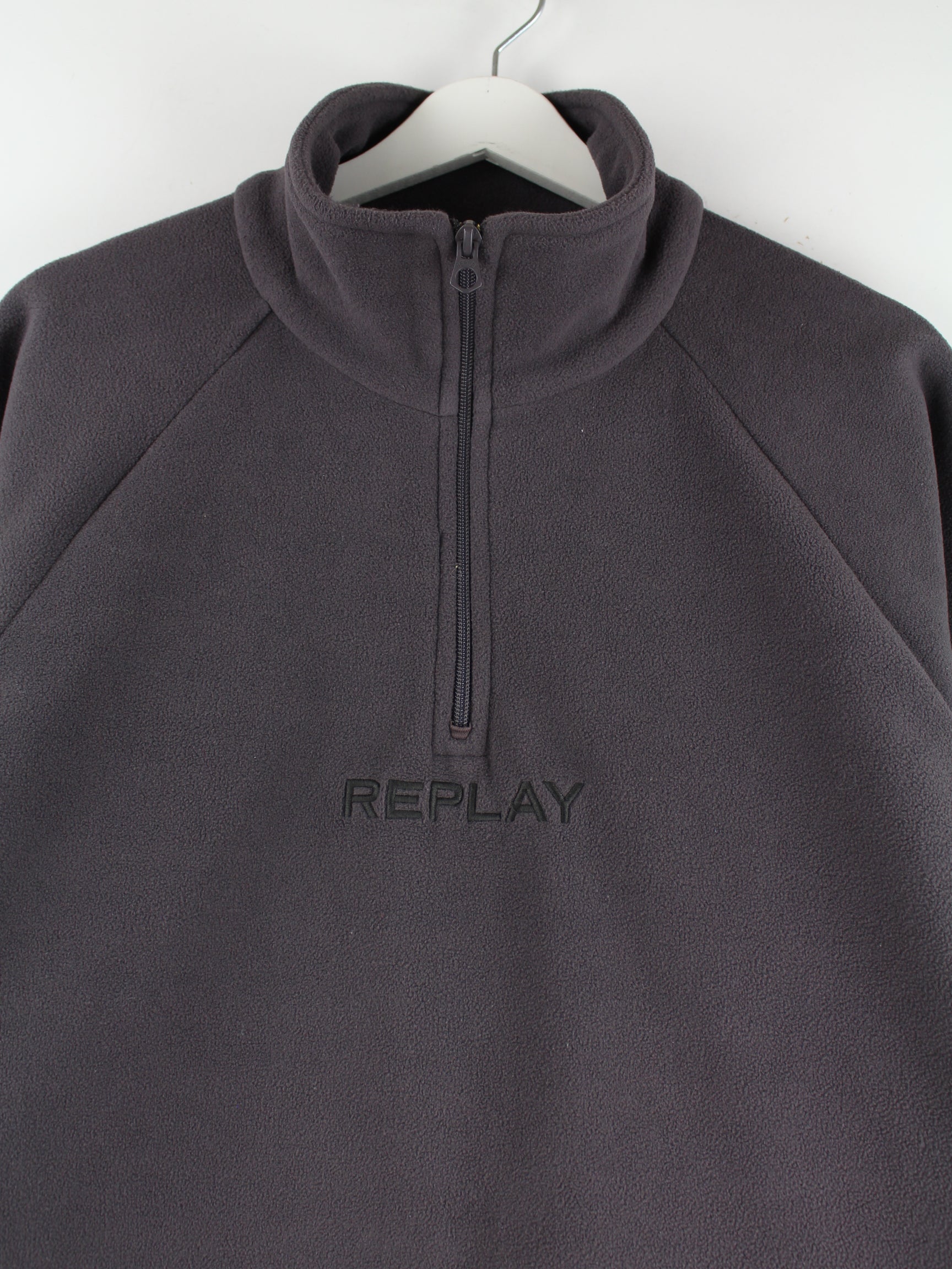 Grauer Sweater mit kurzem Reißverschluß der Marke Replay in Größe M. Er ist aus gemütlichem Fleece und in gutem Zustand zu bekommen.