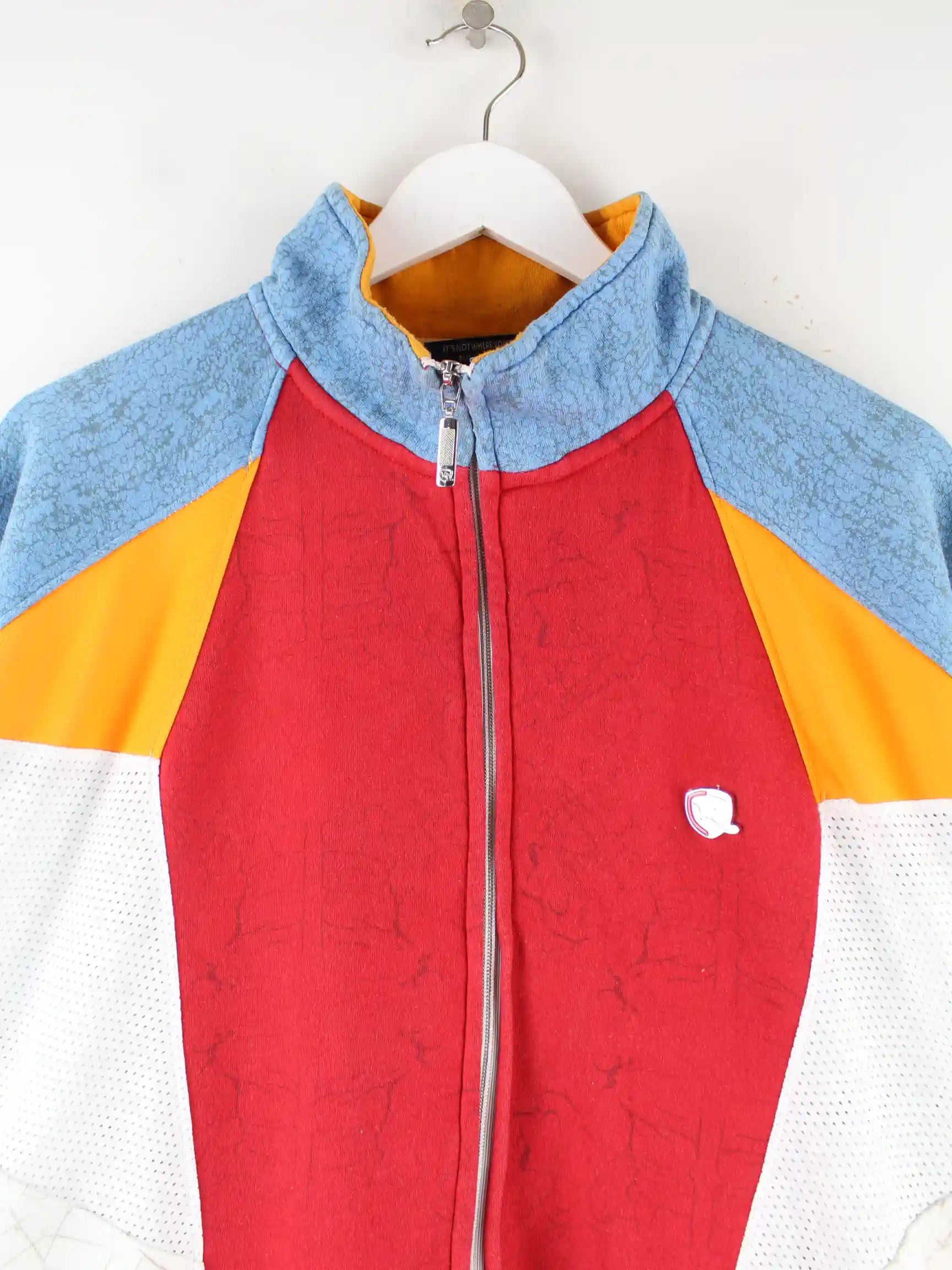 Mehrfarbige Sweatjacke der Brand Roca Wear aus Anfang der 2000'er in Größe 4XL. Sie ist aus einer Baumwollmischung hergestellt. Den Zustand würden wir als 'In Ordnung' bezeichnen (vergl. Bilder).