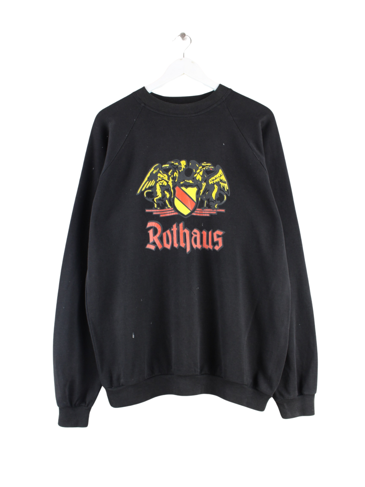 Black sweater from the Rothaus Collection brand in size L. It is made from a cotton blend. We would describe the condition as 'fine' (see pictures). With a great print.