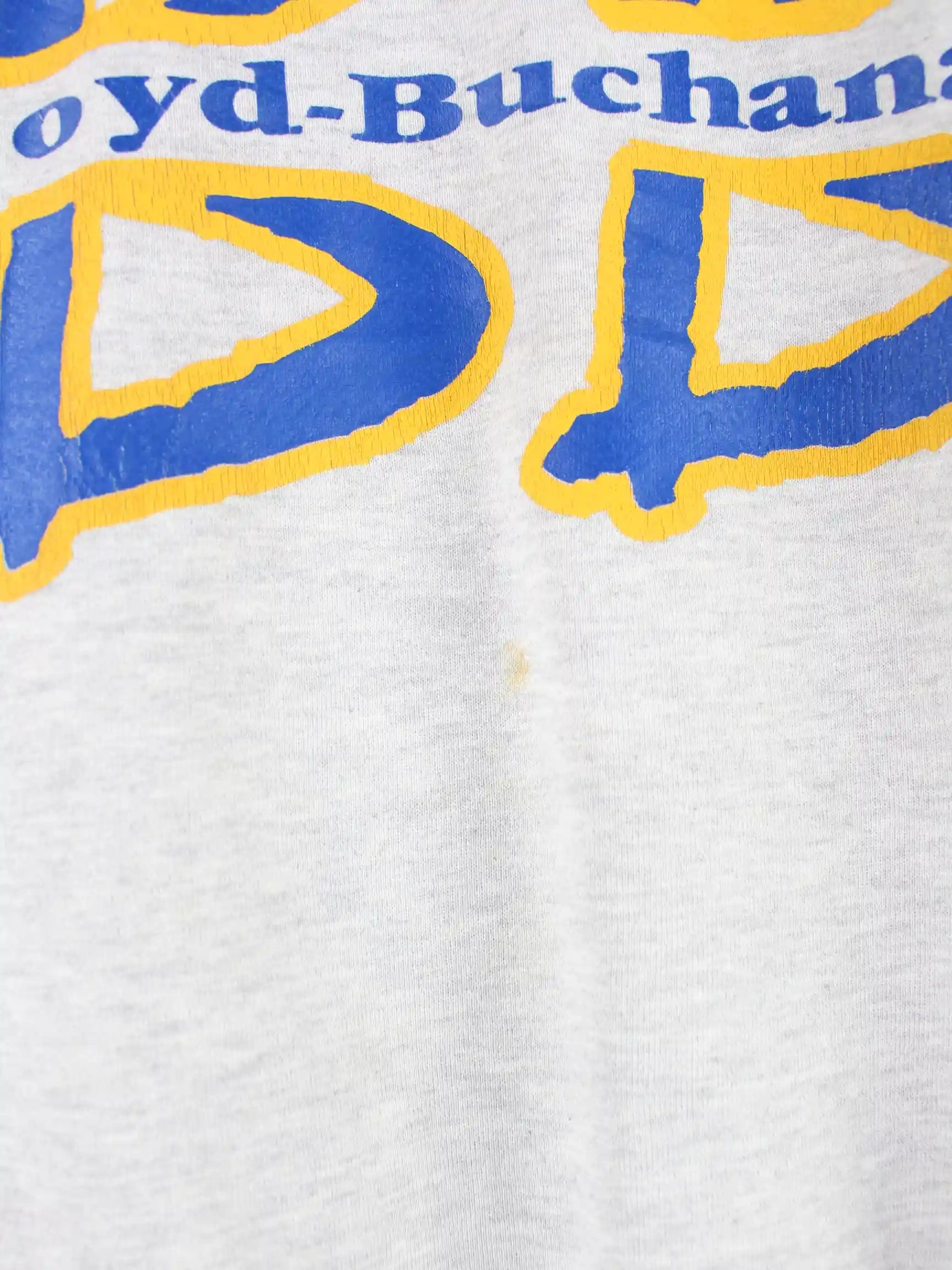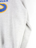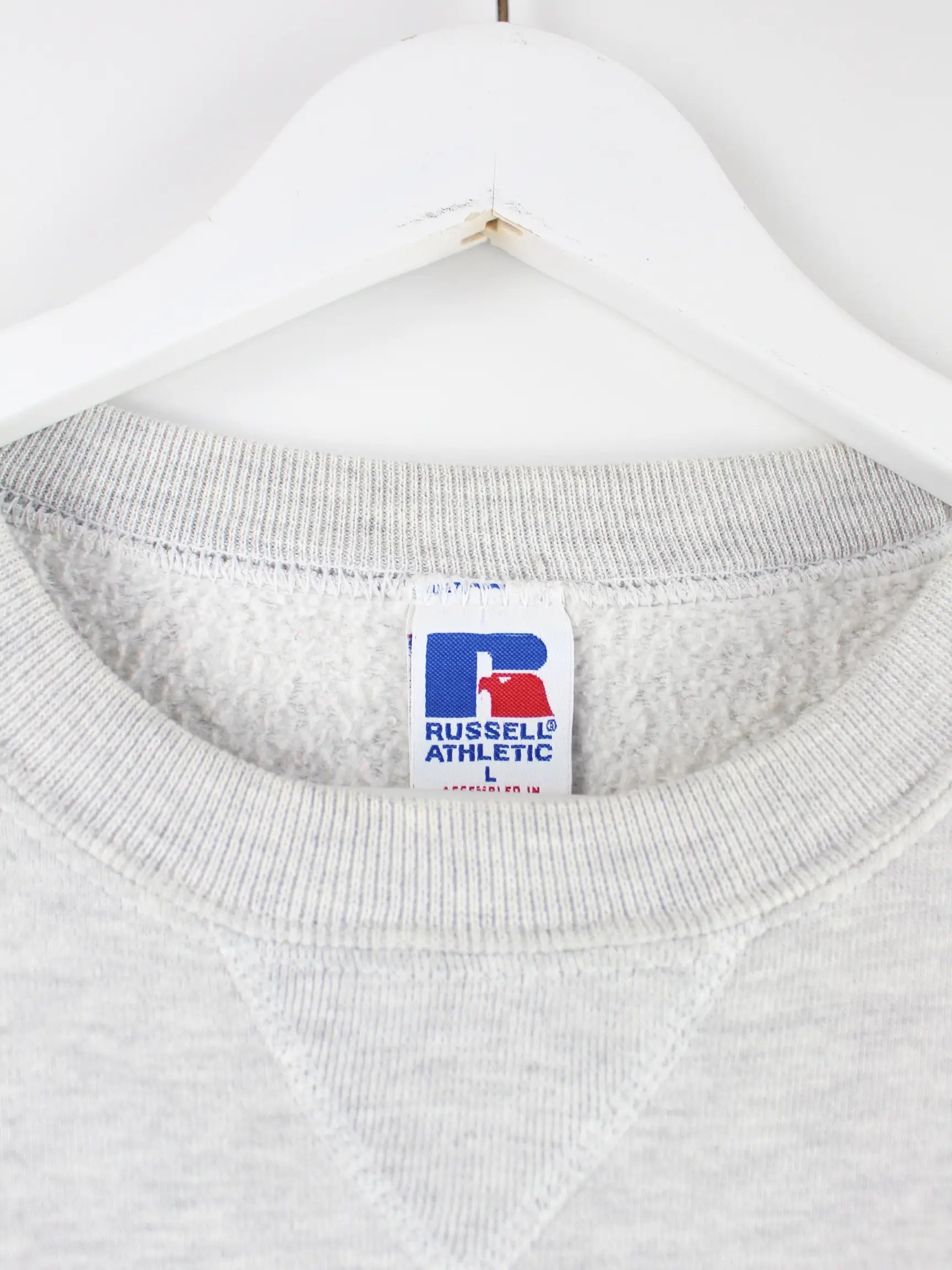 Grauer Sweater aus dem Hause Russell Athletic in Größe L. Er ist aus einer Baumwollmischung . Den Zustand würden wir als 'In Ordnung' bezeichnen (vergl. Bilder).Mit tollem 00s Print.