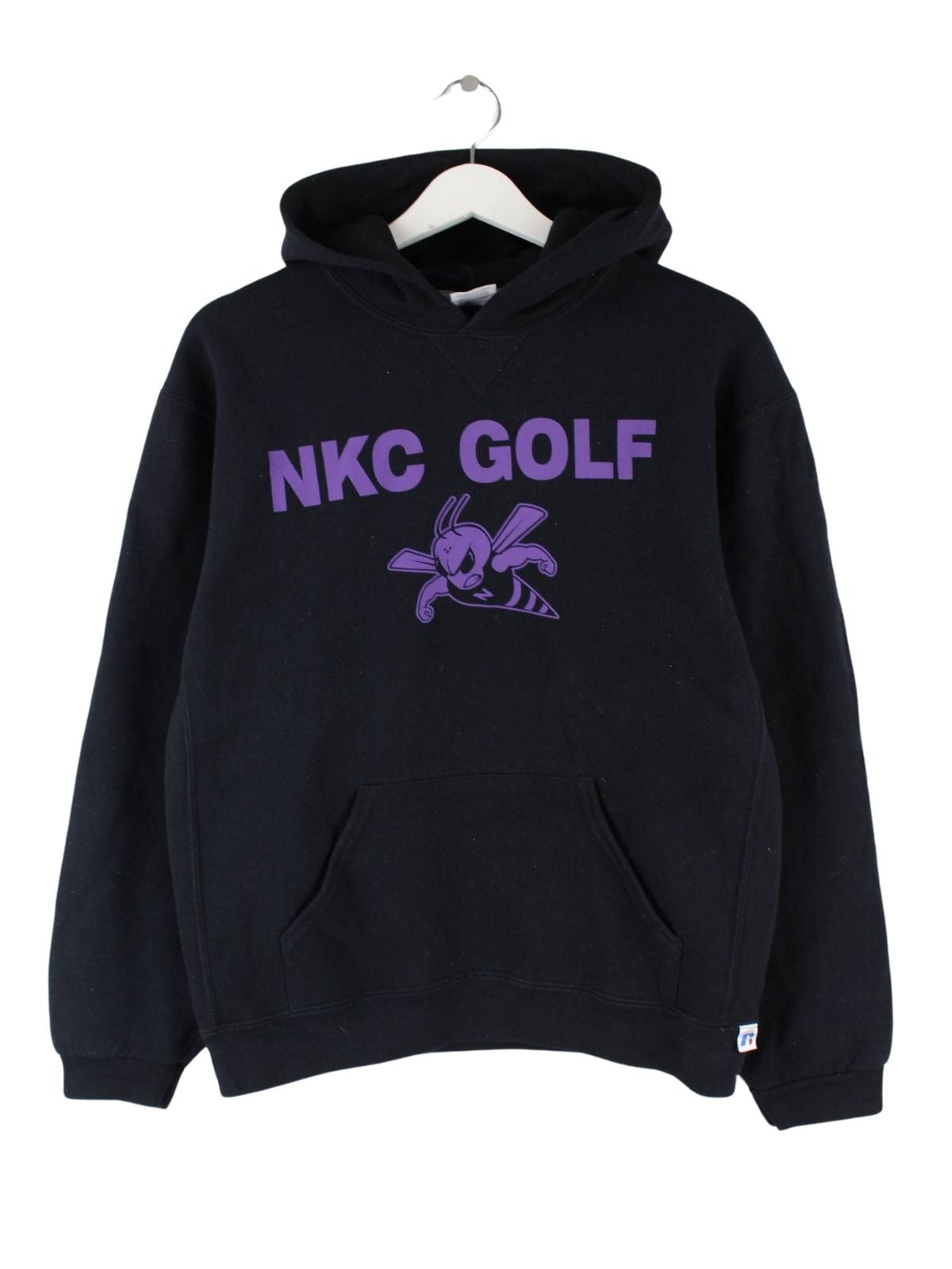 Hoodie des Labels Russell Athletic in Größe S. Er ist aus einer Baumwollmischung gefertigt und in Schwarz lieferbar. Mit schönem Golf Print.