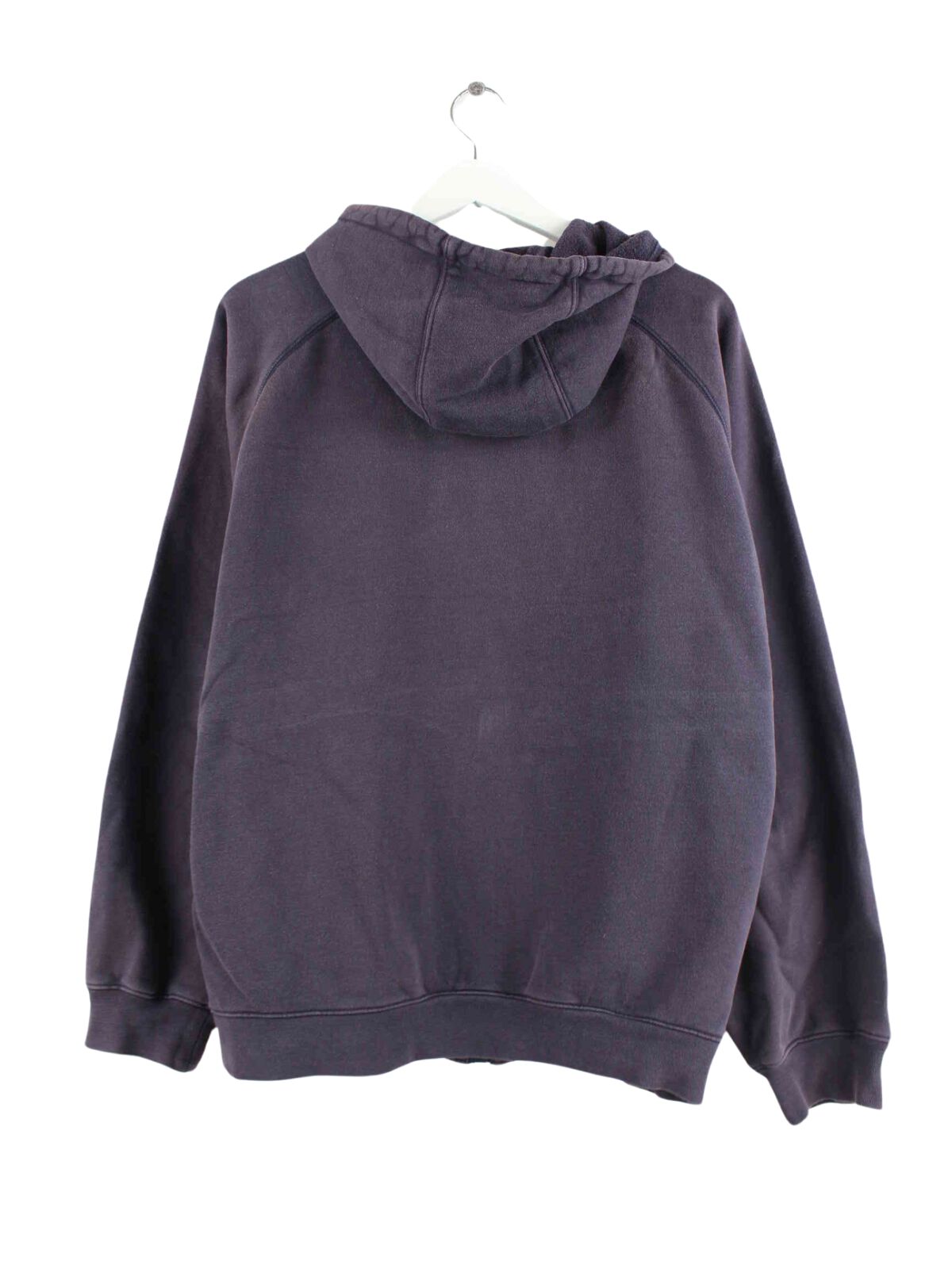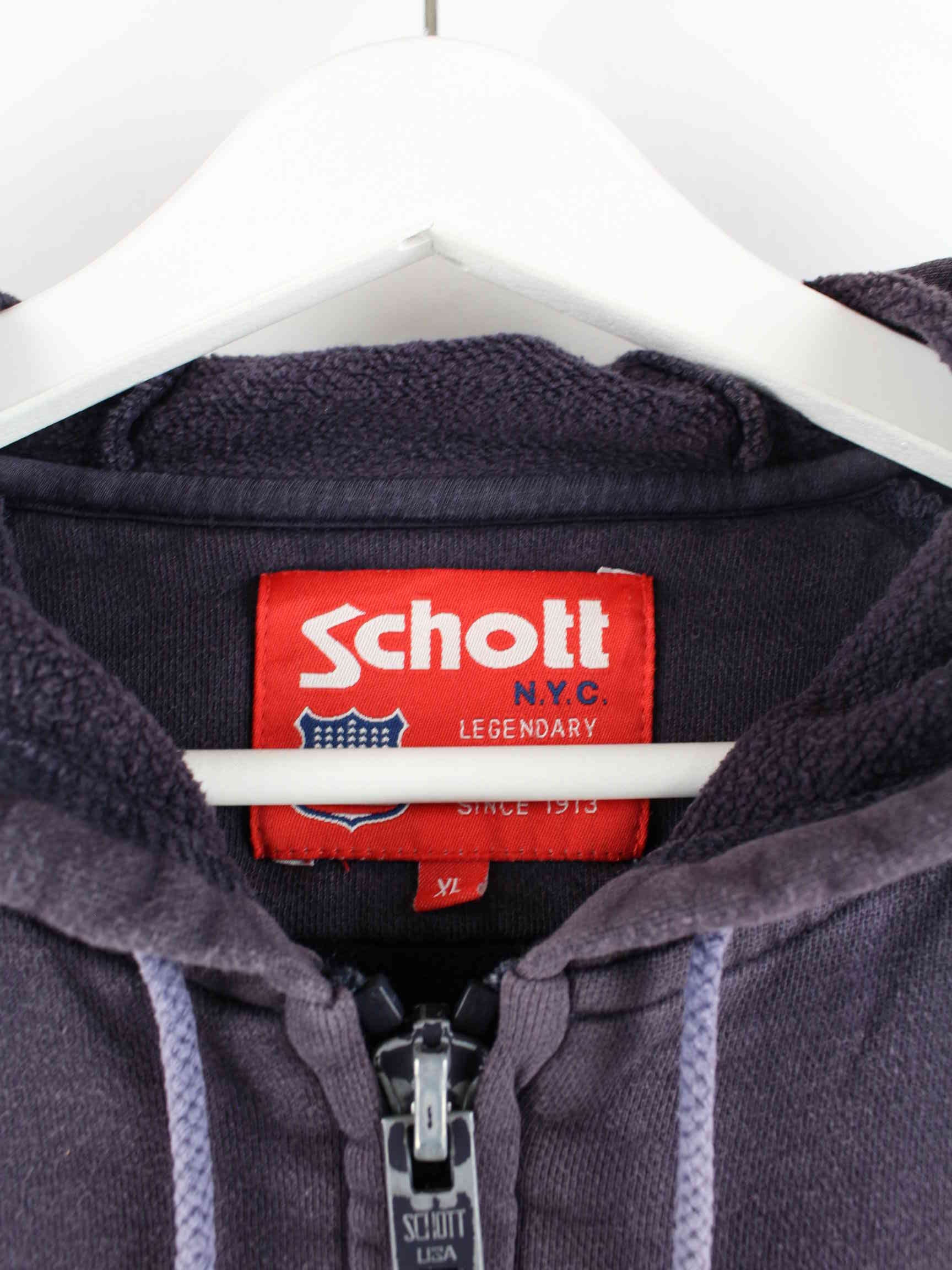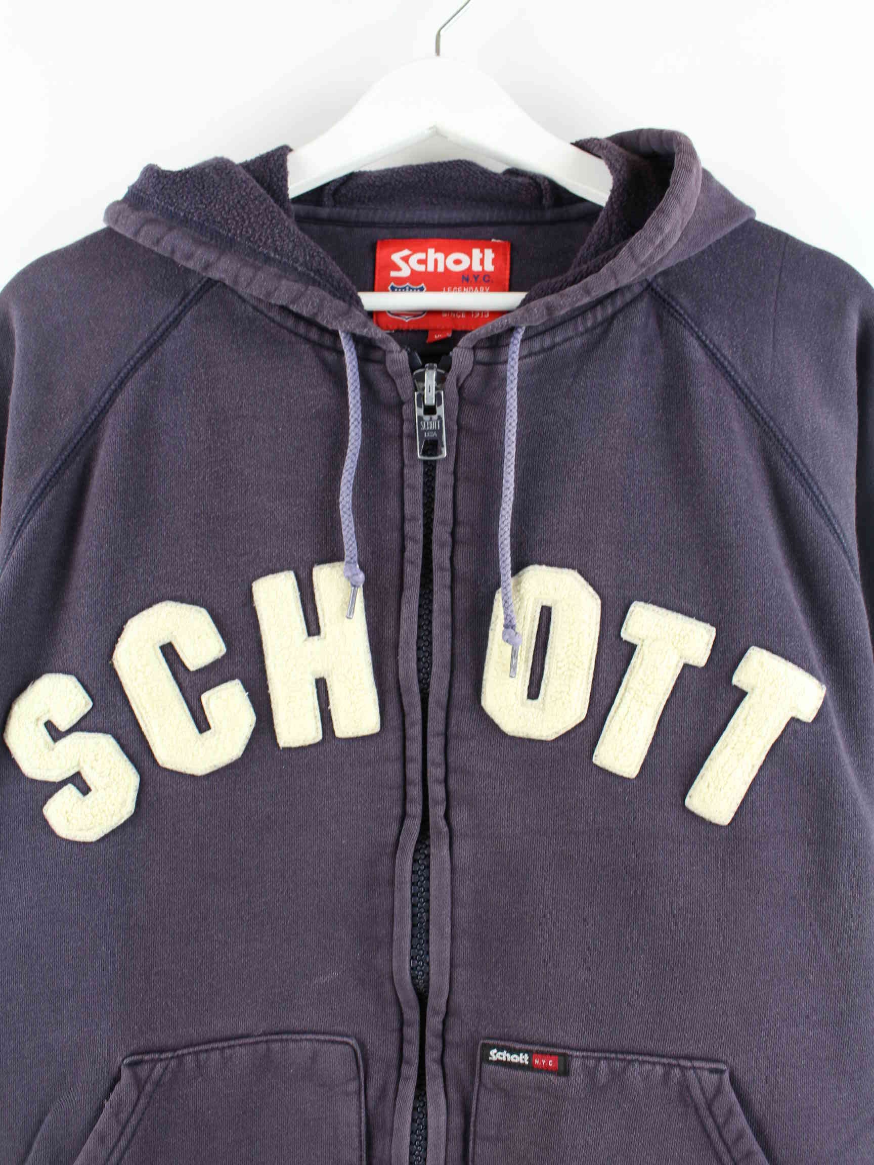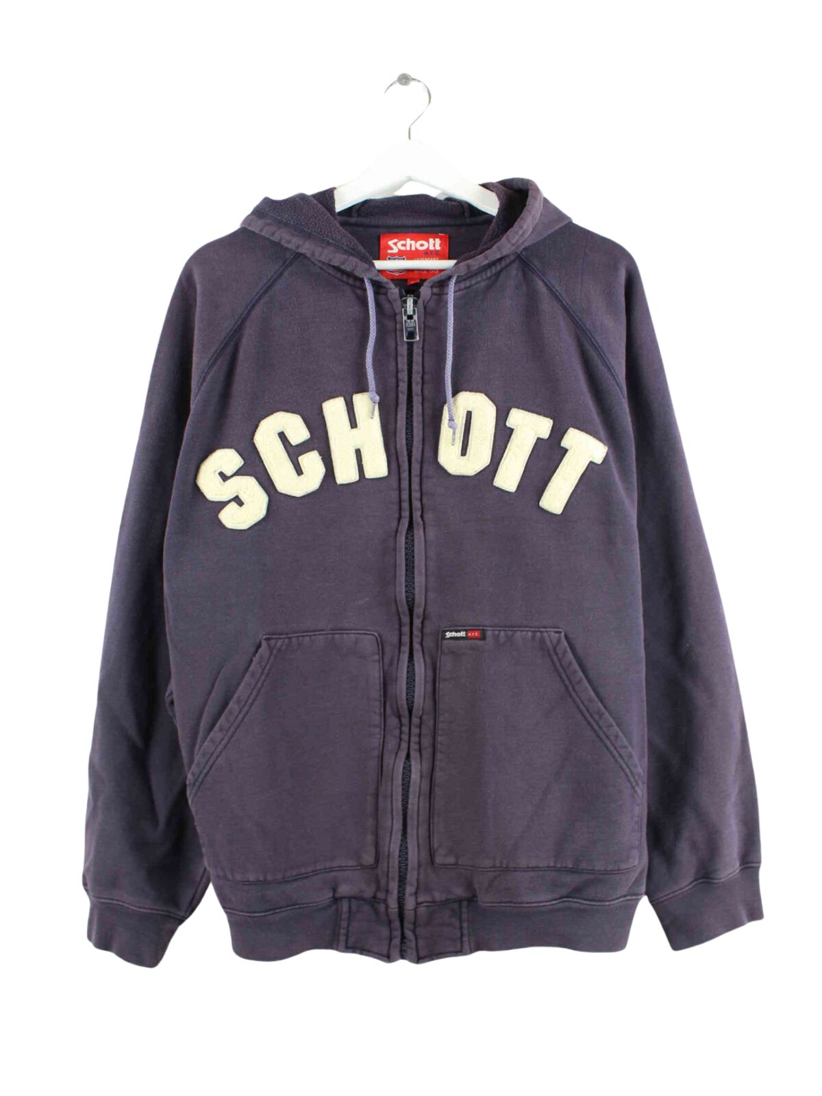 Blue hoodie with embroidered logo and zipper from the Schott brand in size L. It is made of a cotton blend and is available in good condition.