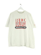 Screen Stars 1996 Vintage Brest Print Single Stitched T-Shirt Grey XL