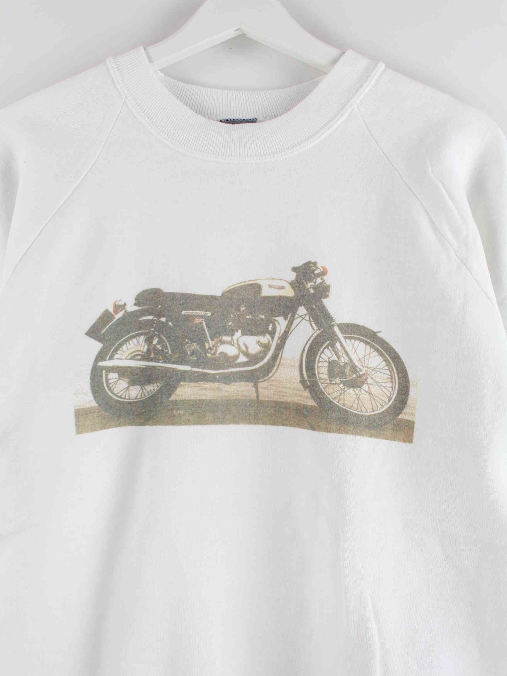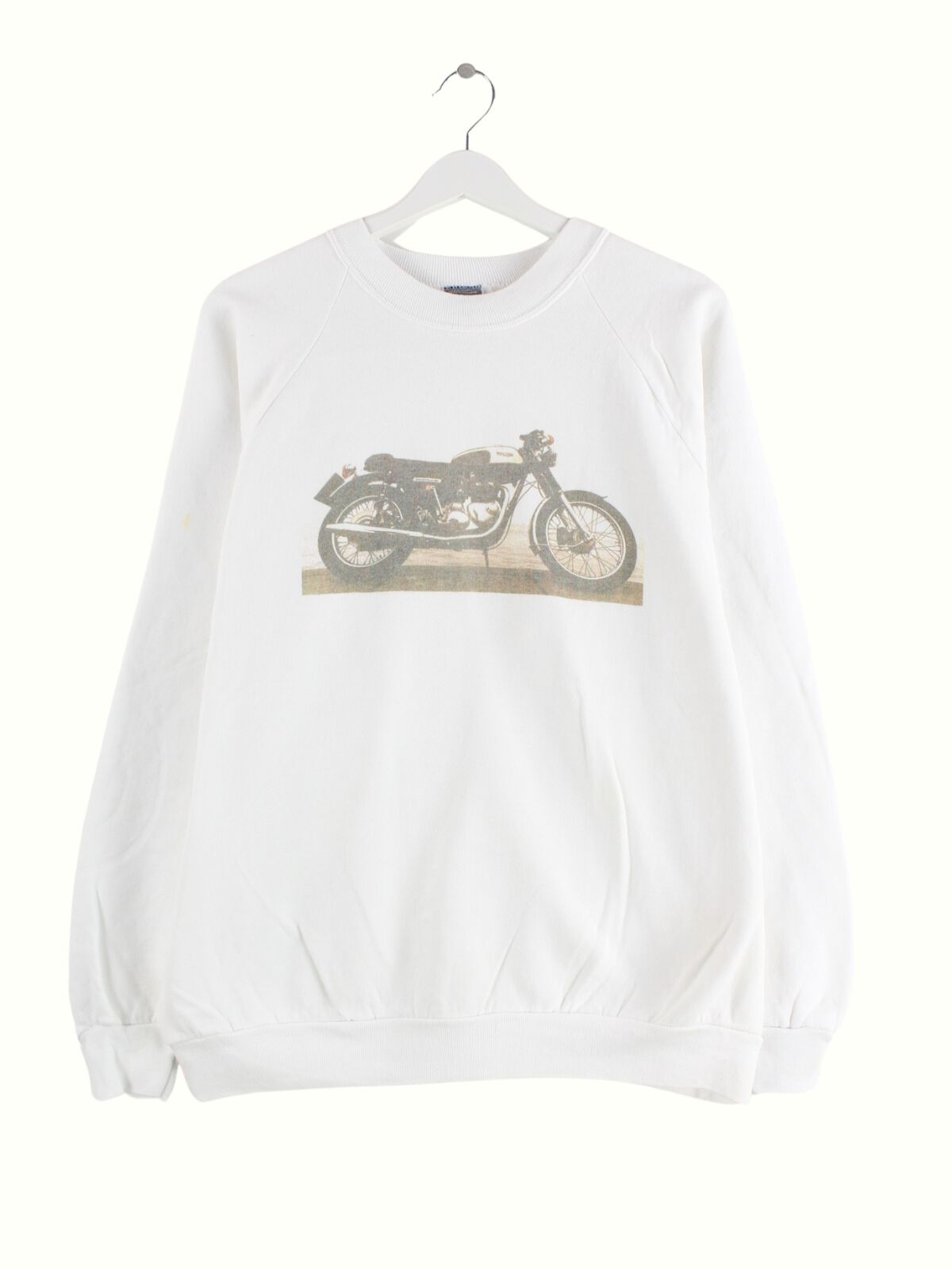 Screen Stars 80s Vintage Motorcycle Print Sweater White M