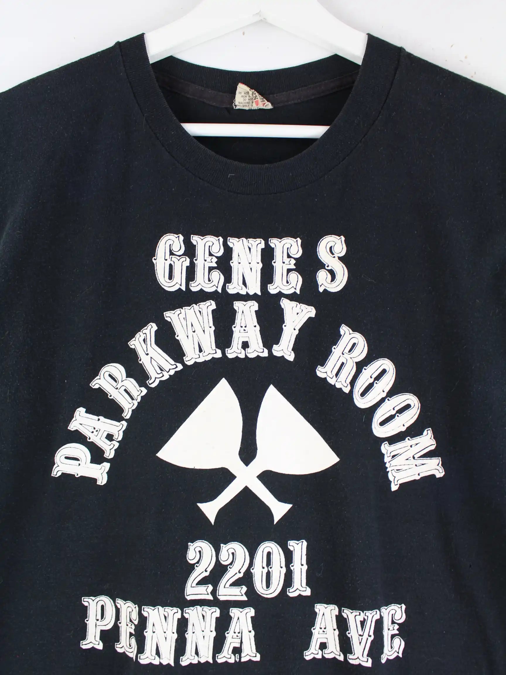 T-Shirt der Brand Screen Stars in Größe XL aus den 80'ern. Es ist aus Baumwolle produziert und in Schwarz vorrätig. Mit tollem Stitch Print.