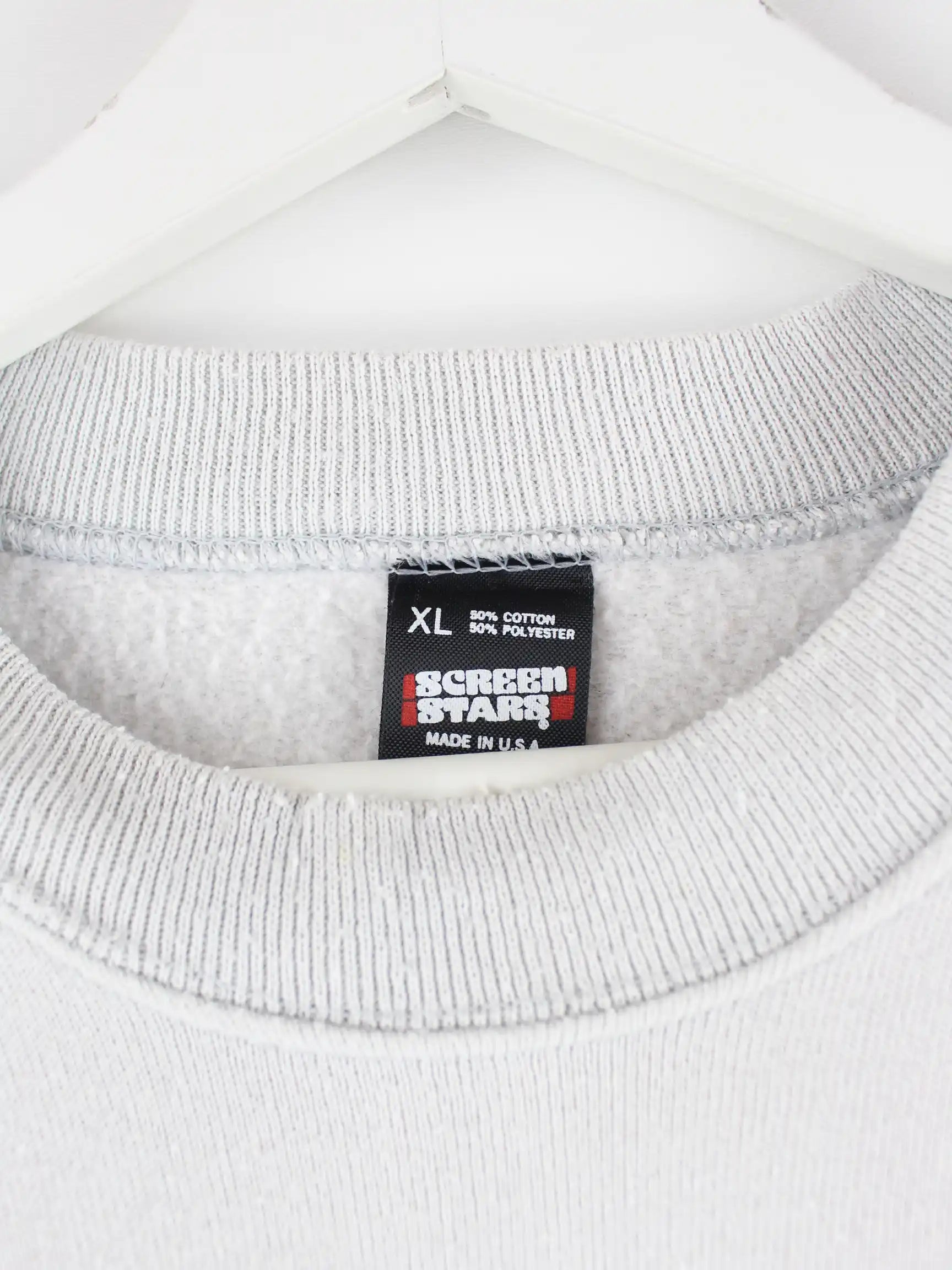 Grauer Sweater der Brand Screen Stars aus den 90'ern in Größe XL. Er ist aus einer Baumwollmischung hergestellt. Den Zustand würden wir als 'In Ordnung' bezeichnen (vergl. Bilder).